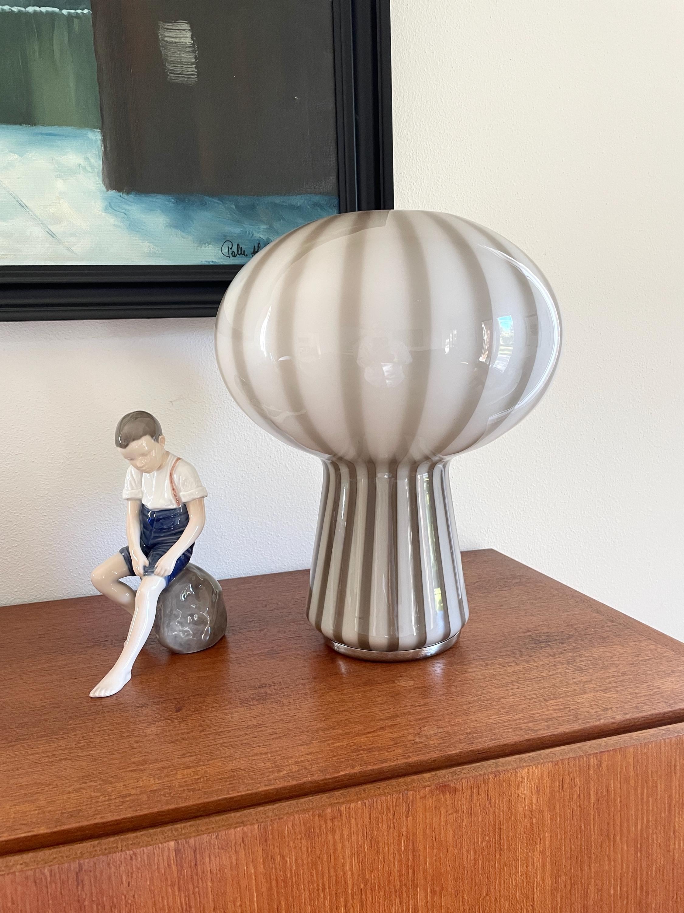 Table lamp in Murano glass, mouth-blown using the ancient Murano technique of straight "rigadin", designed by Ettore Cacciavillani.