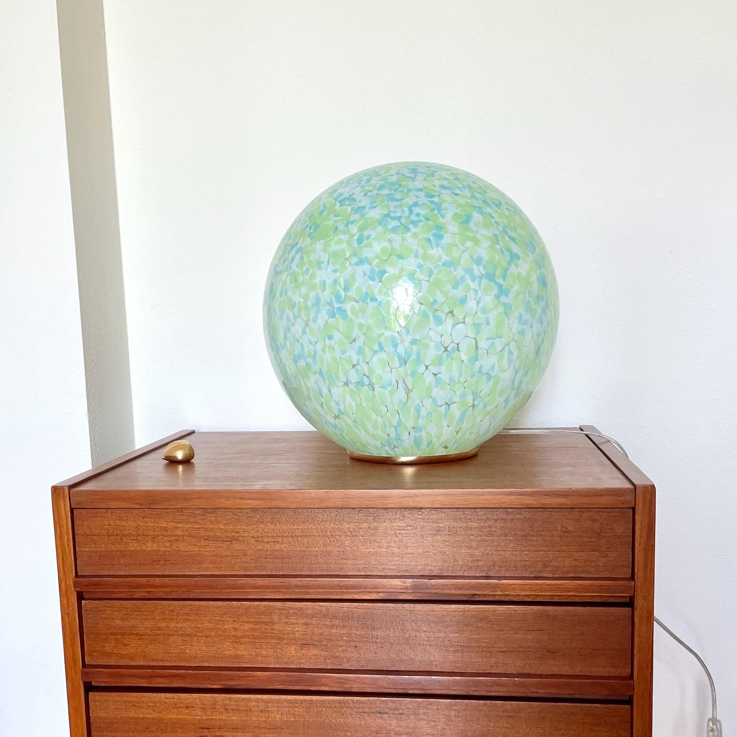 The lamp is made in the shape of a sphere, only in diameter 35 cm, the frame is in metal with a satin gold finish.