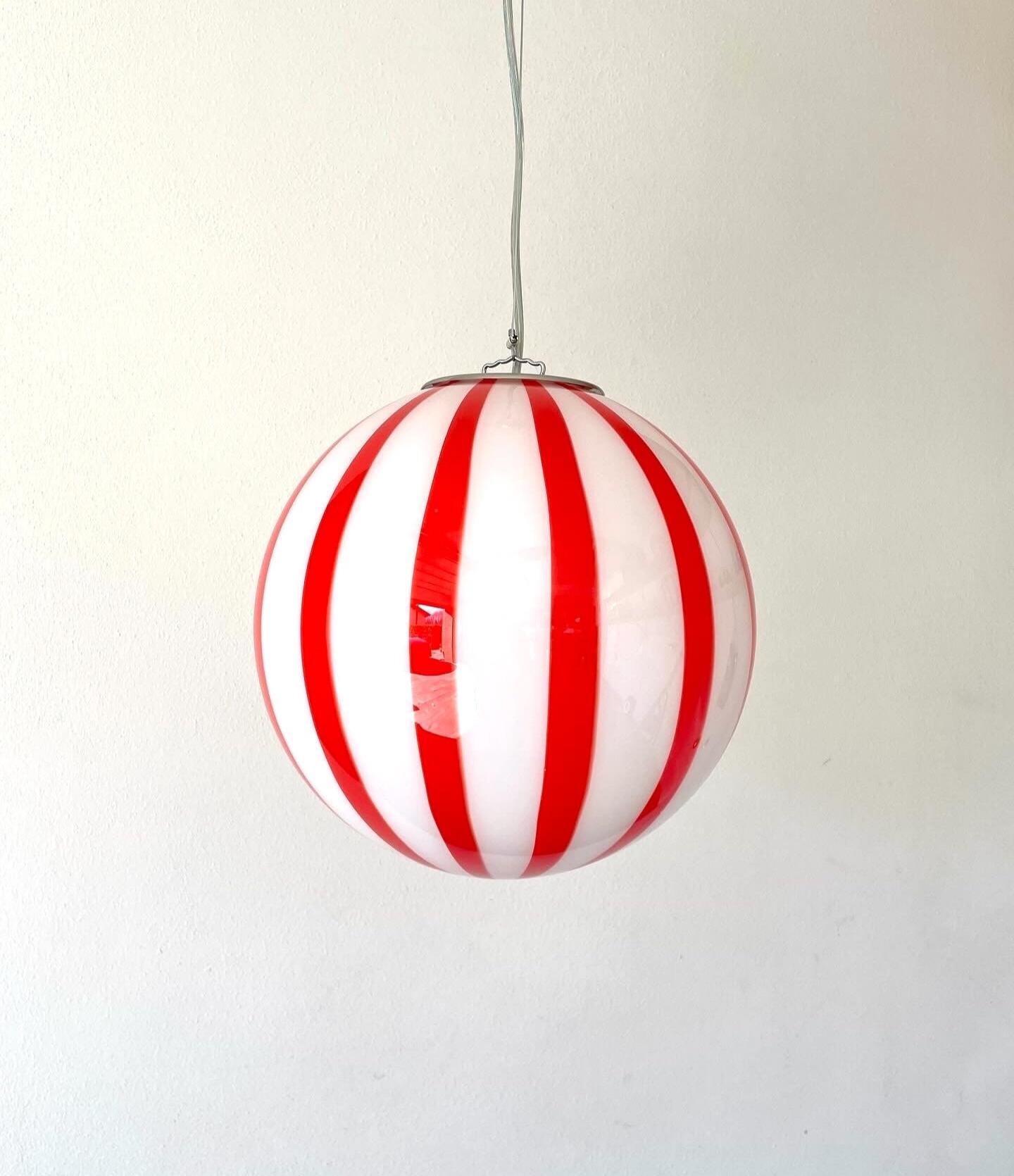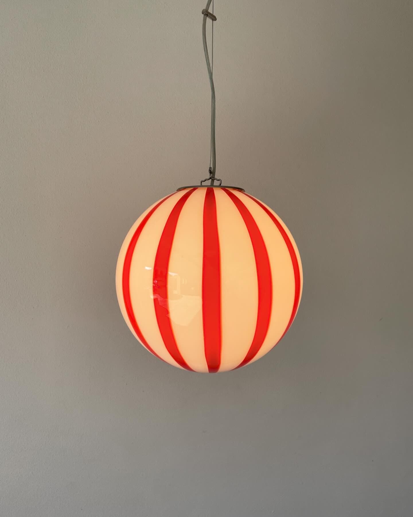 Lamps handmade by Murano glass masters in the ancient technique of working with colored glass canes. This in beautiful RED color, sphere shape.
