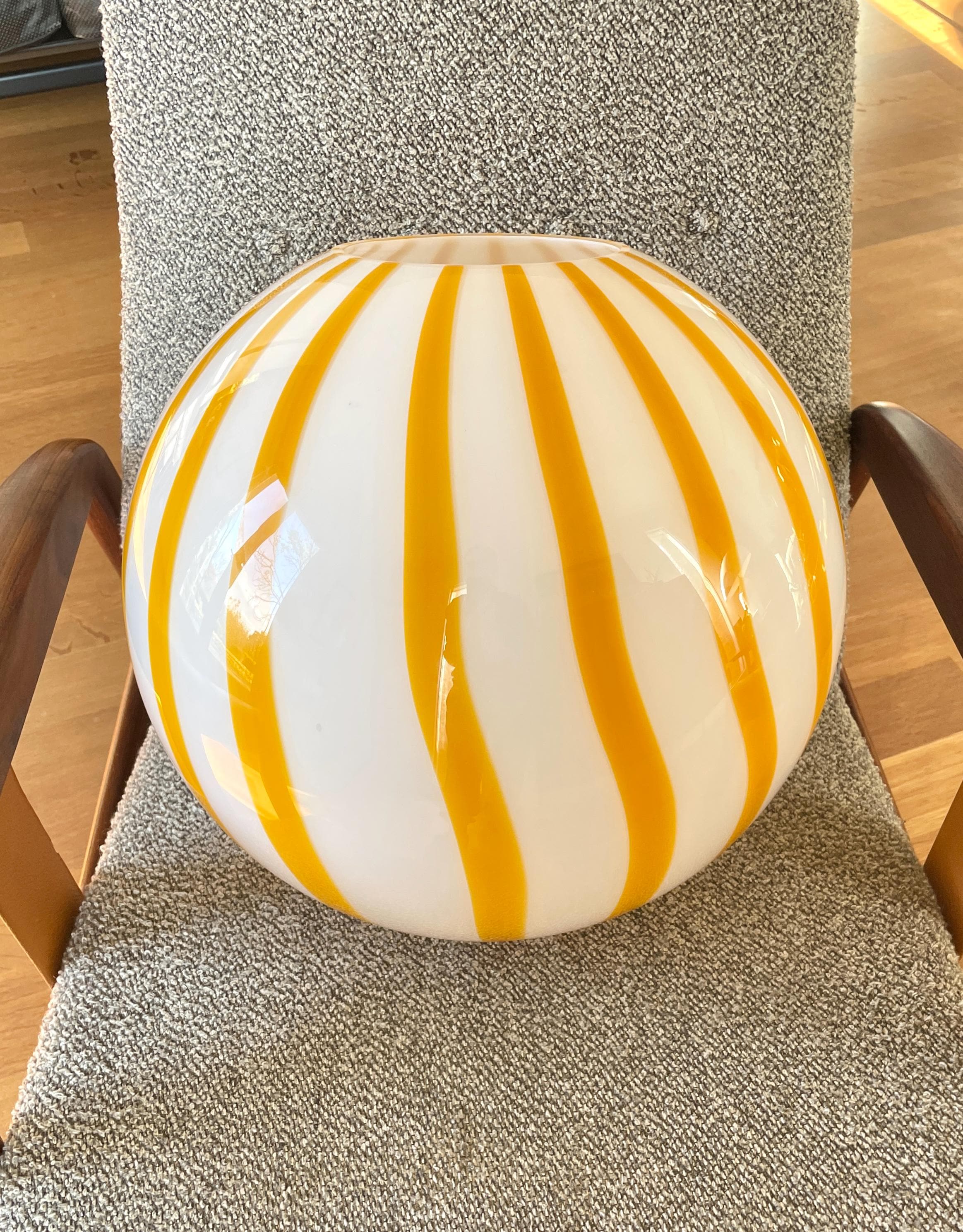 Lamp in large sphere shape diameter 40 cm, the frame has a golden finish.
