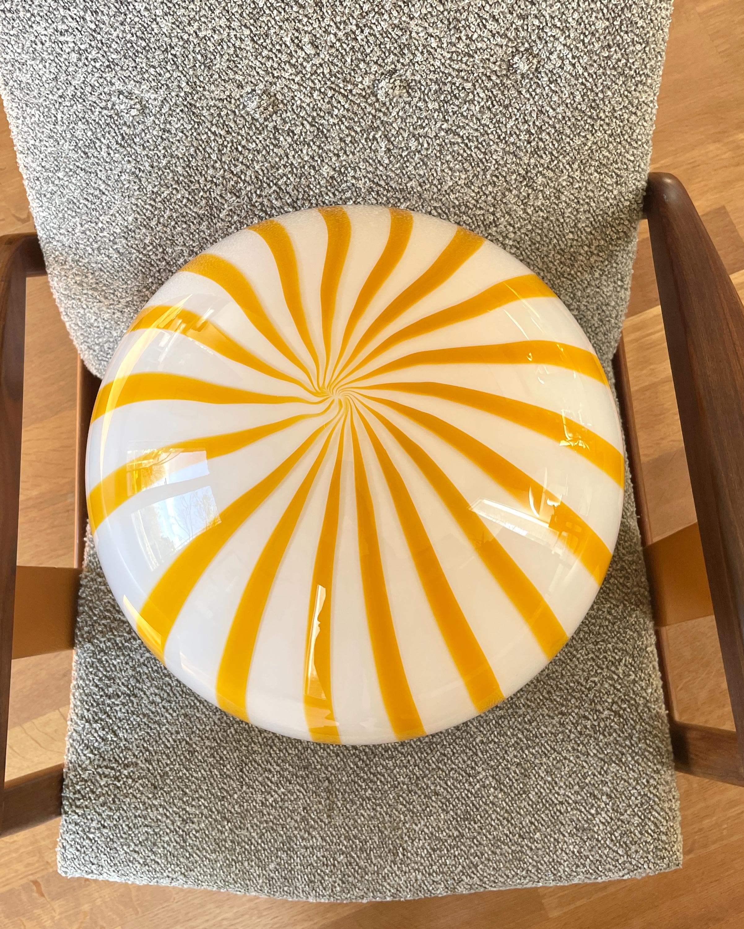 Ceiling lamps handmade by Murano glass masters in the ancient technique of working with colored glass canes.