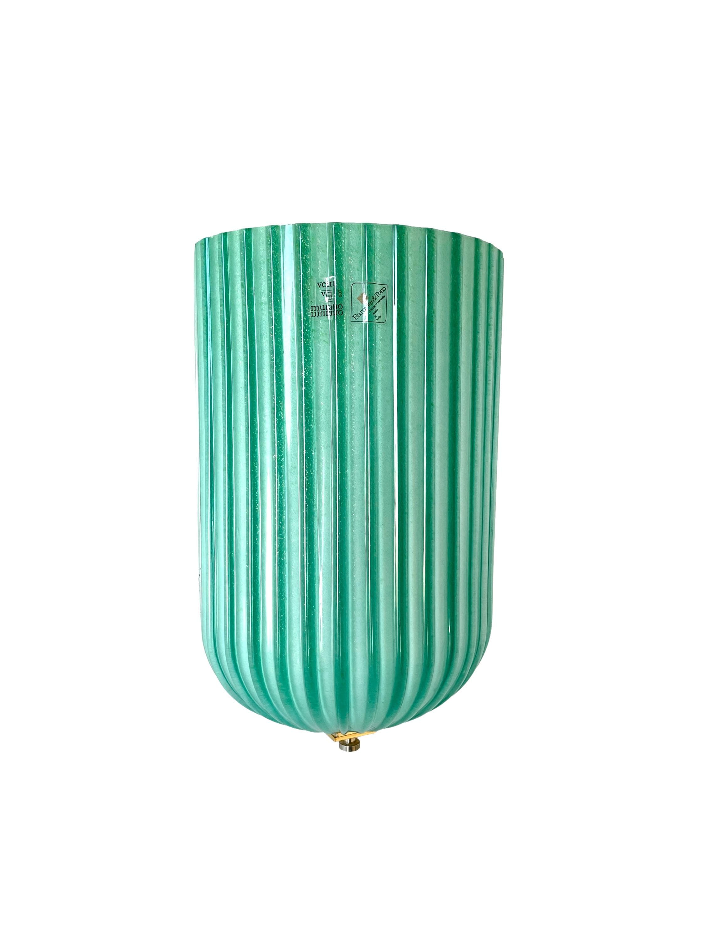 Gorgeous and precious Murano wall lamp by BAROVIER & TOSO, really rare, vintage 80s, with labels, green jacketed costoluto glass, the frame is golden finish.