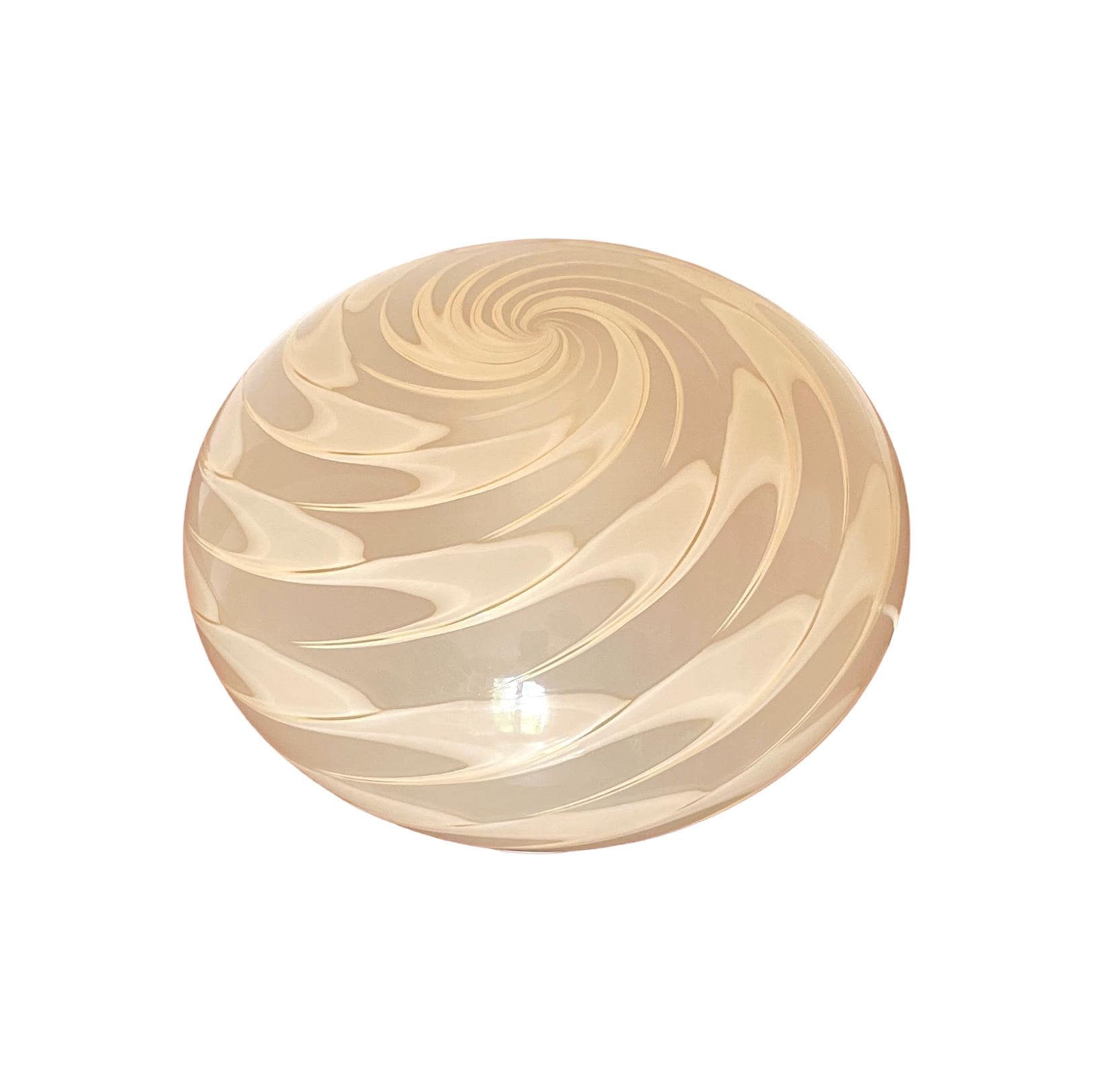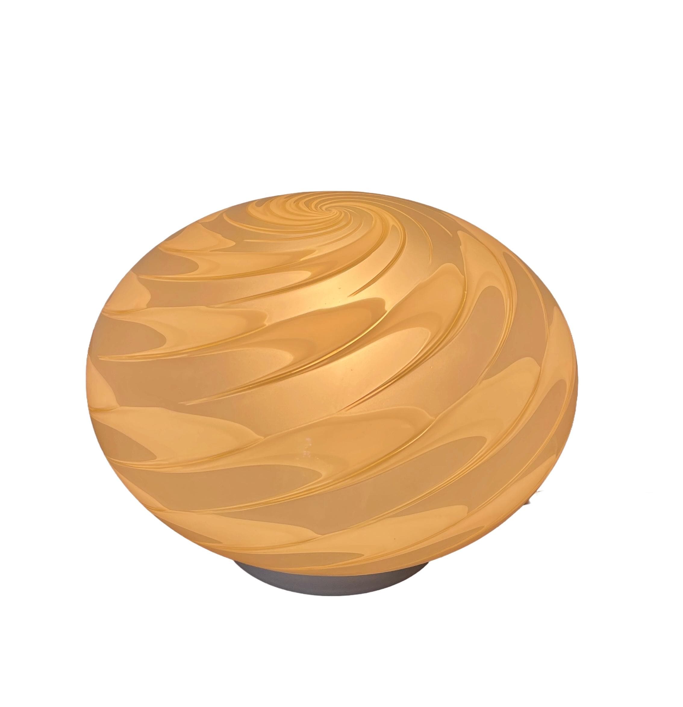 A charming lamp handcrafted by Murano master glassmakers using the ancient PIUMA glassmaking technique, a beautiful amber-colored glass with a spiral motif. The frame has a white finish.