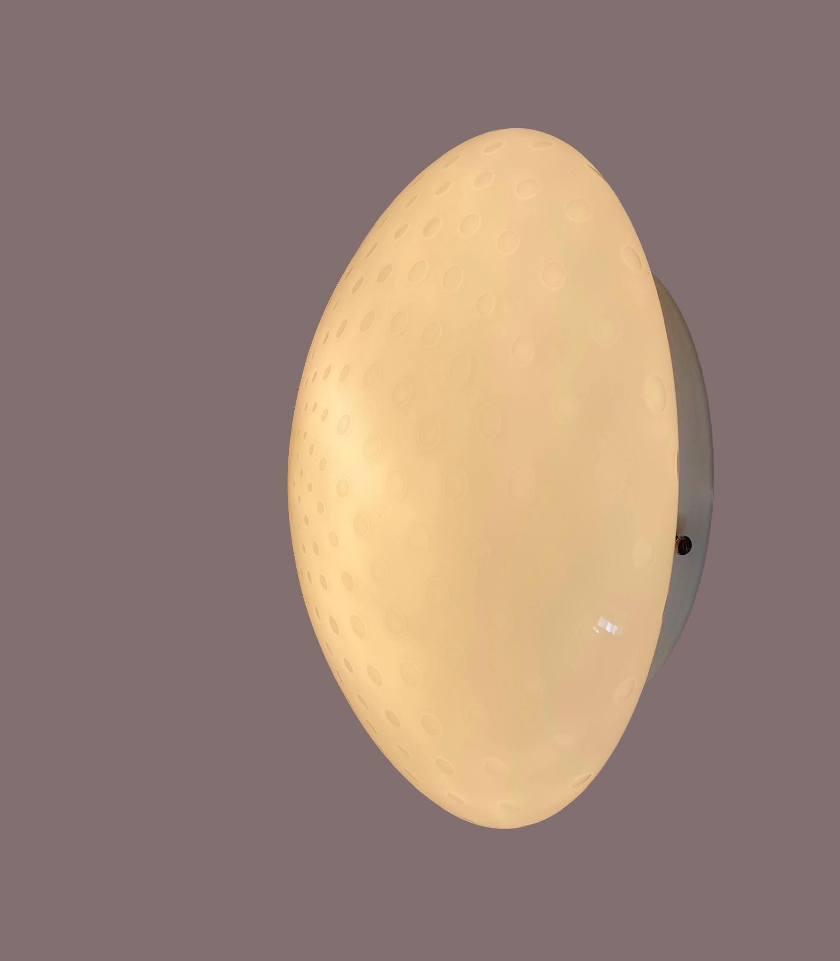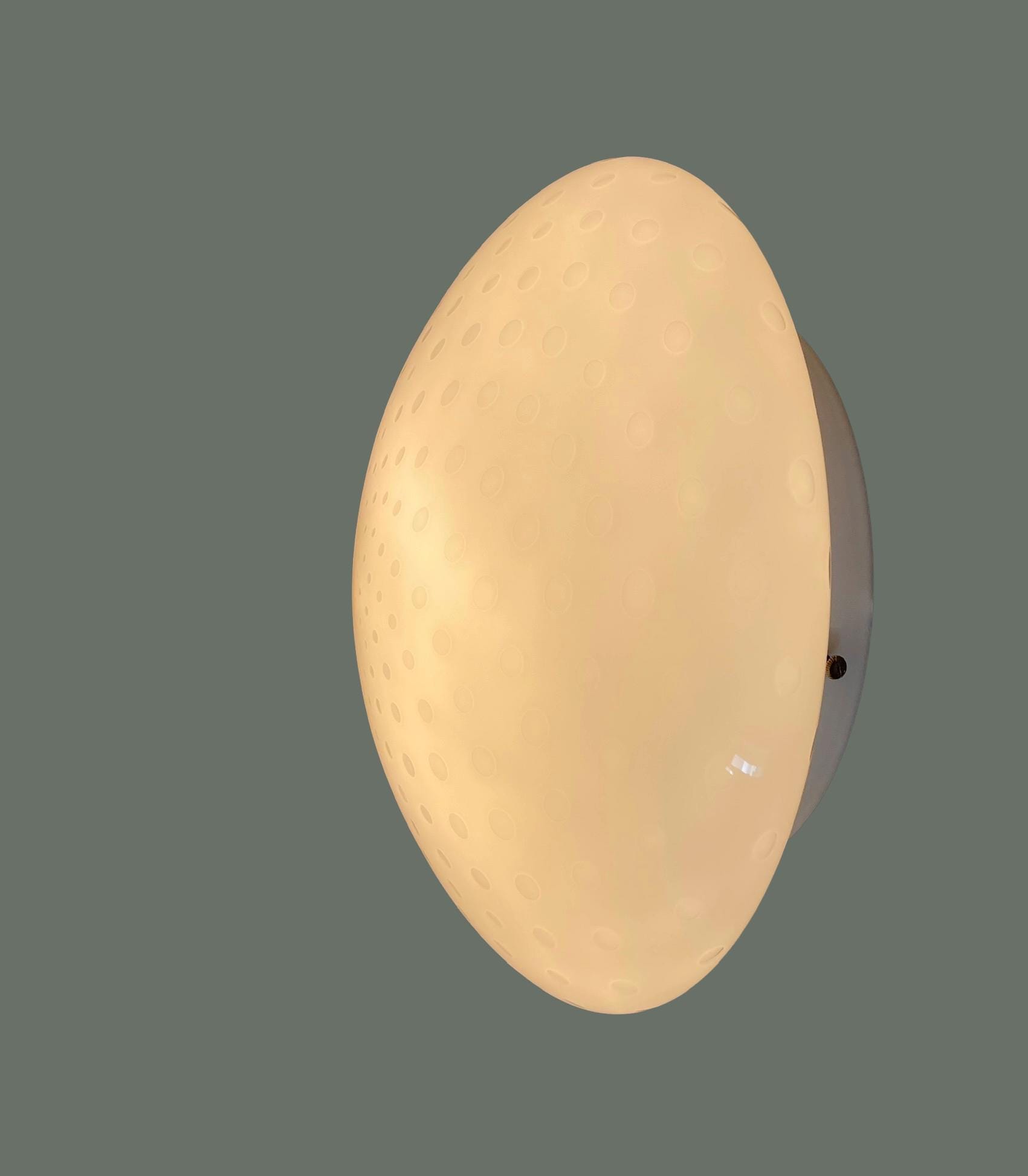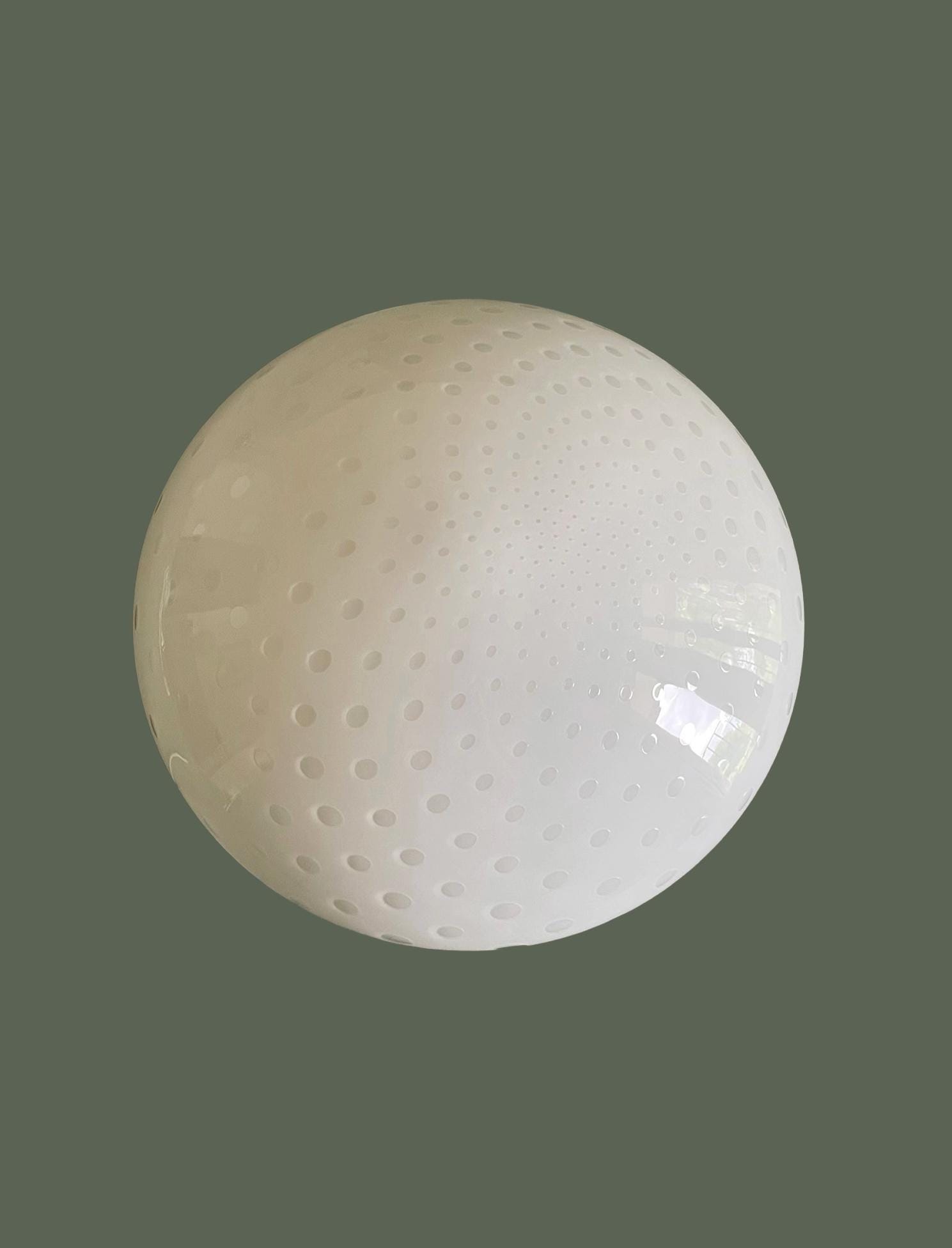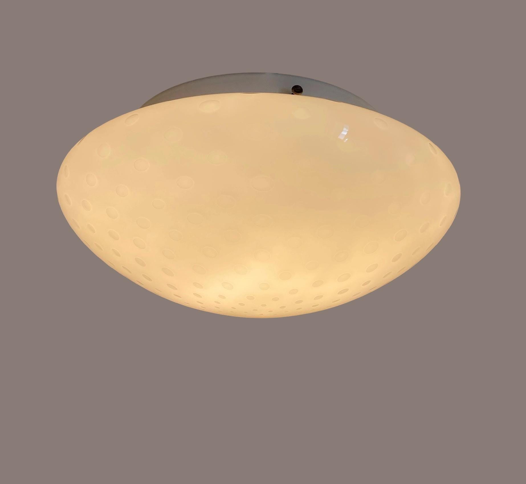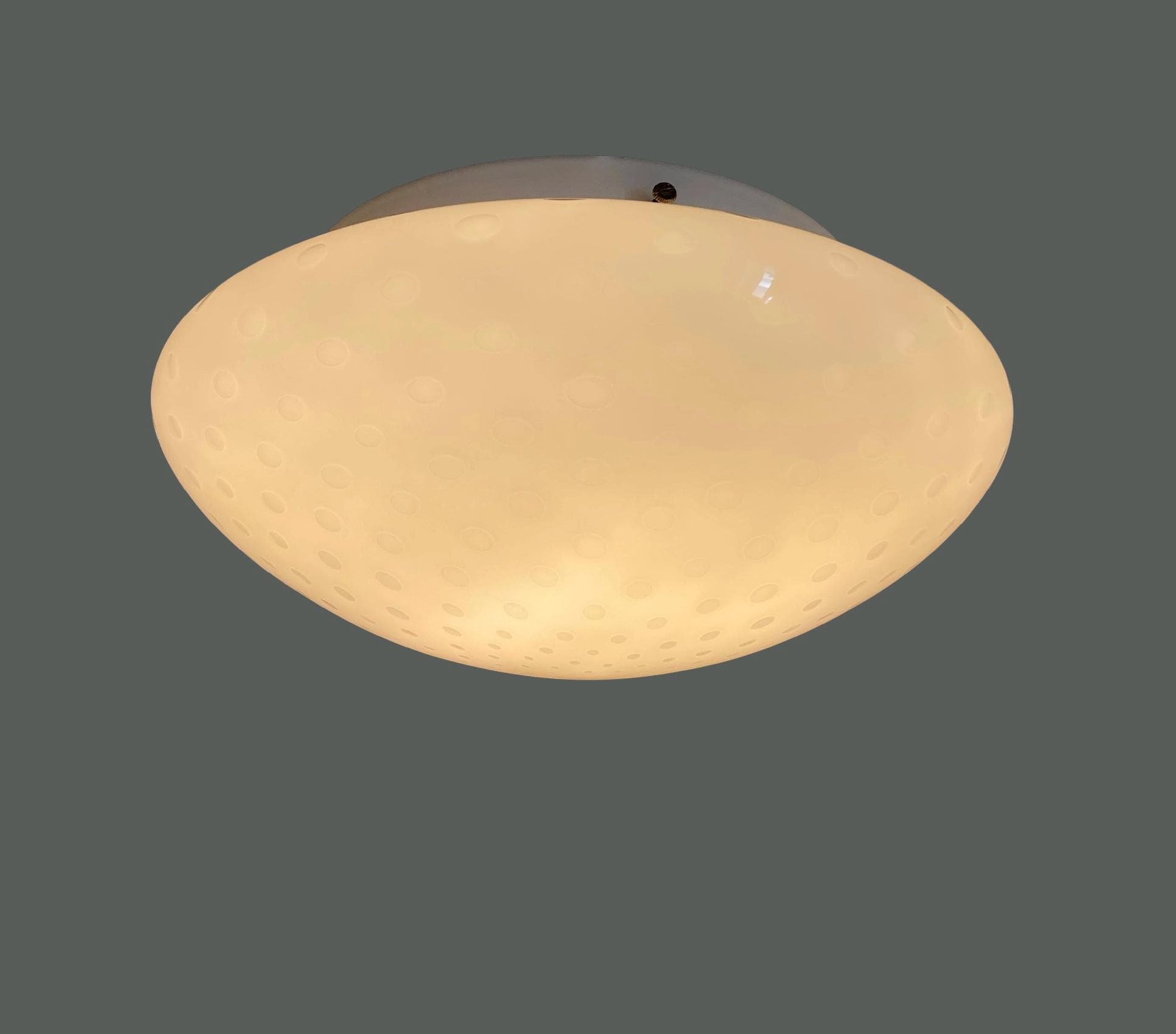 A stunning wall or ceiling lamp, handcrafted by Murano master glassmakers using the ancient bulicante glassmaking technique, a beautiful white glass with infinite bubbles. The frame is made of white metal.