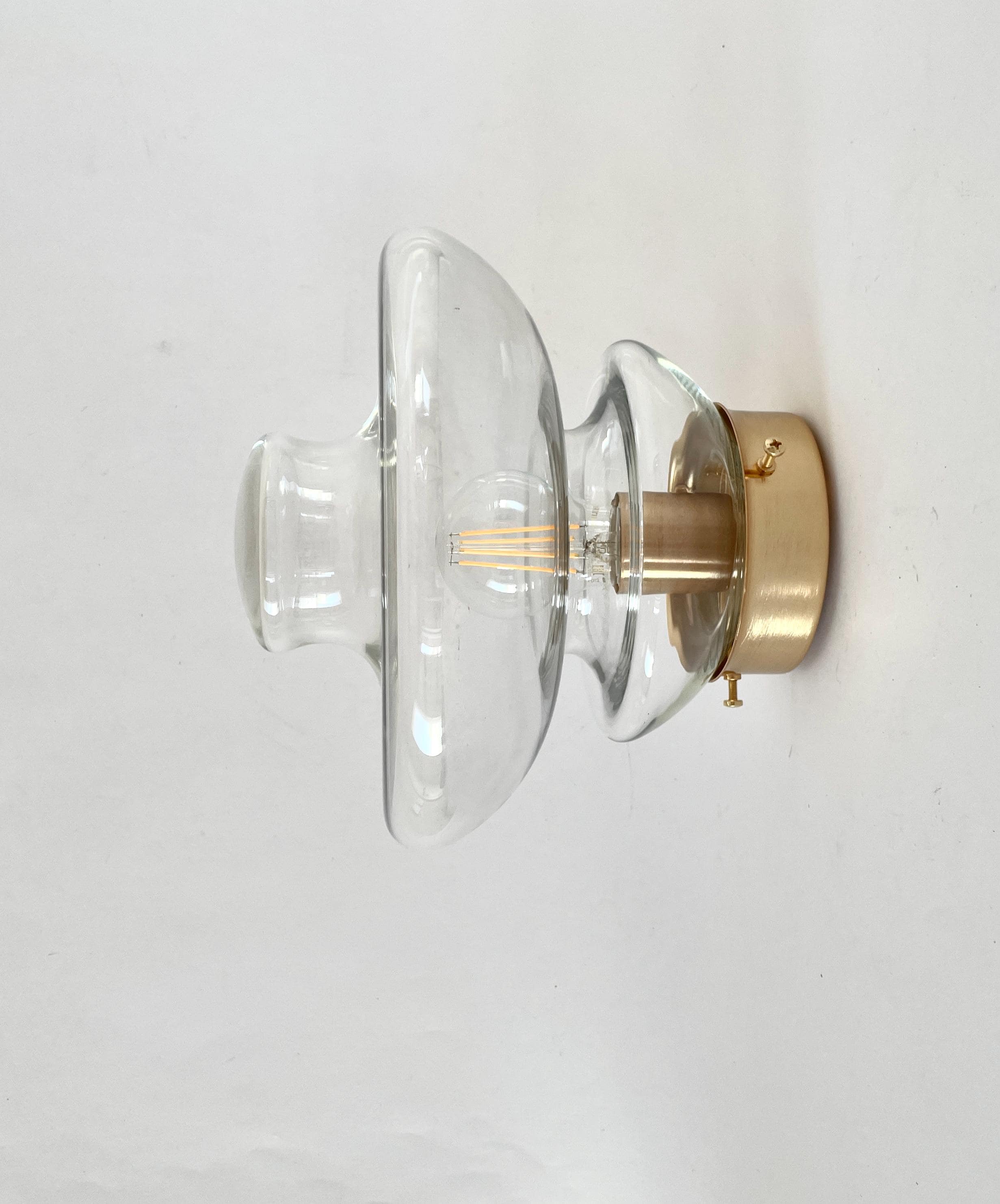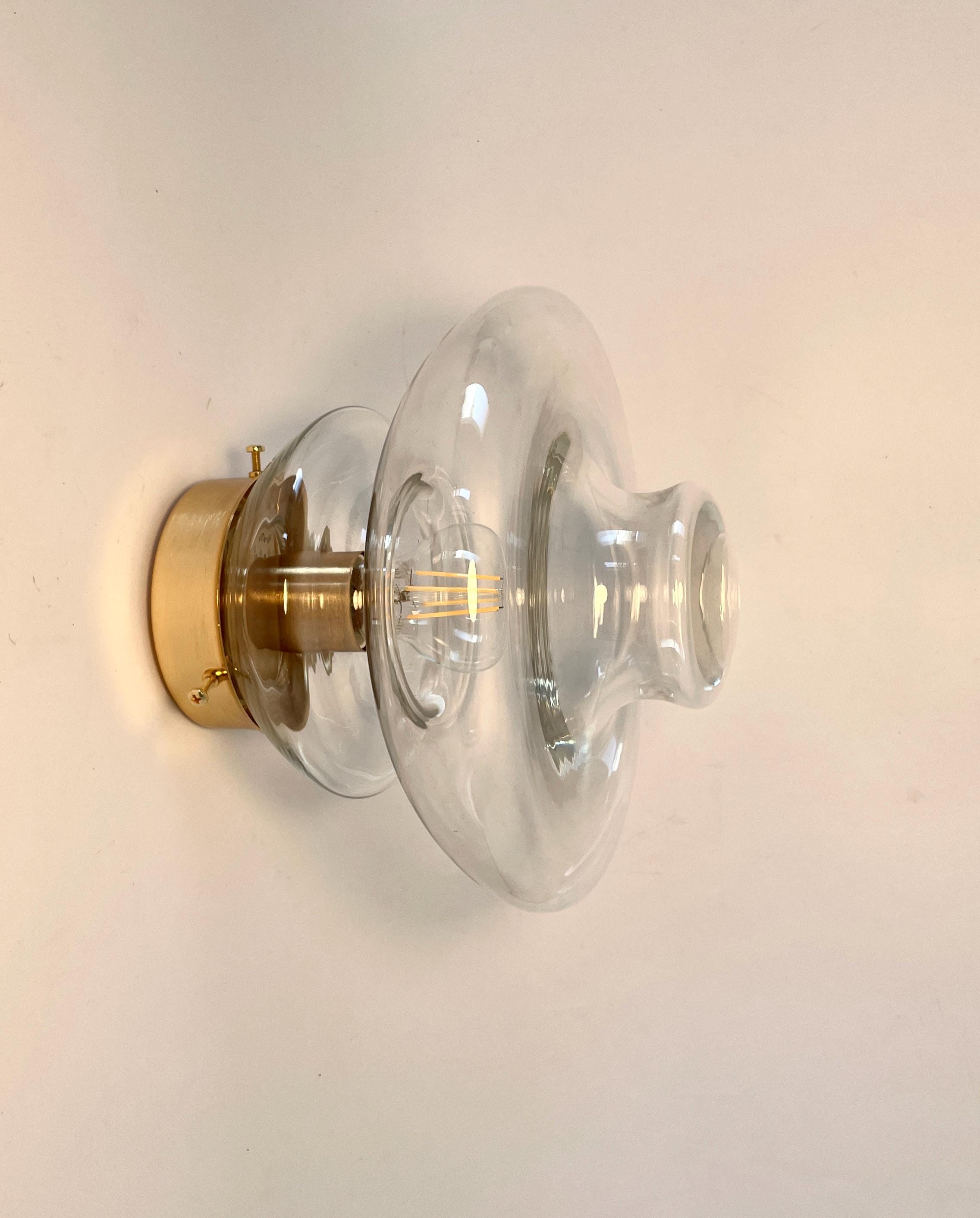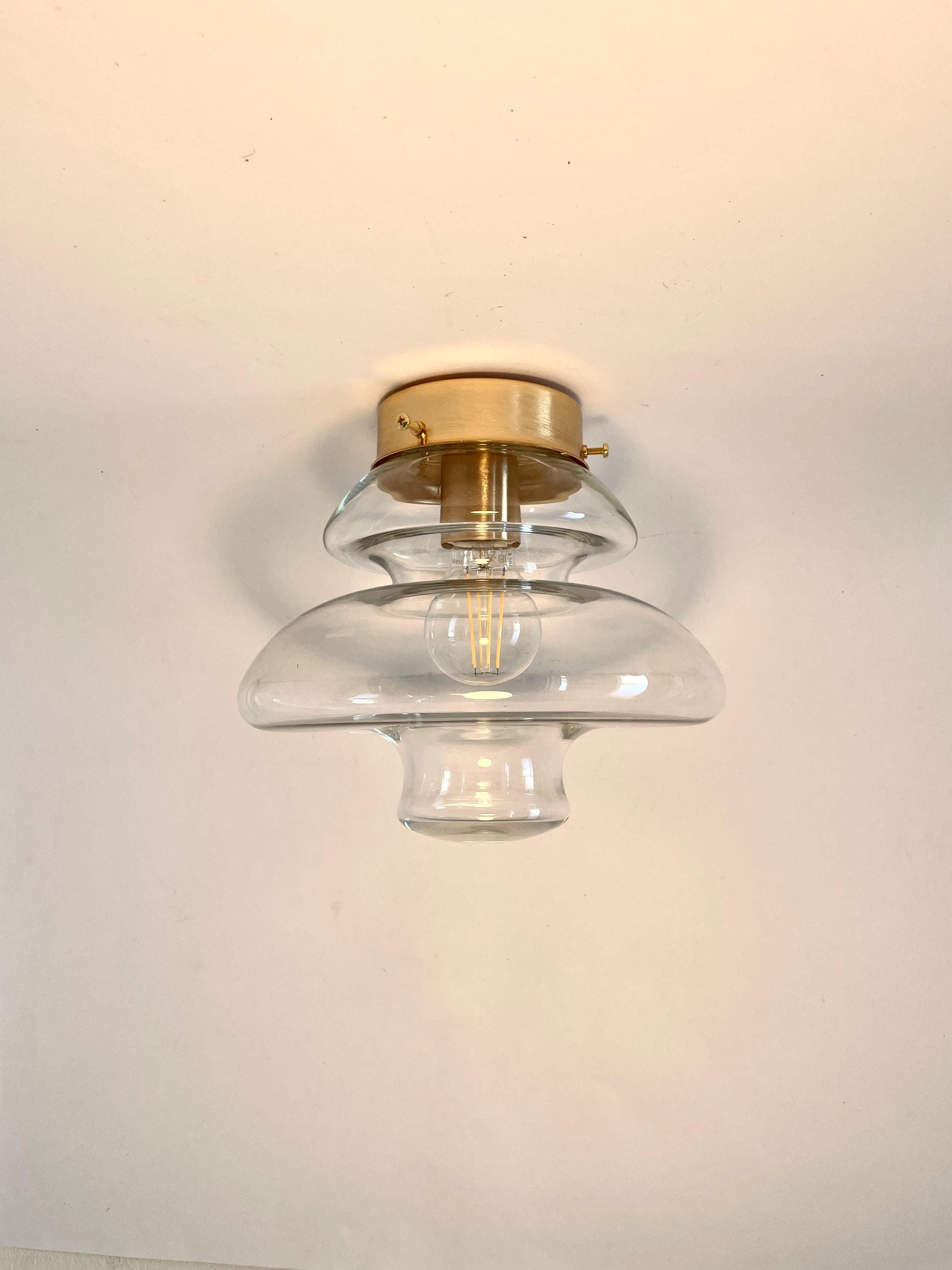 Beautiful Murano glass wall or ceiling lamps, modern Italian design, vintage from the 1960s, the clear glass was mouth-blown and hand-worked.