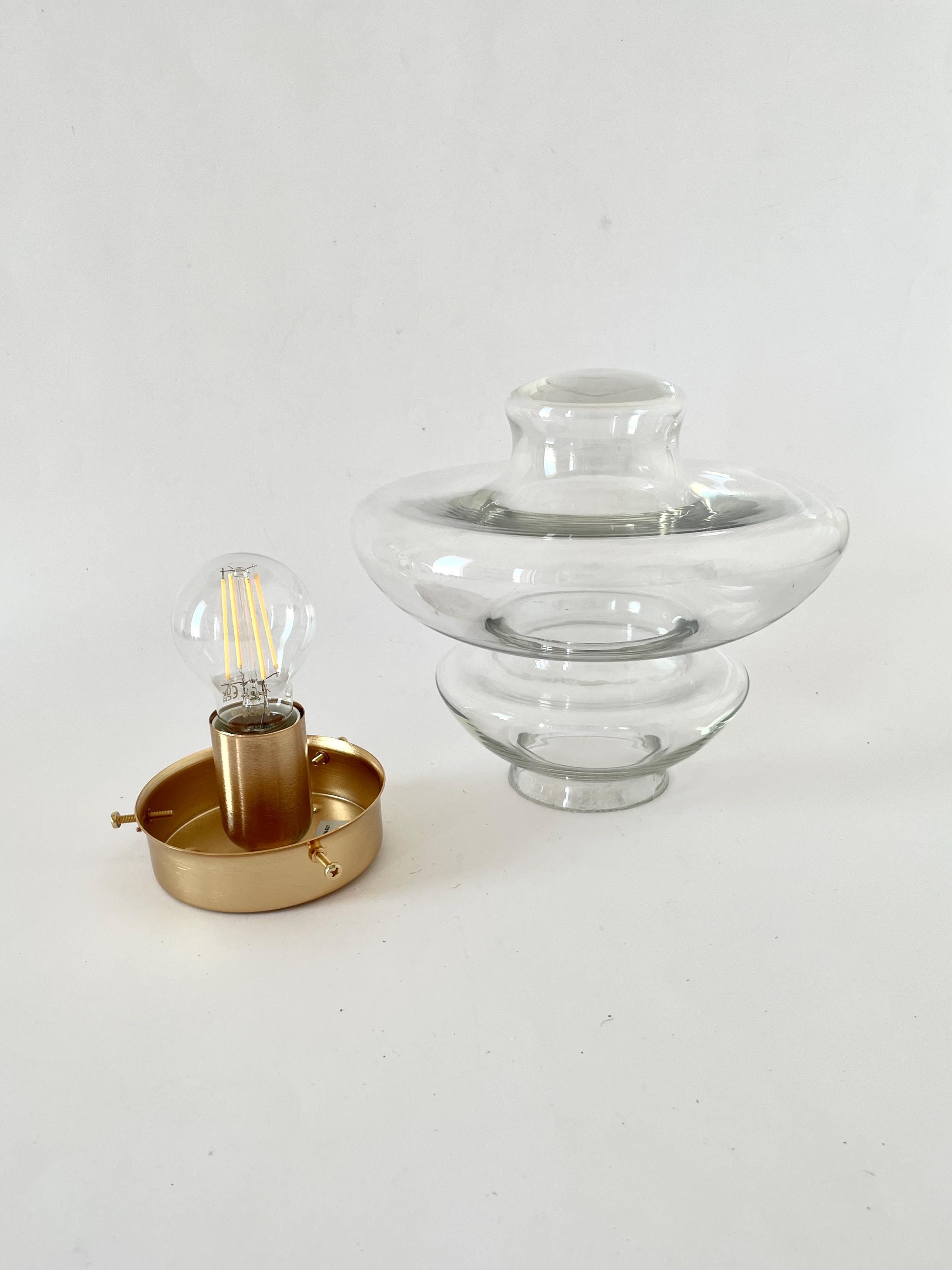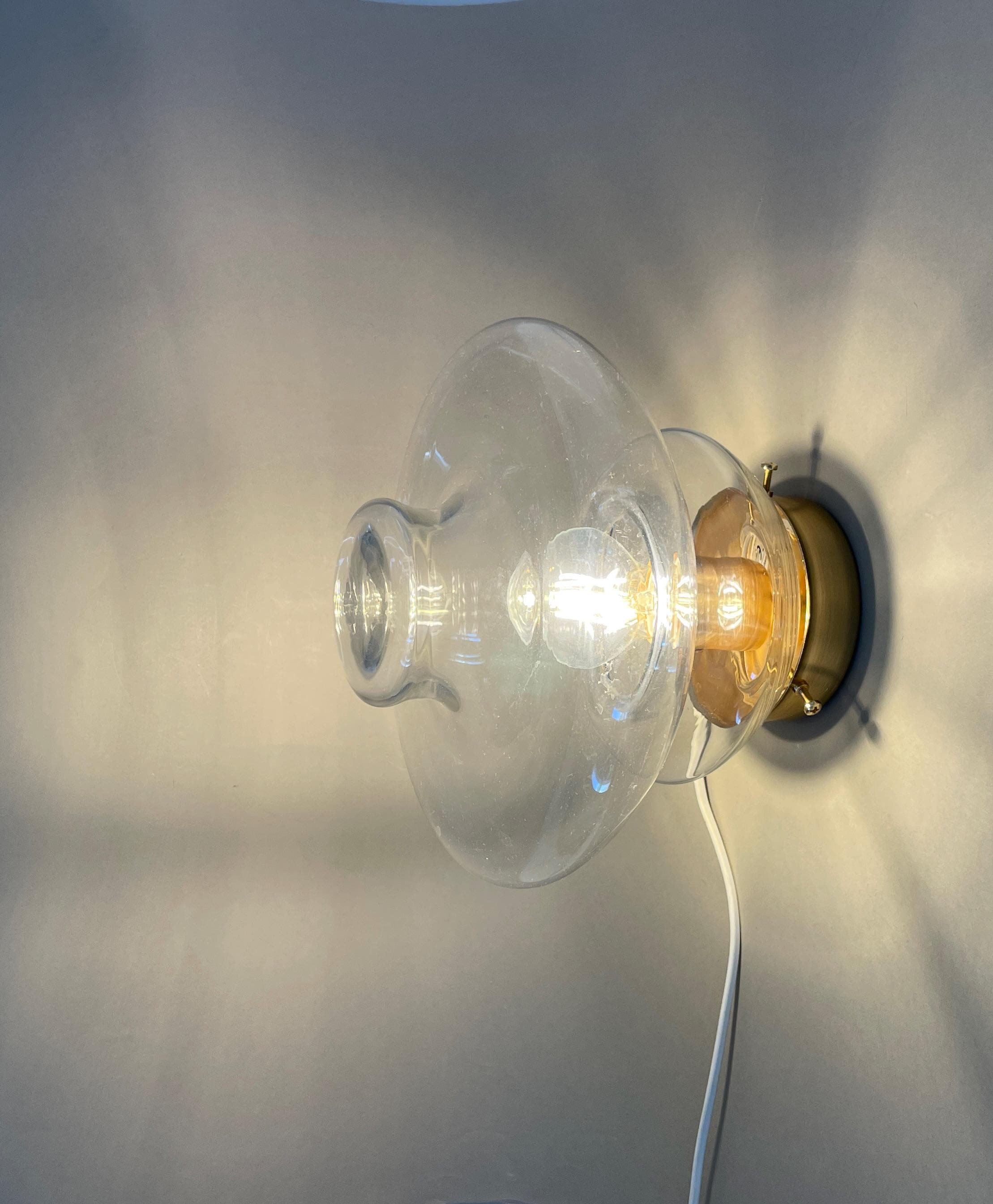 Original vintage glass, in perfect condition, the frame is new in gold finish, it is compatible with Europe and USA, designed for 1 E27 or E26 bulb, not included.