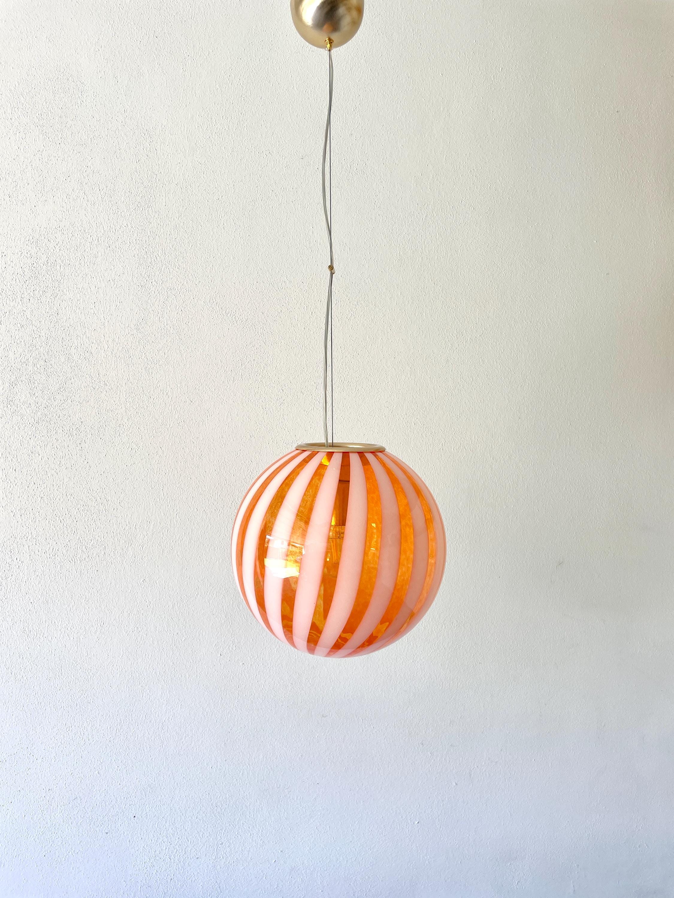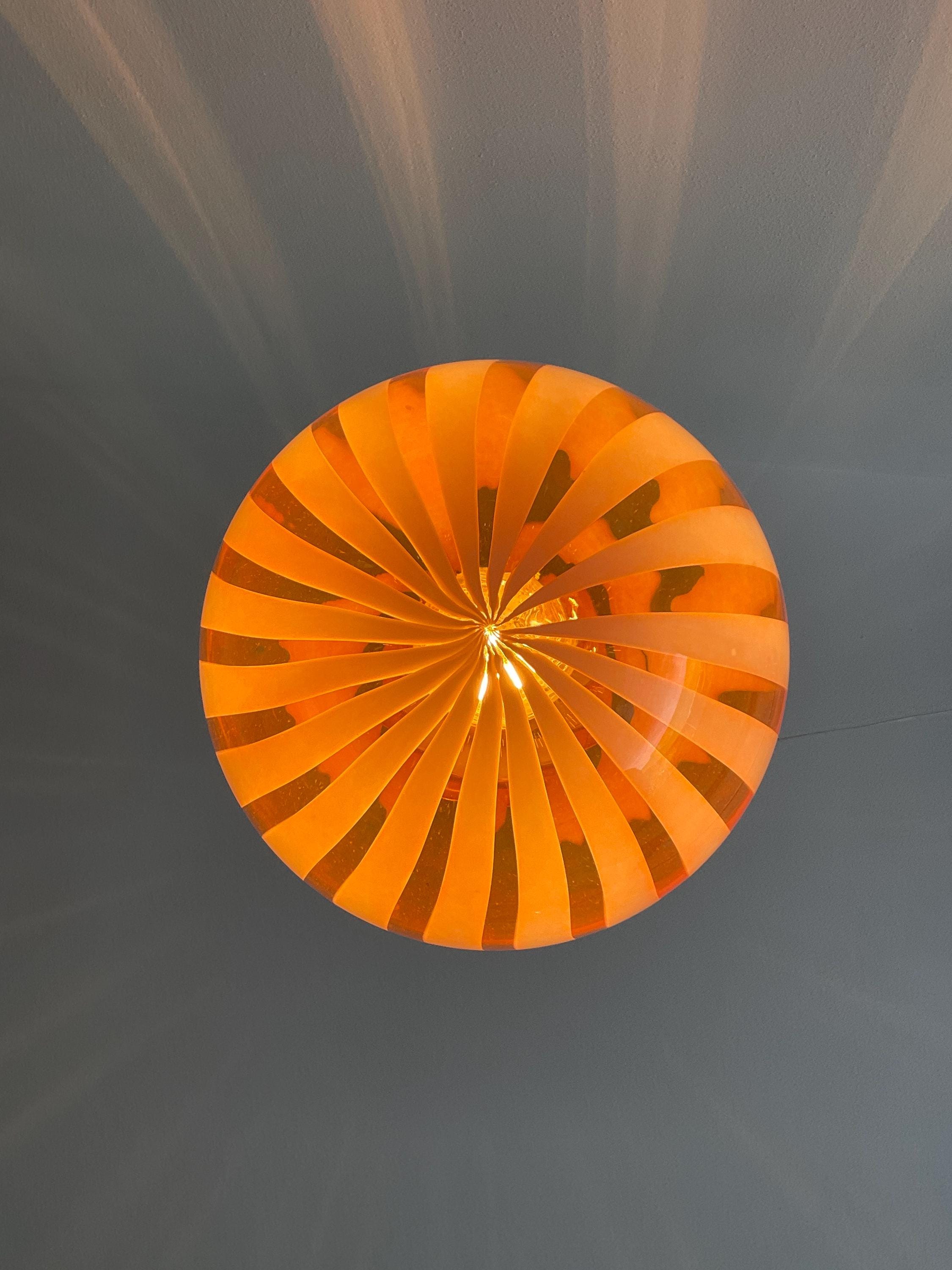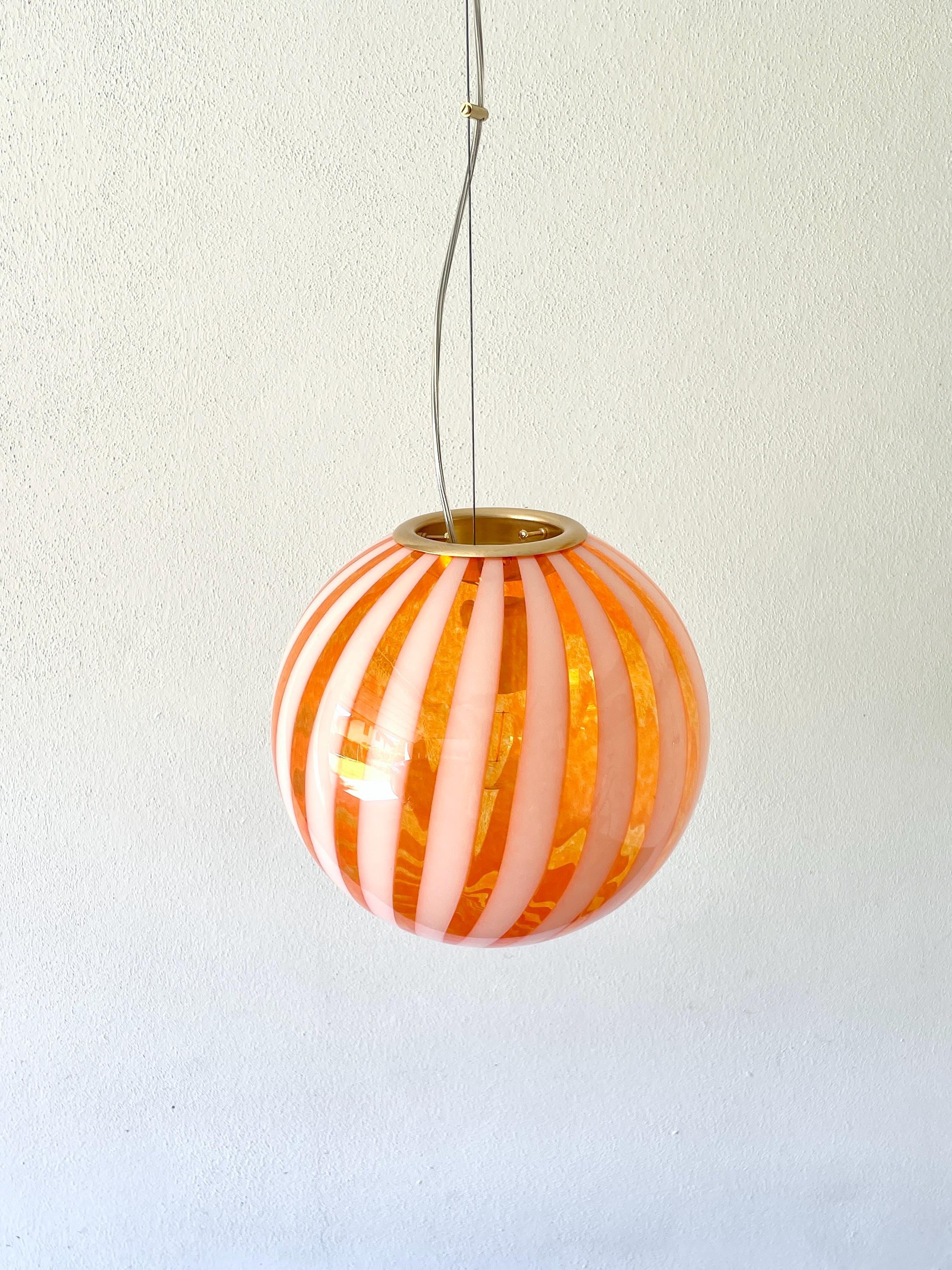 Lamps handcrafted by master glassmakers using the ancient Murano technique of working with colored glass rods. This model is available in a beautiful orange color with white rods by Effetre Murano.