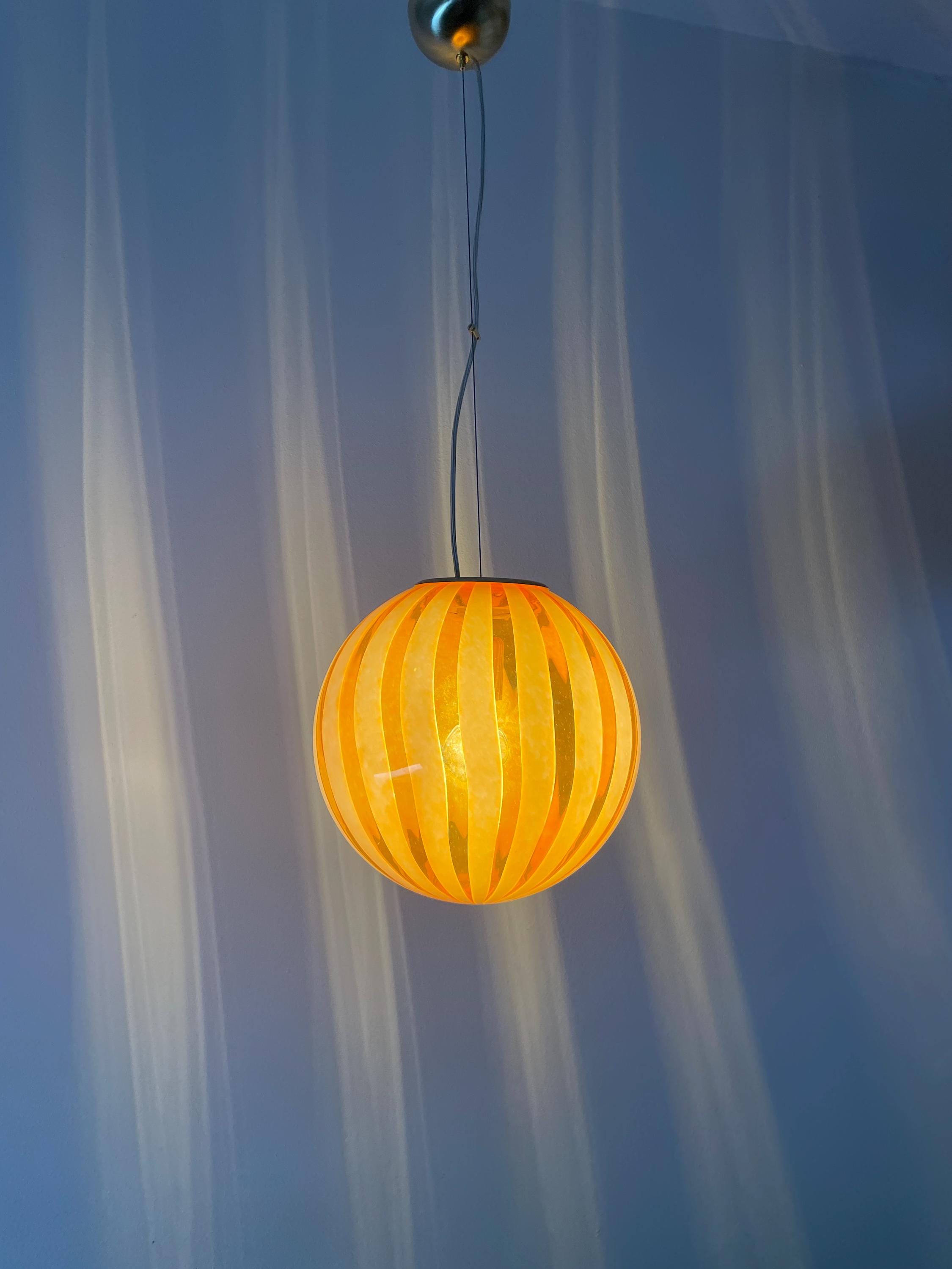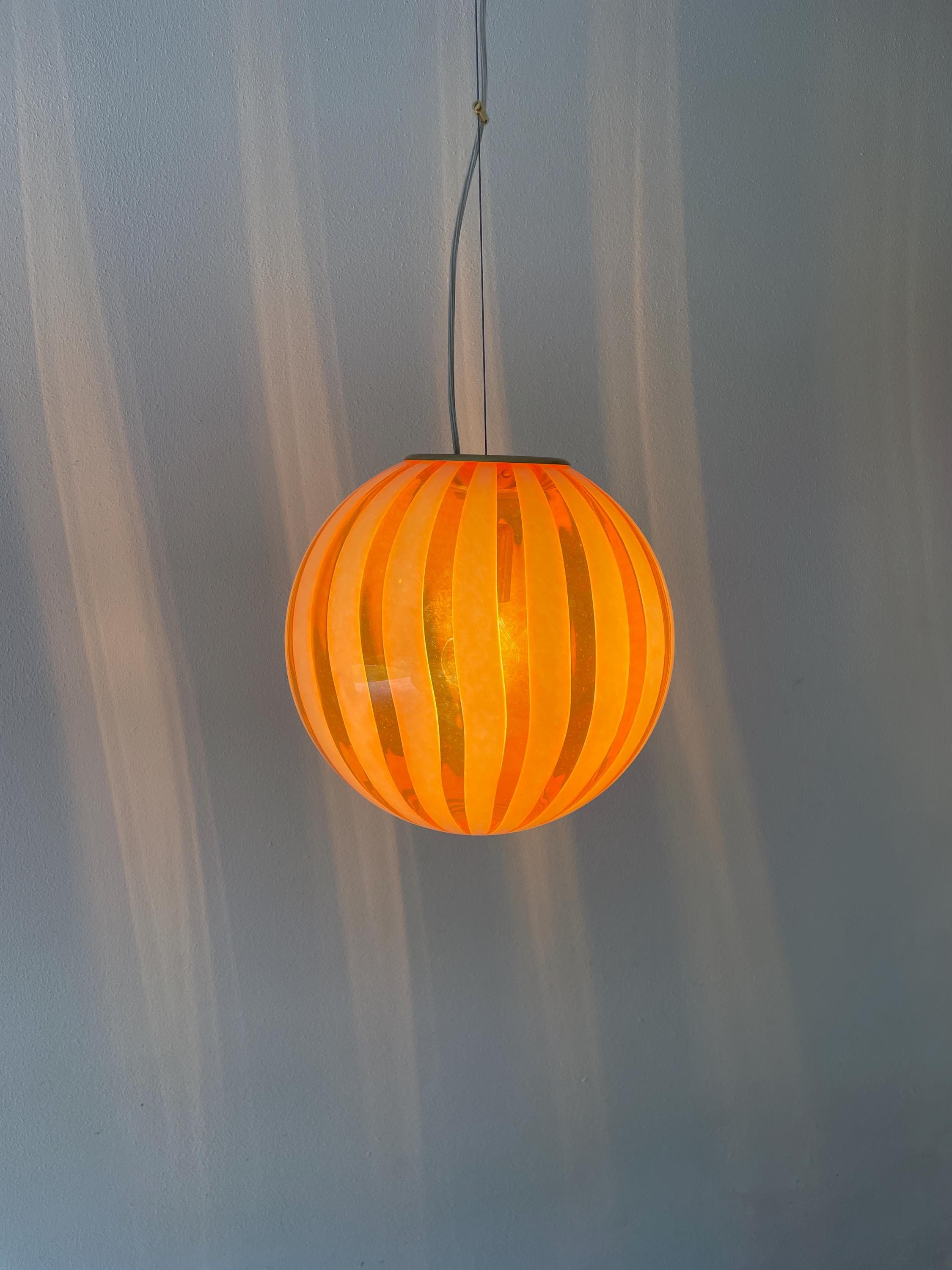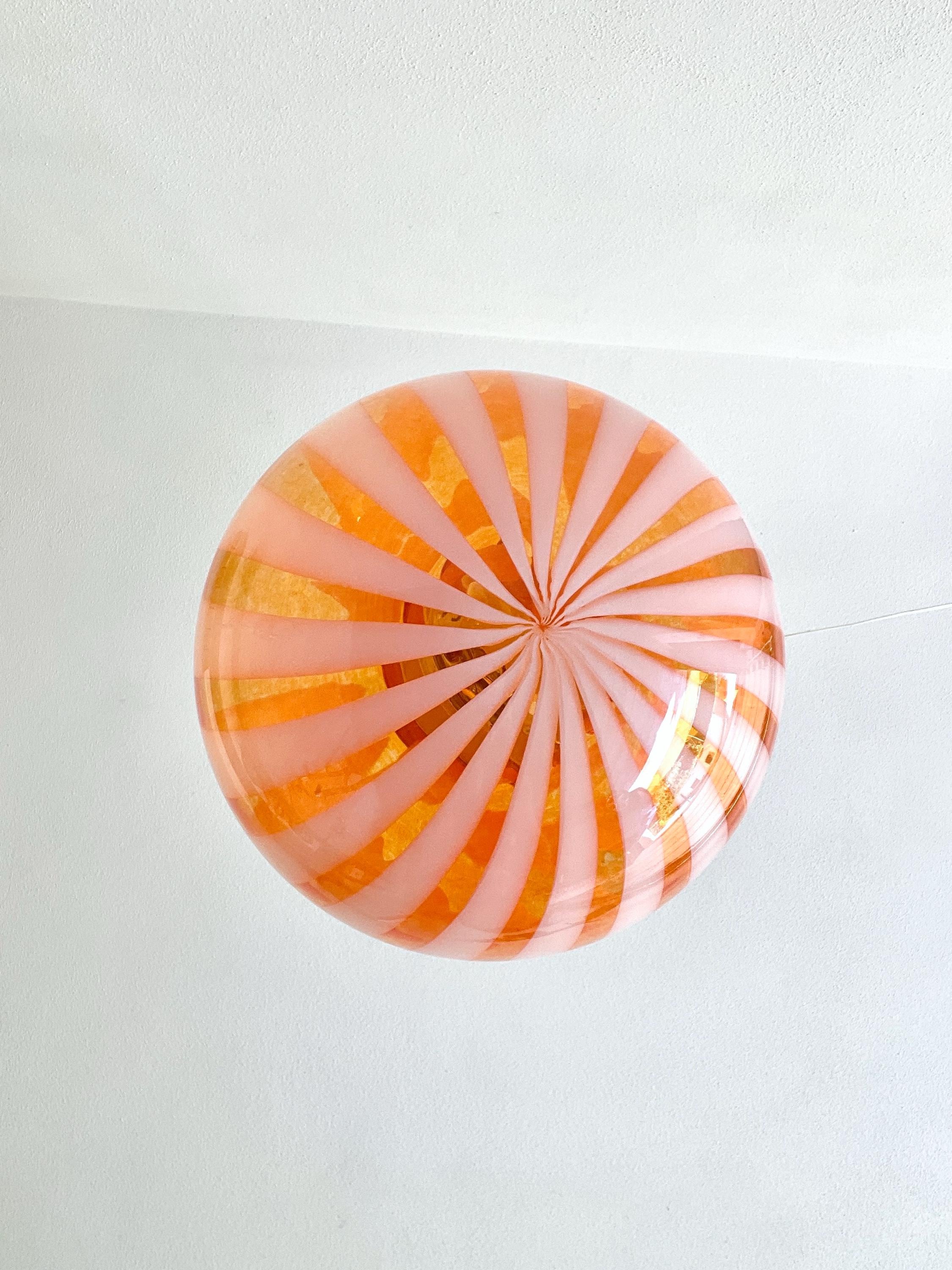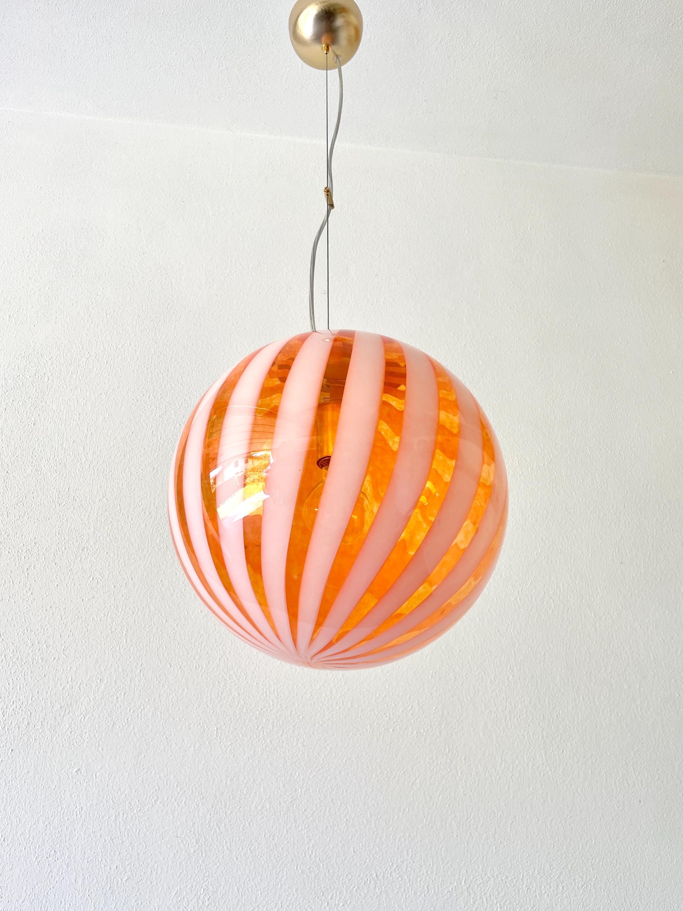 Lamps handcrafted by master glassmakers using the ancient Murano technique of working with colored glass rods. This model is available in a beautiful orange color with white rods by Effetre Murano.