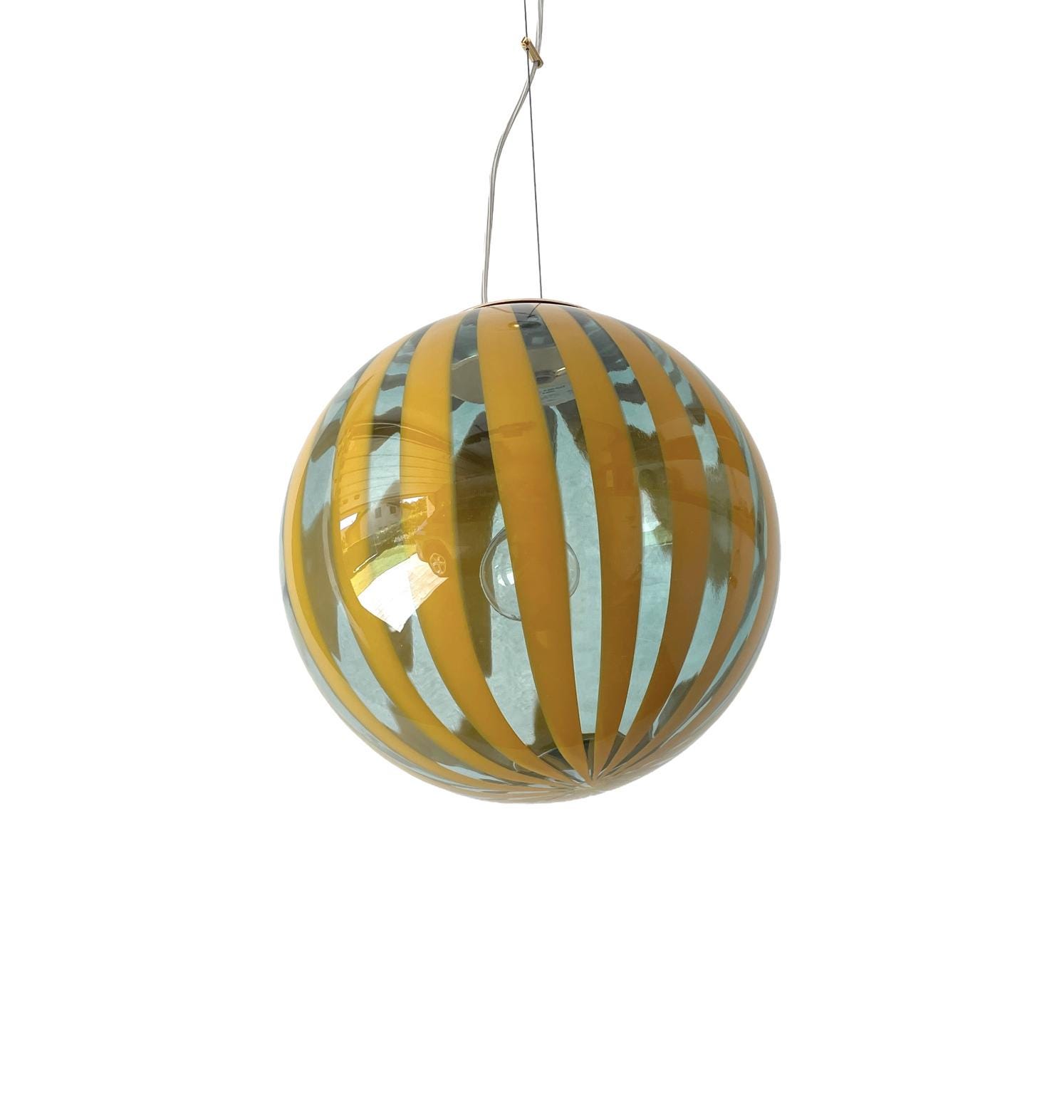 Lamps handcrafted by master glassmakers using the ancient Murano technique of working with colored glass rods. This model is available in a beautiful green color with amber/yellow rods by Effetre Murano.