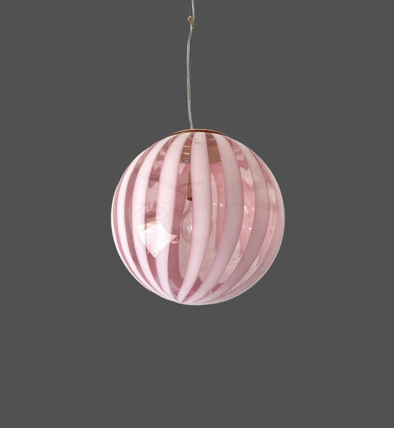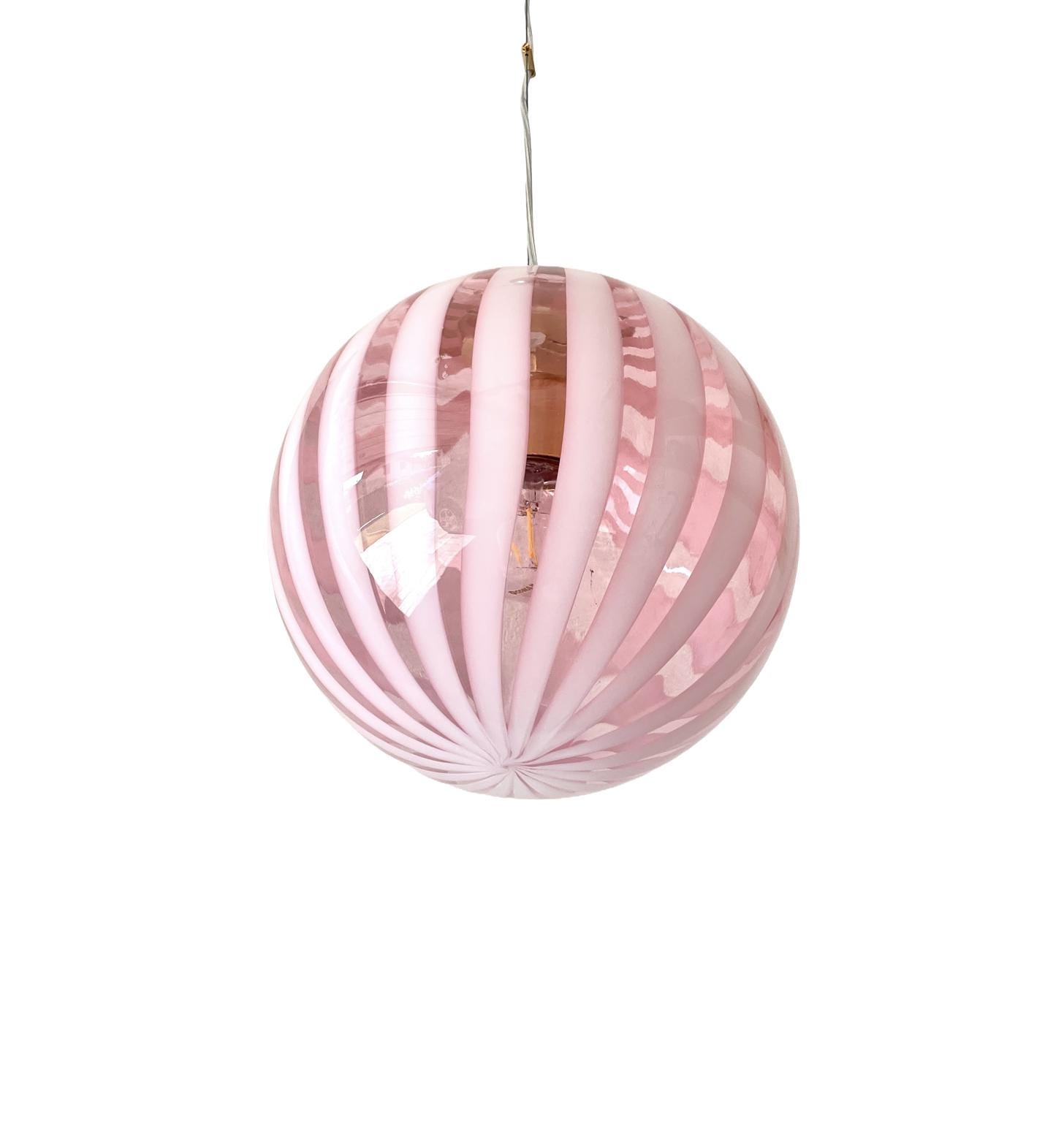 Lamps handcrafted by master glassmakers using the ancient Murano technique of working with colored glass rods. This model is available in a beautiful pink color with white rods by Effetre Murano.