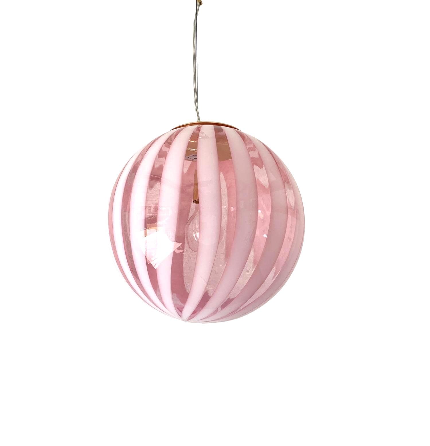Lamps handcrafted by master glassmakers using the ancient Murano technique of working with colored glass rods. This model is available in a beautiful pink color with white rods by Effetre Murano.