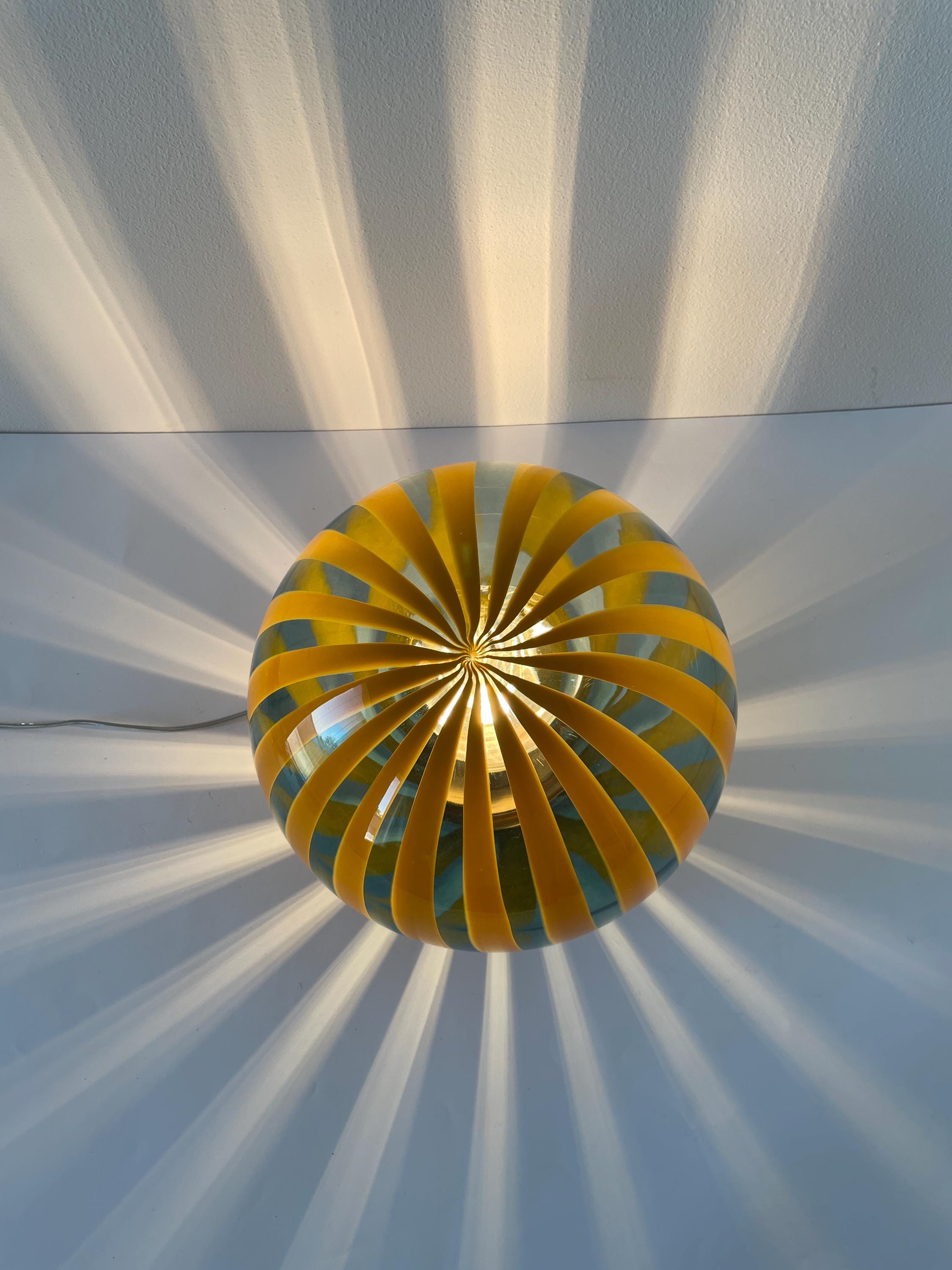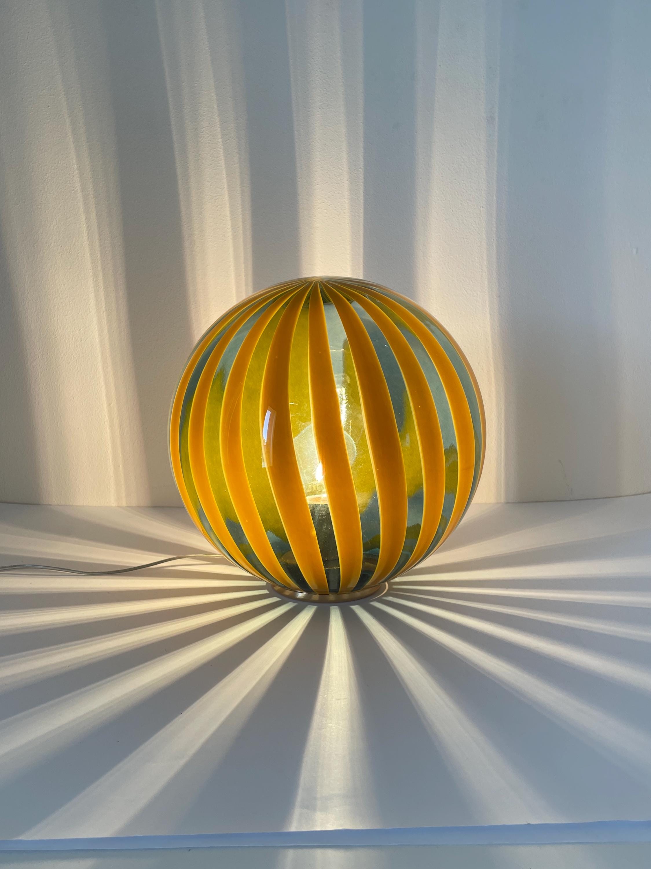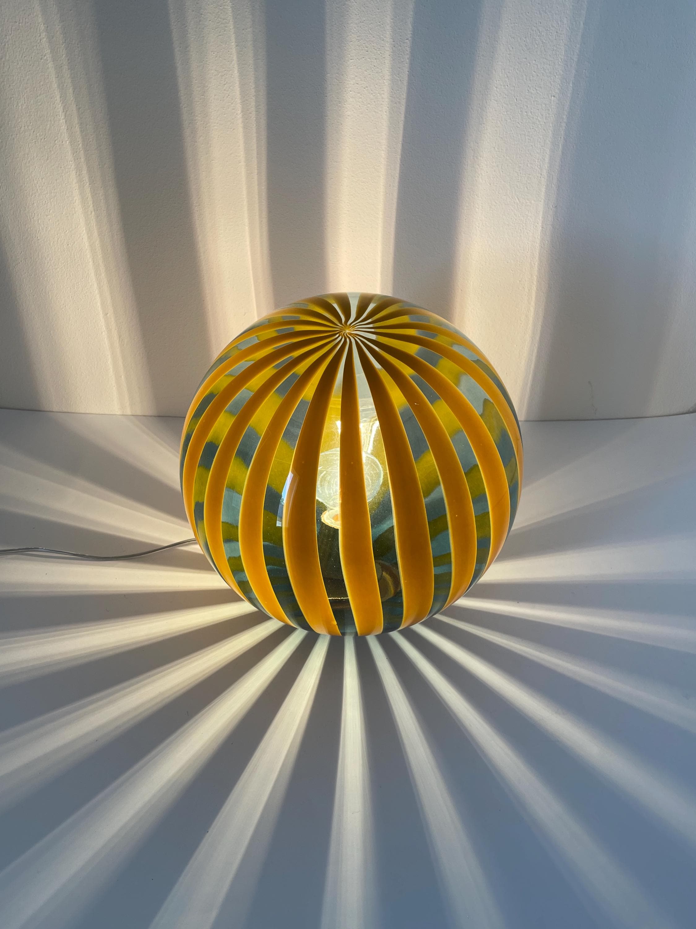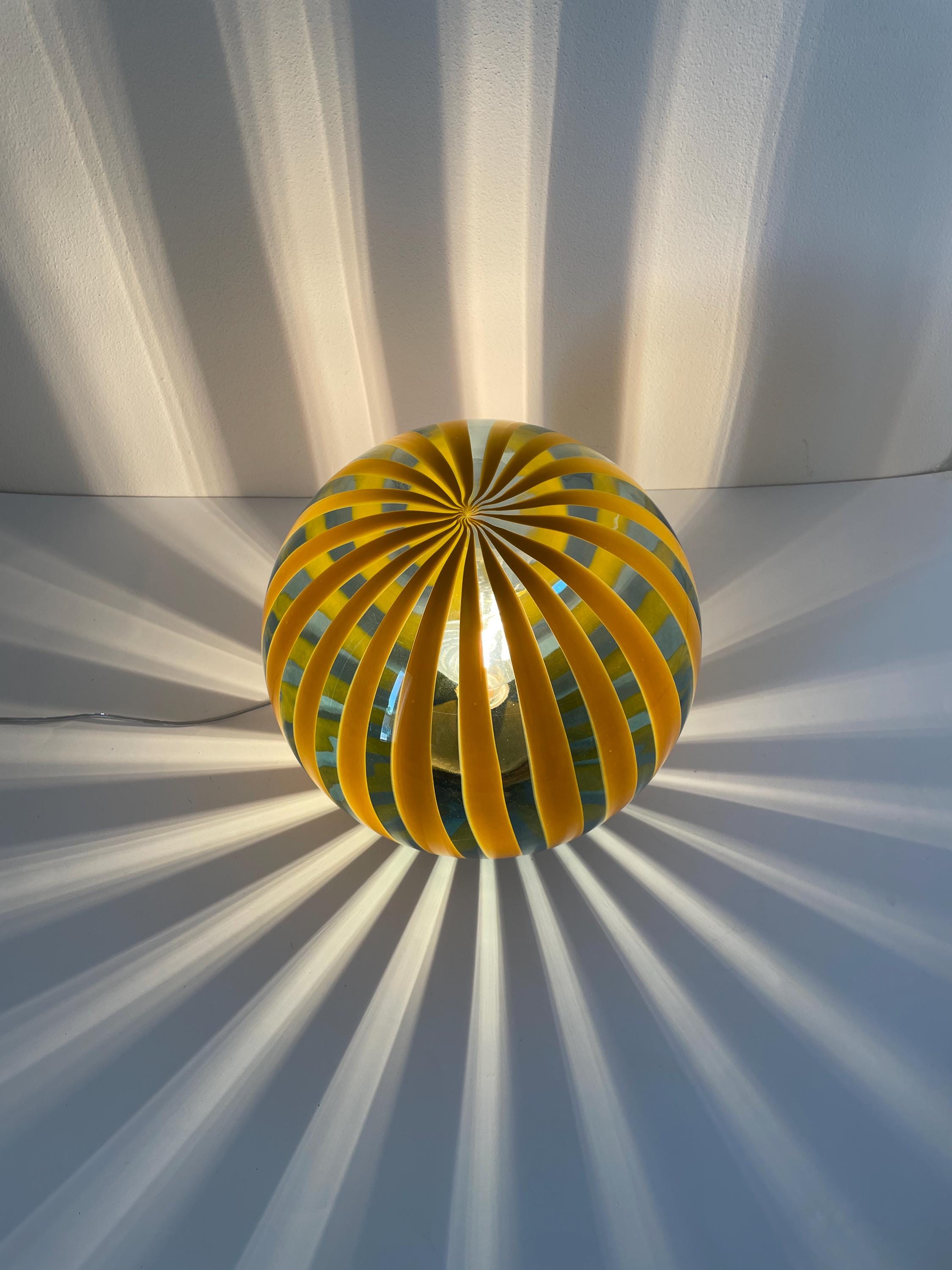 Lamps handcrafted by master glassmakers using the ancient Murano technique of working with colored glass rods. This model is available in a beautiful green color with amber/yellow rods by Effetre Murano.