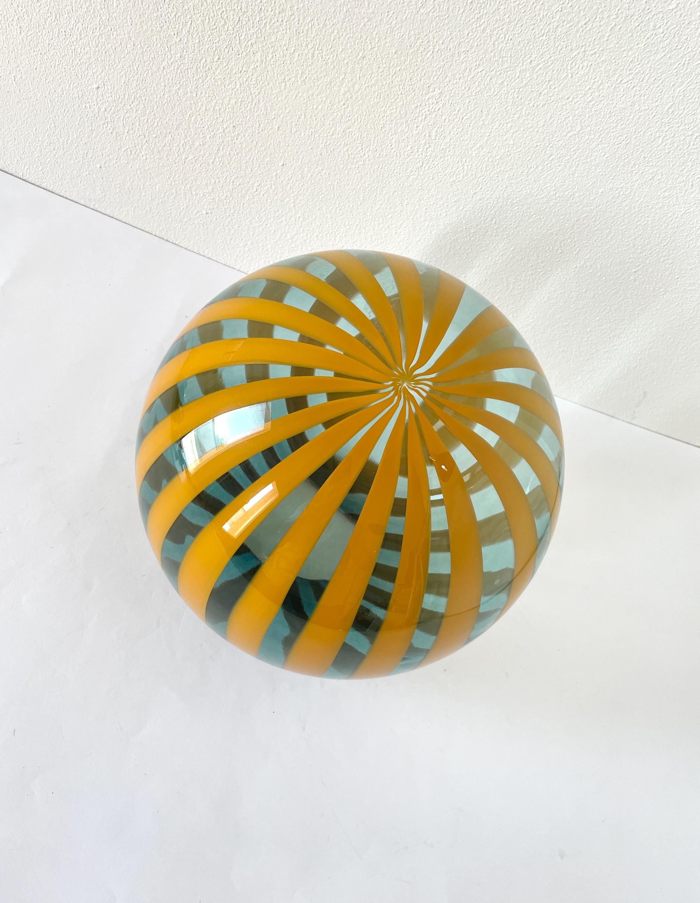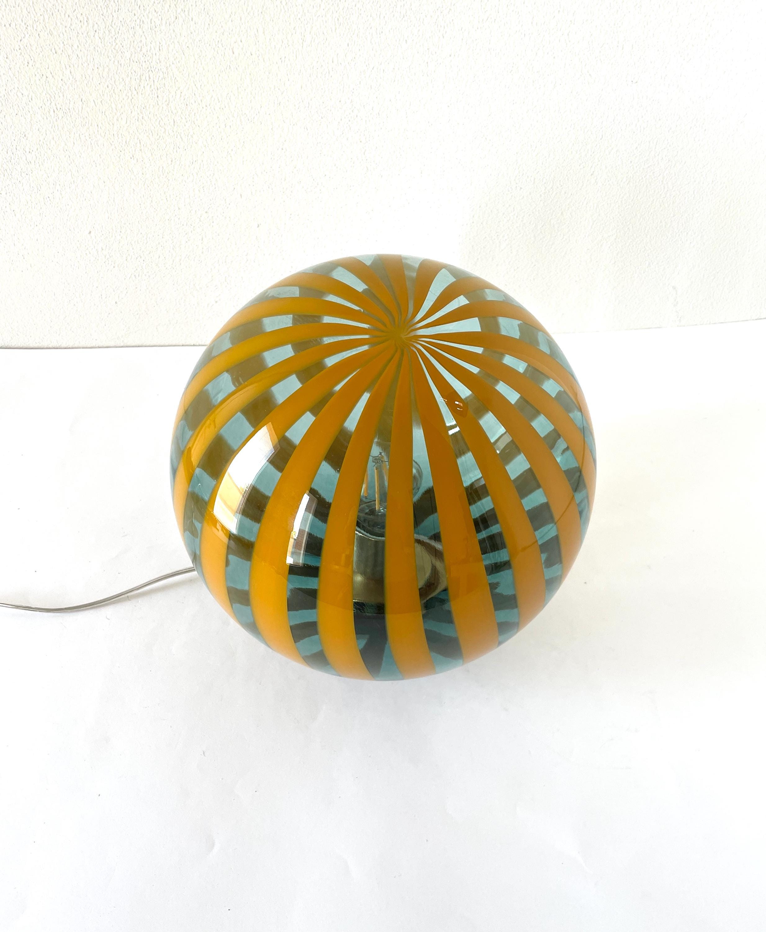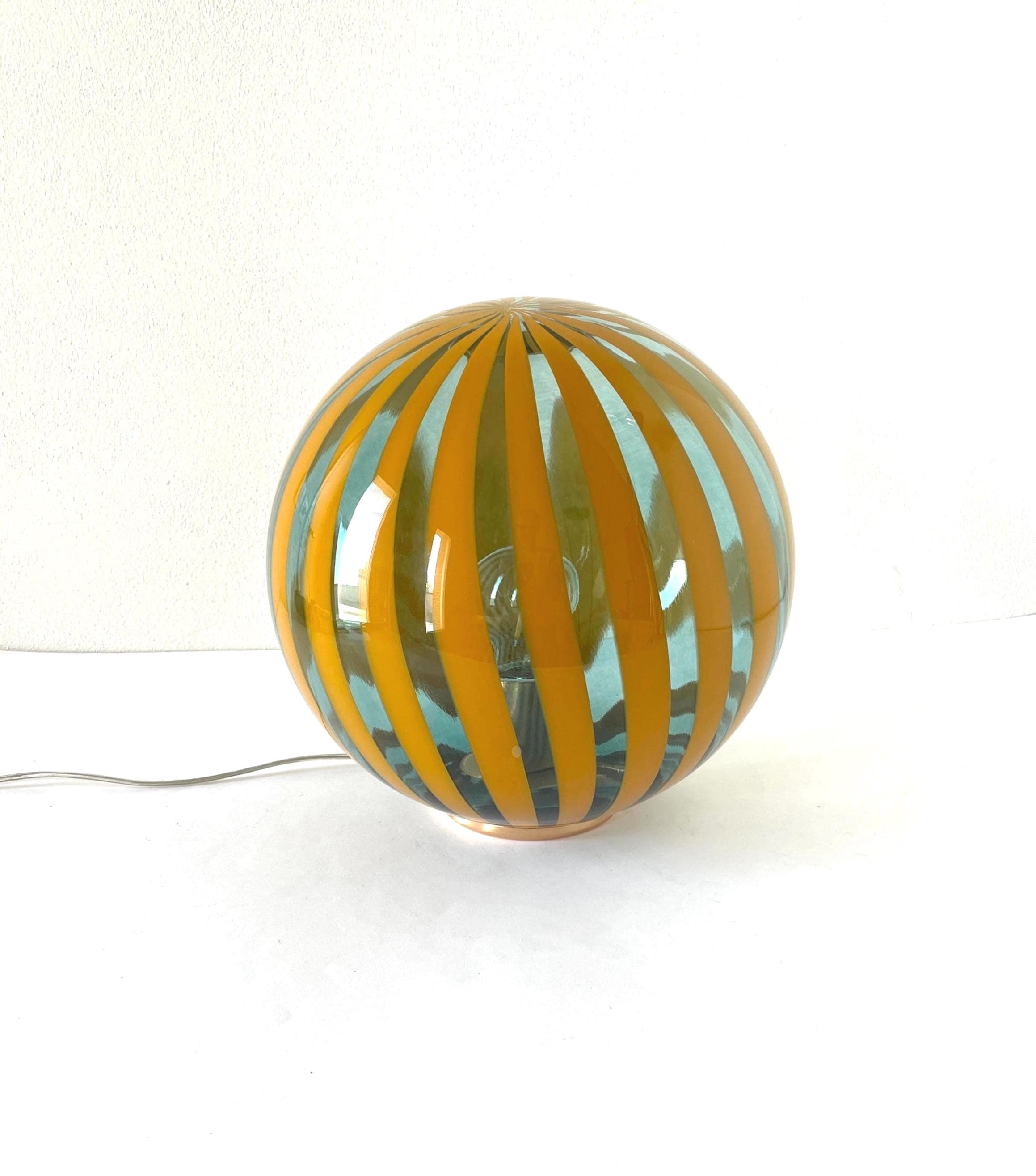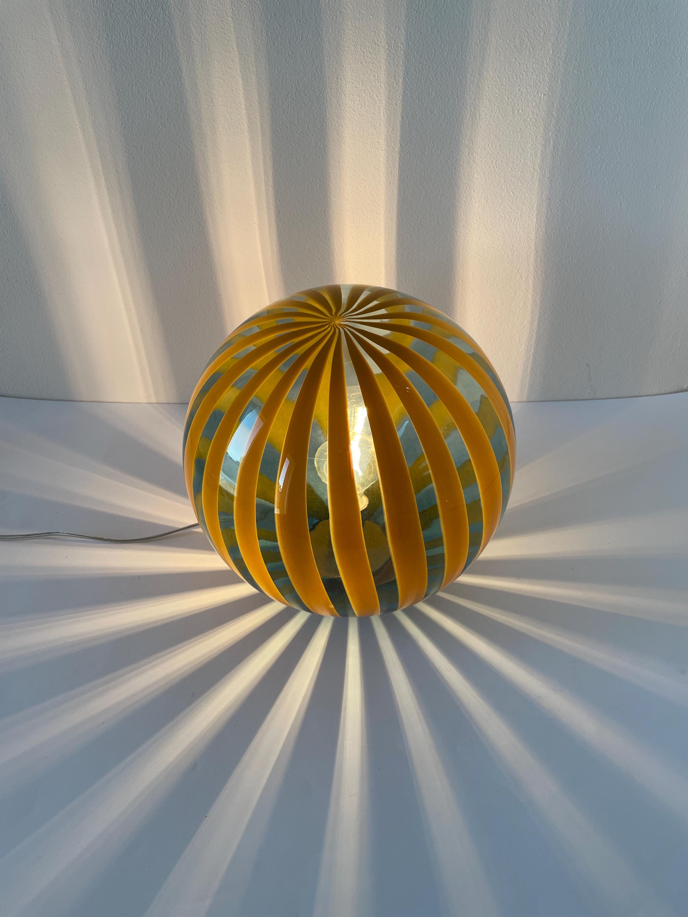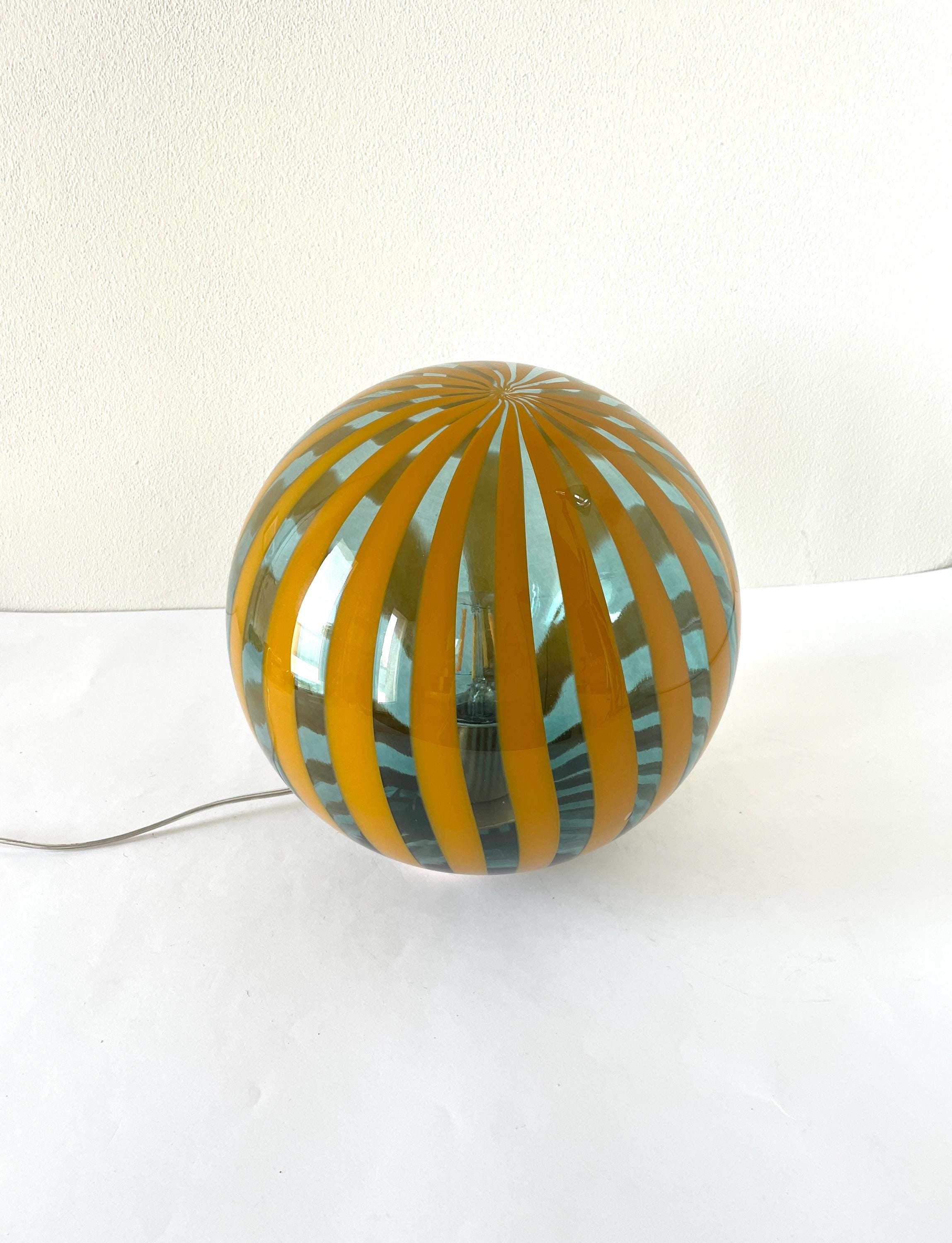 Lamps handcrafted by master glassmakers using the ancient Murano technique of working with colored glass rods. This model is available in a beautiful green color with amber/yellow rods by Effetre Murano.