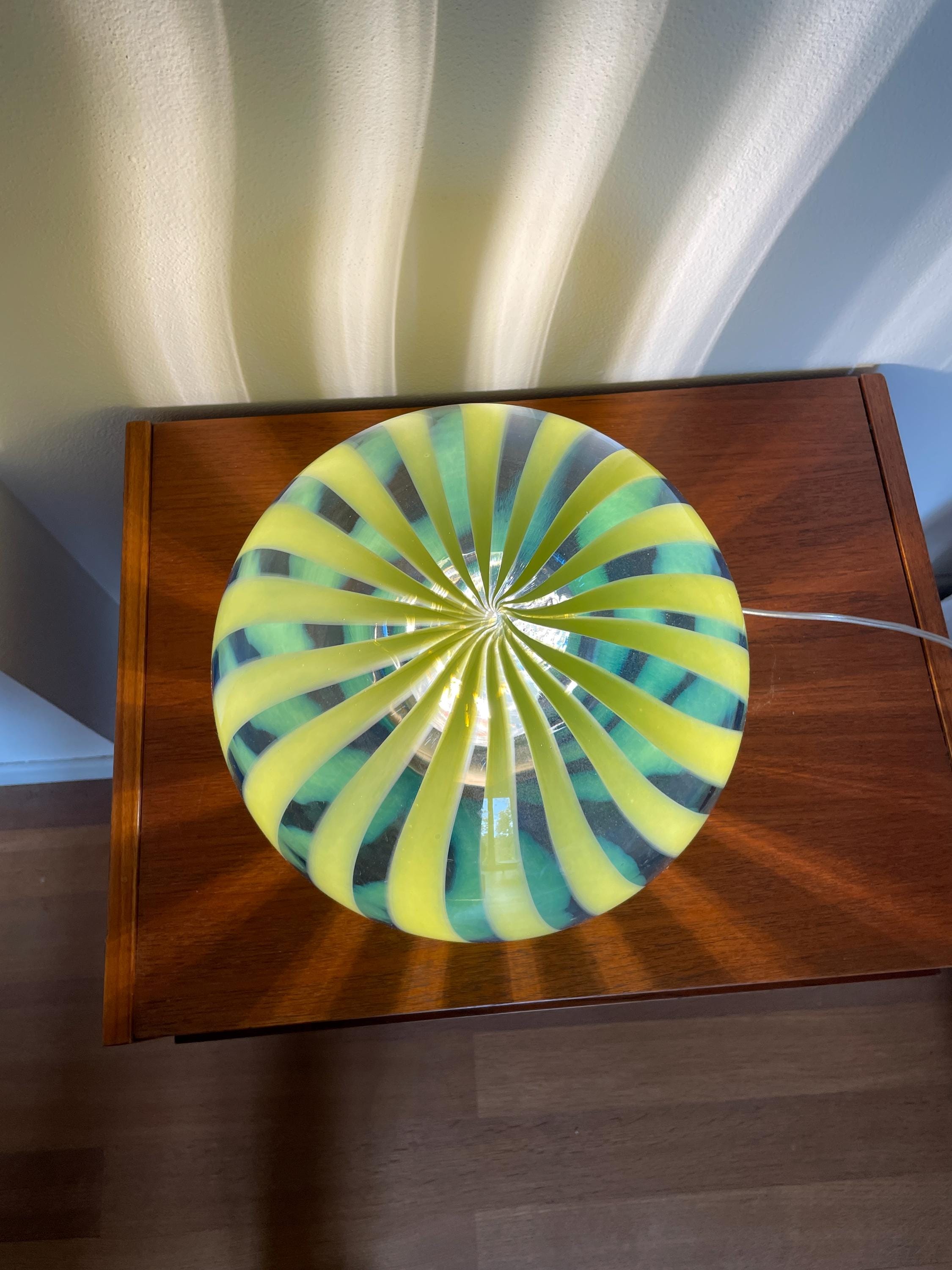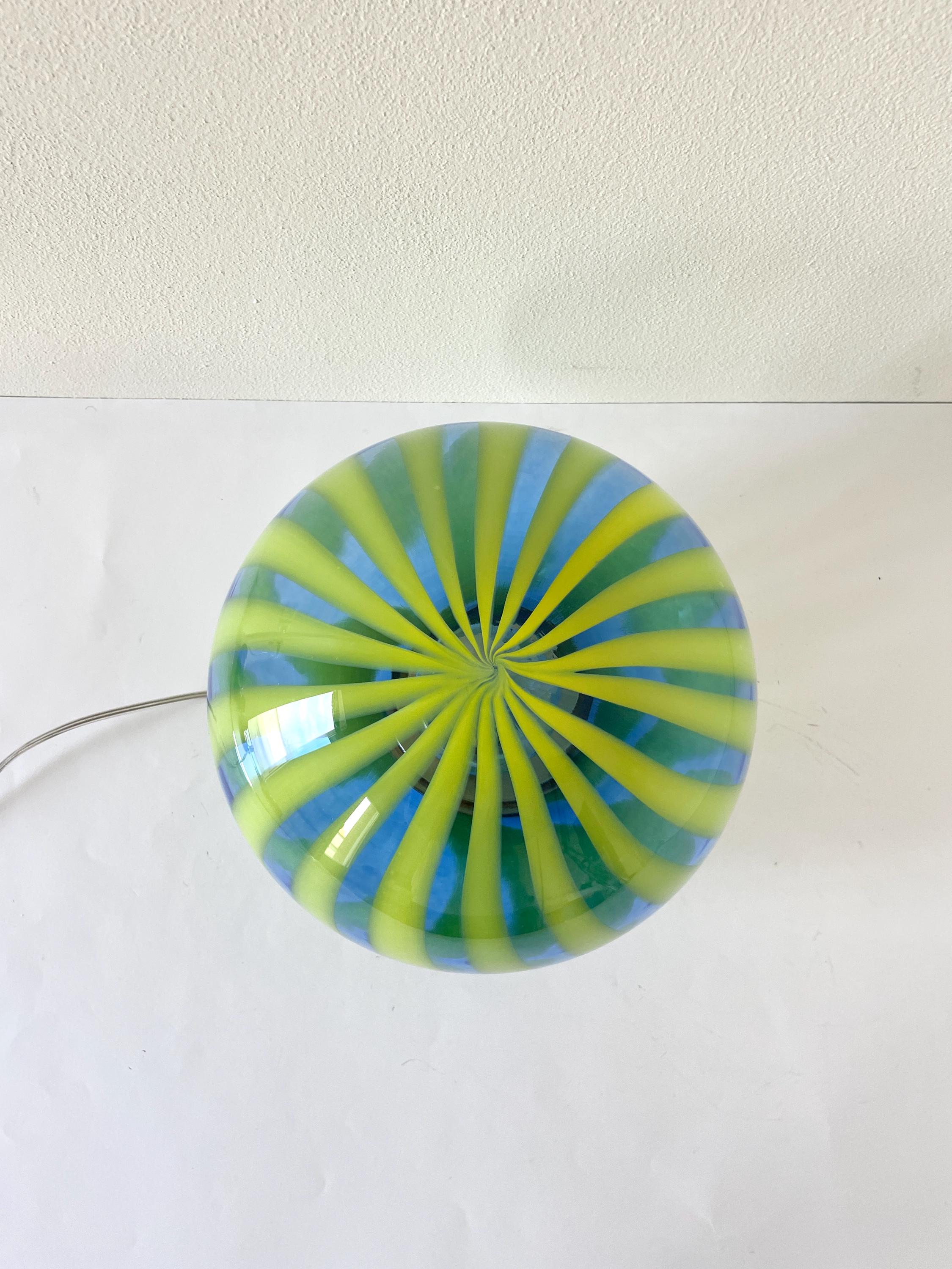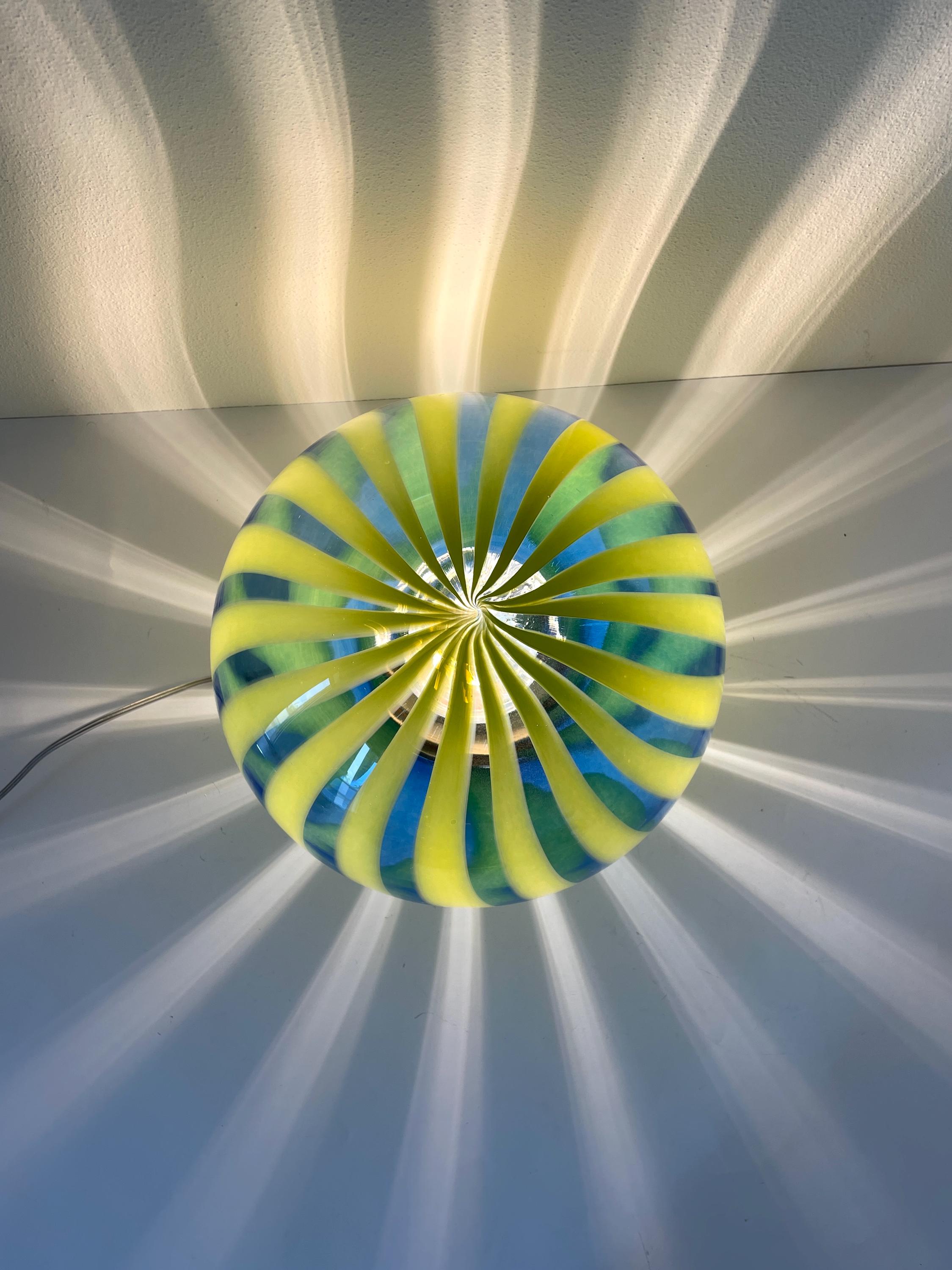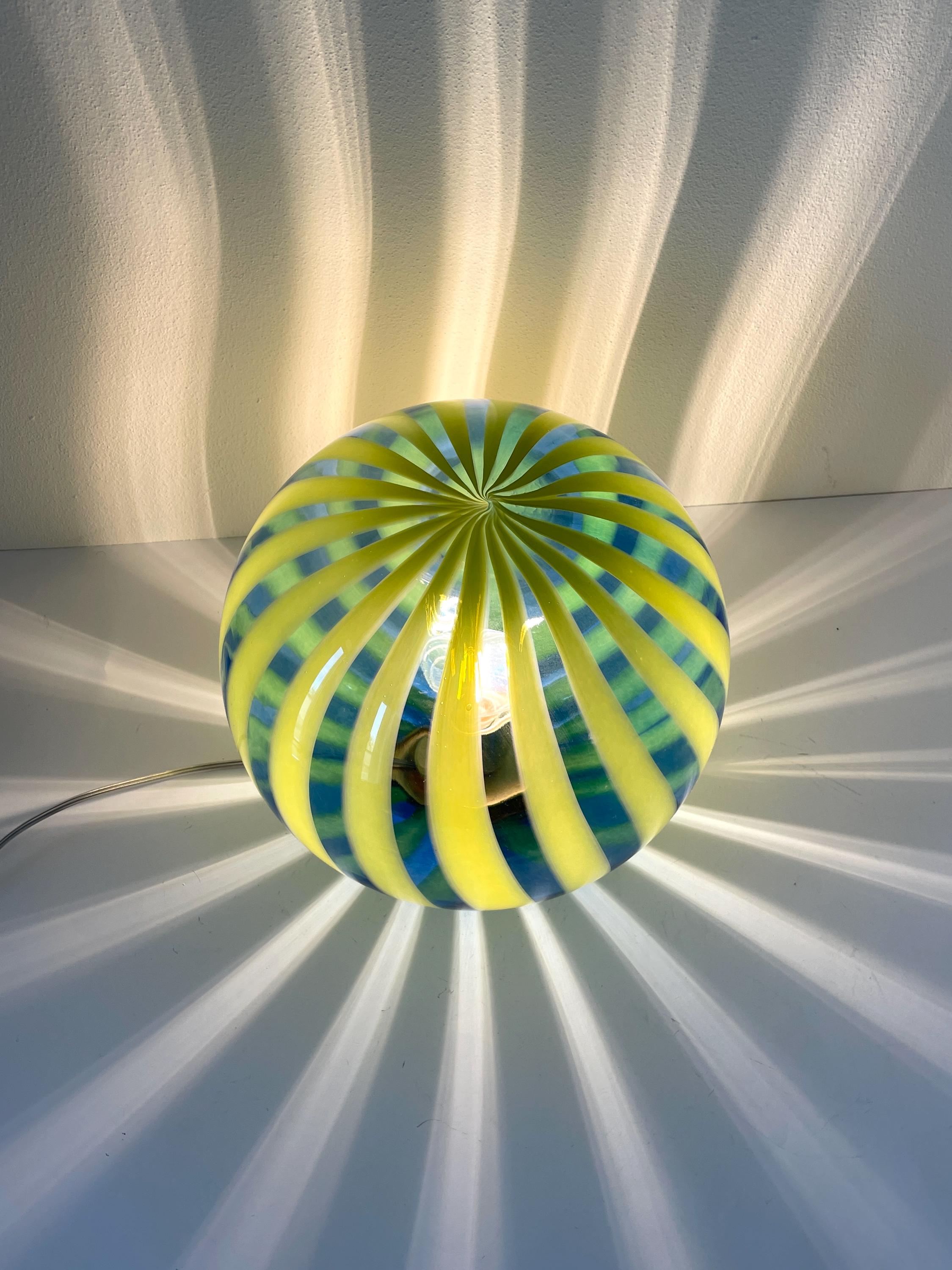 Lamps handcrafted by master glassmakers using the ancient Murano technique of working with colored glass rods. This model is available in a beautiful blue color with lemon yellow rods by Effetre Murano.