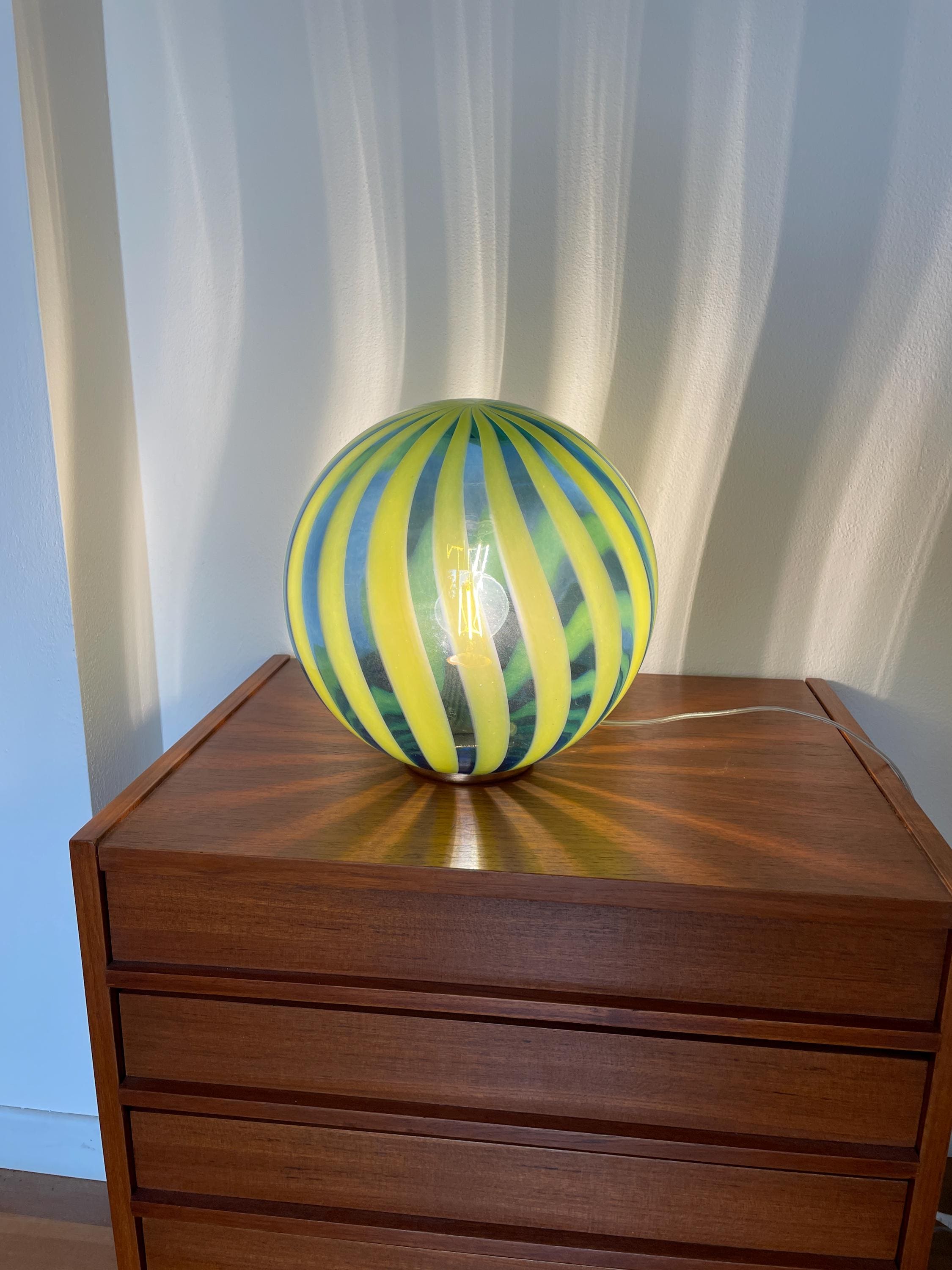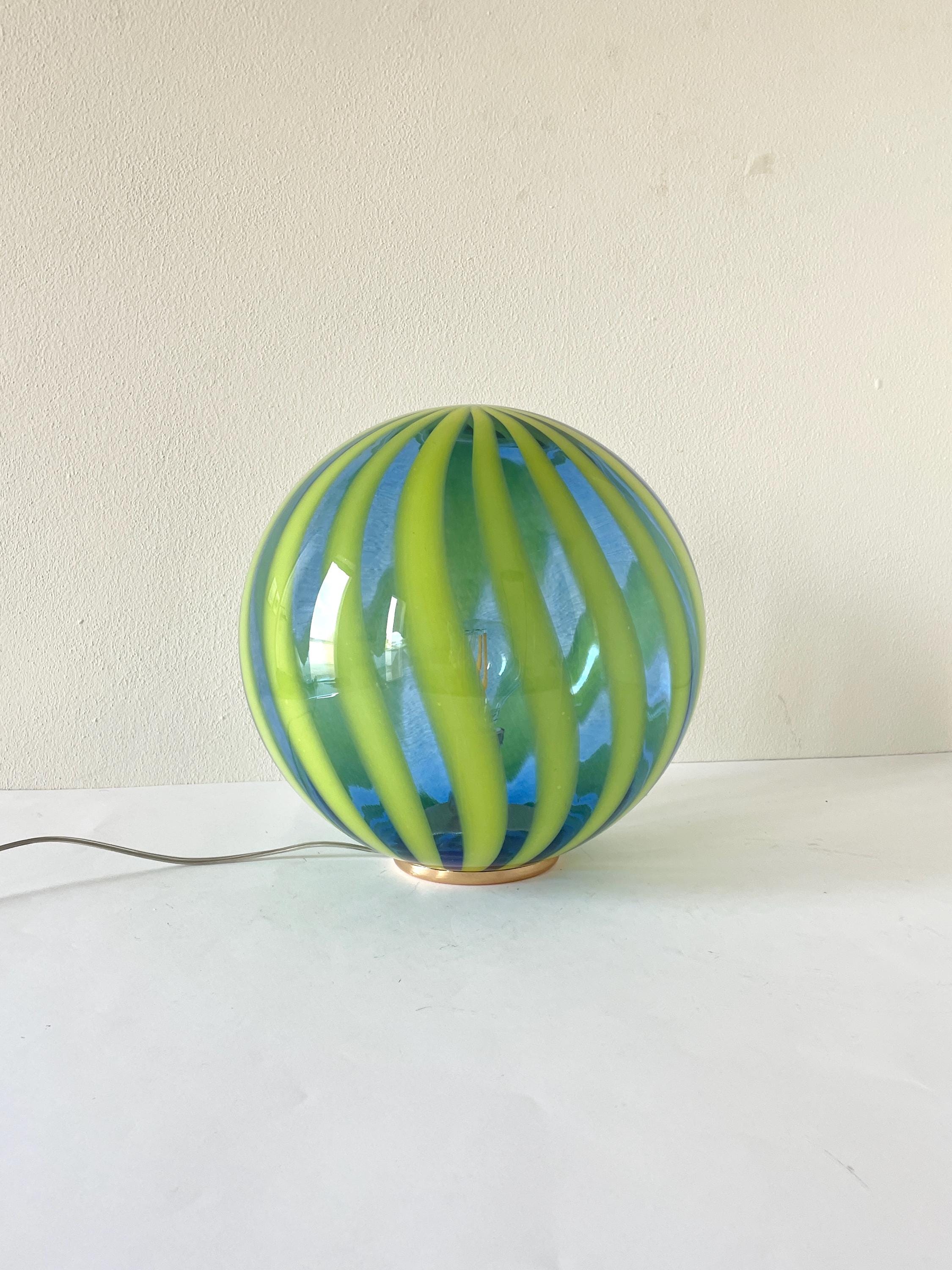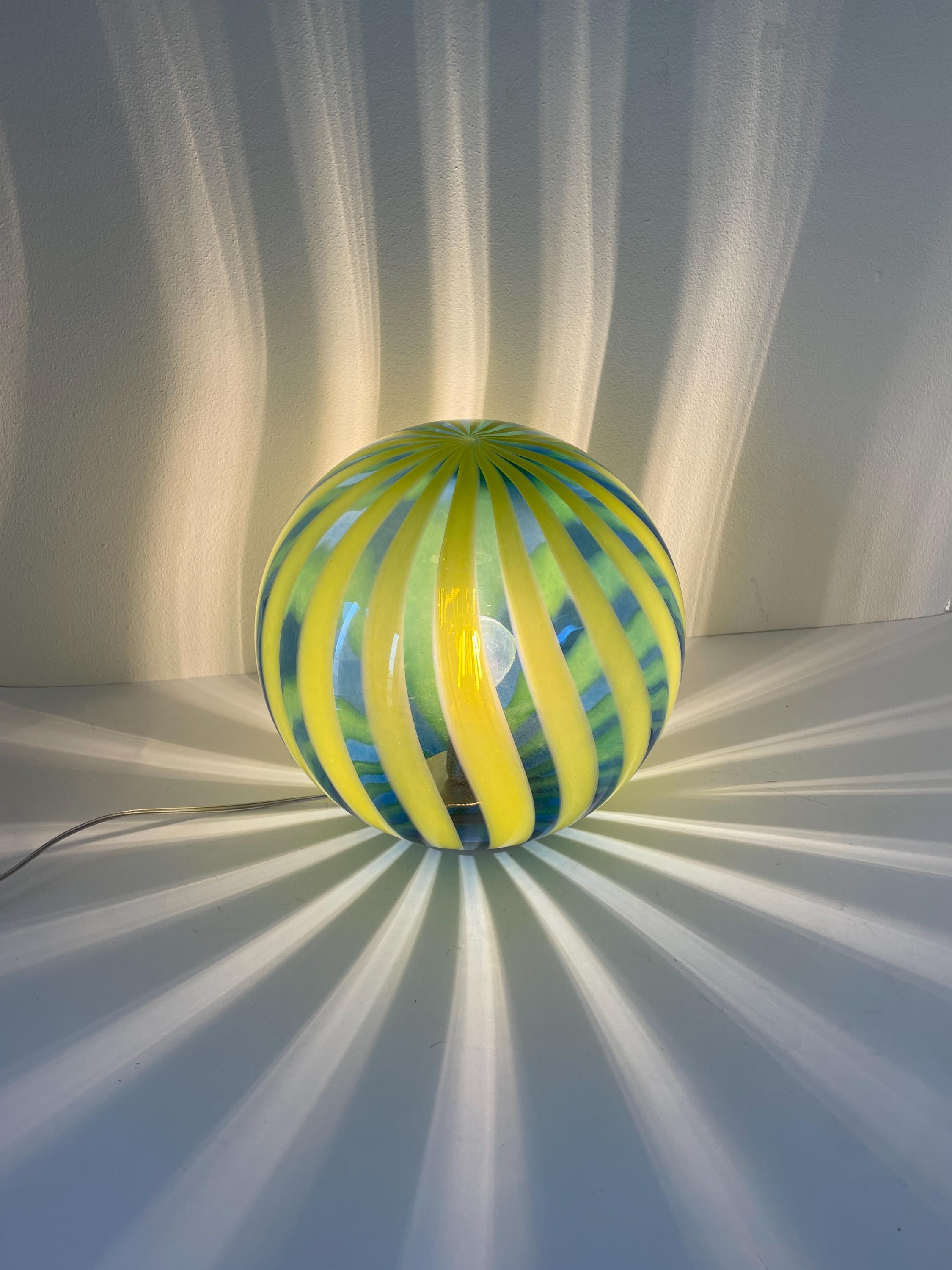 Lamps handcrafted by master glassmakers using the ancient Murano technique of working with colored glass rods. This model is available in a beautiful blue color with lemon yellow rods by Effetre Murano.