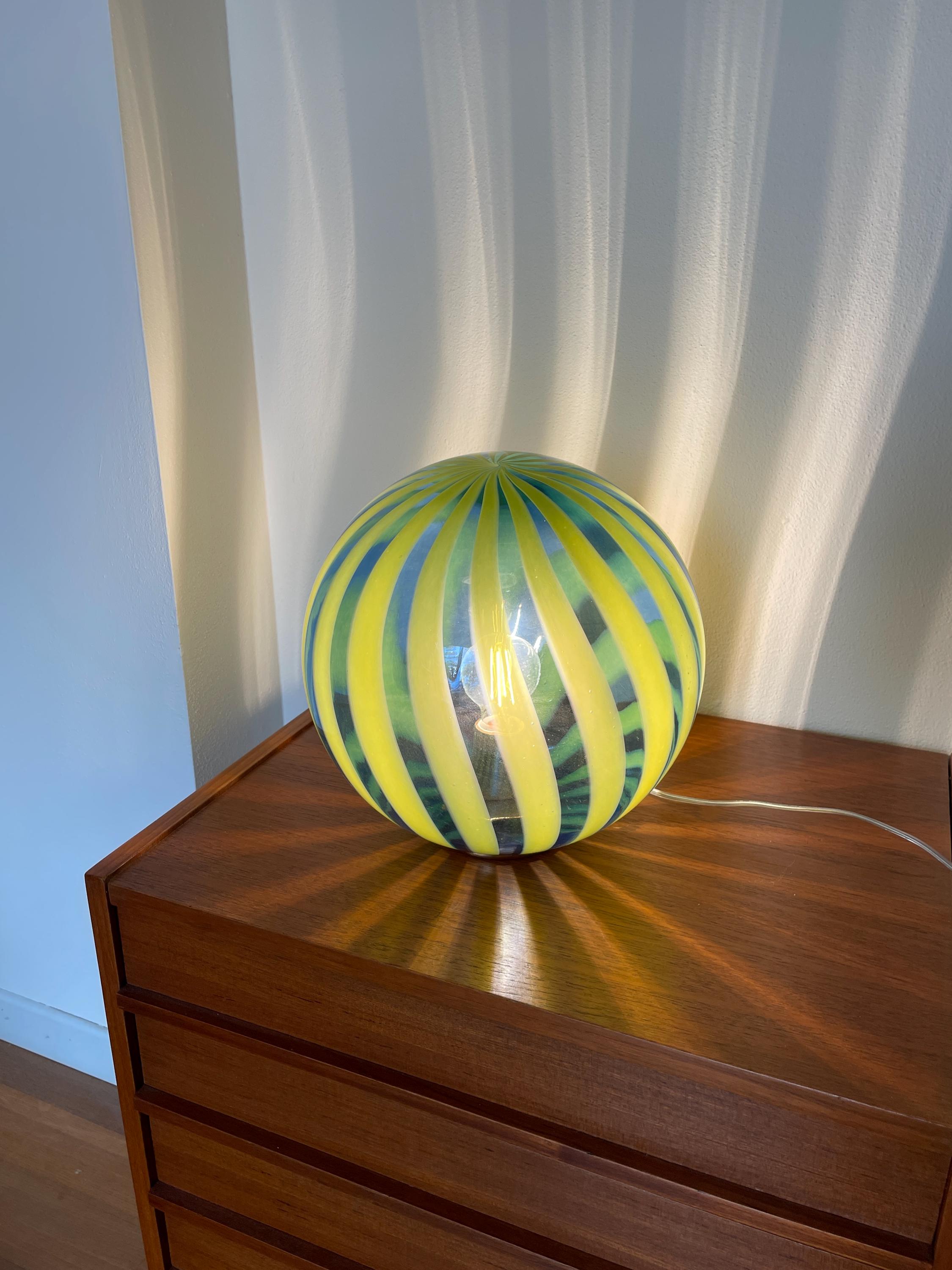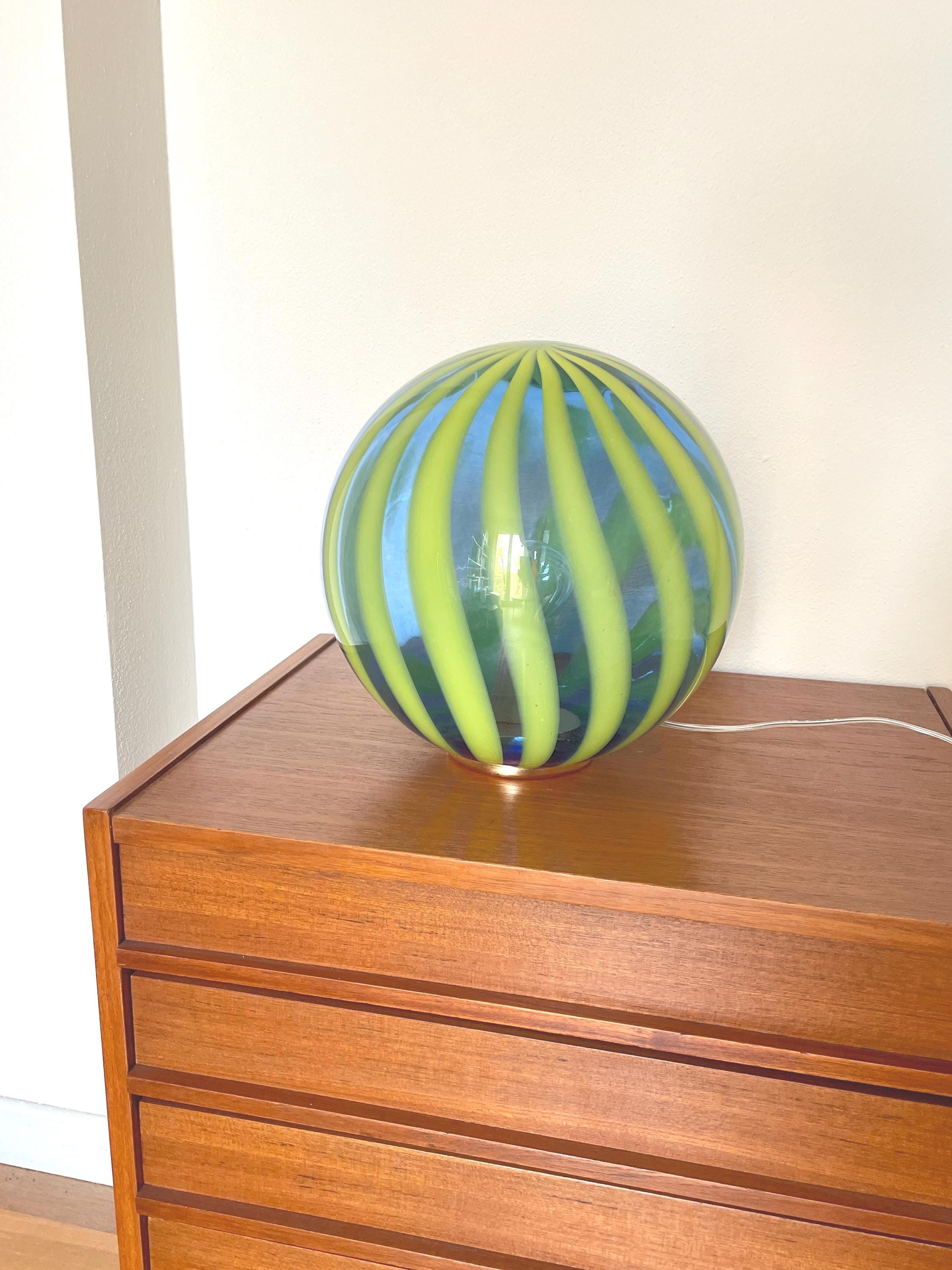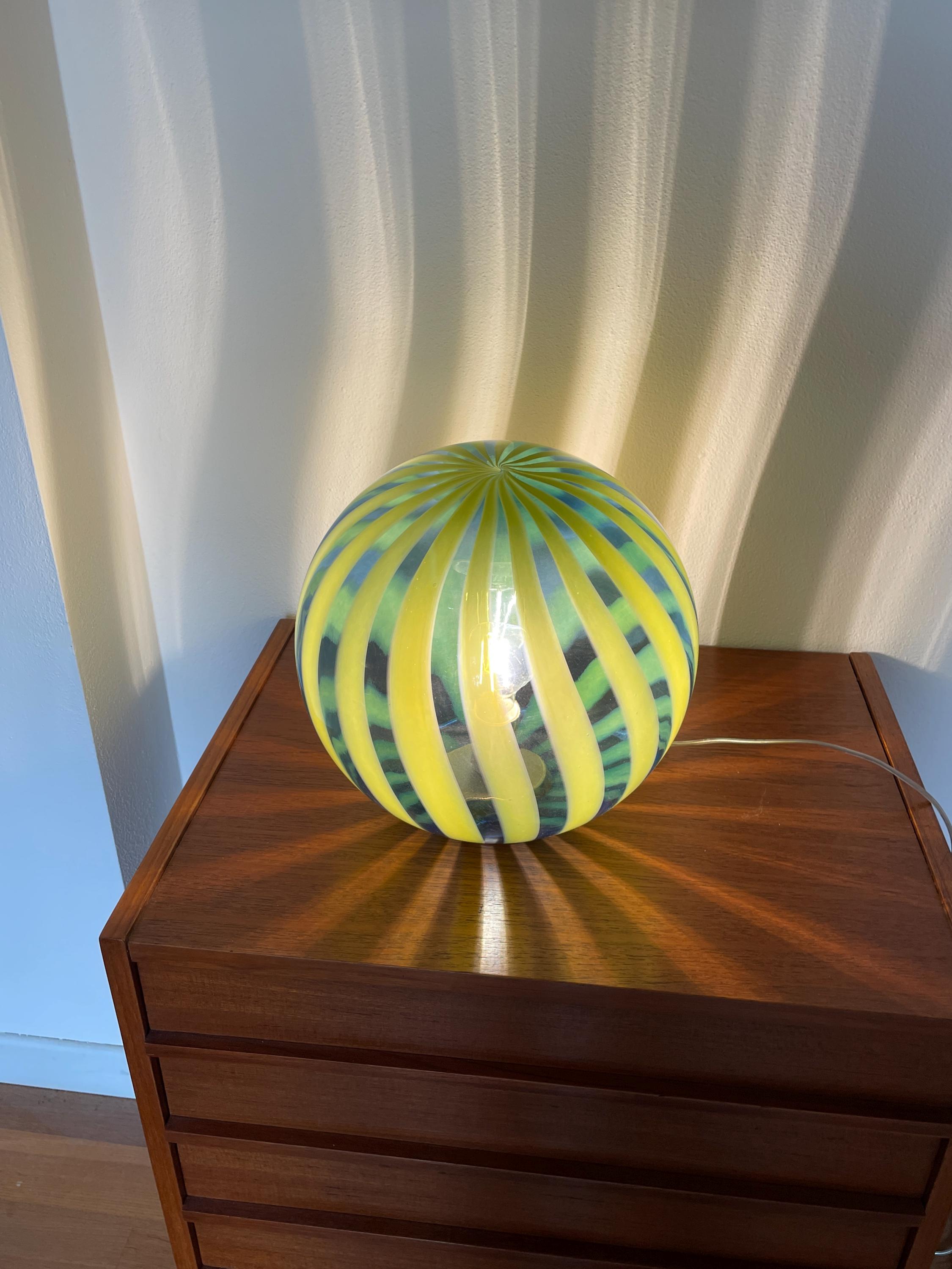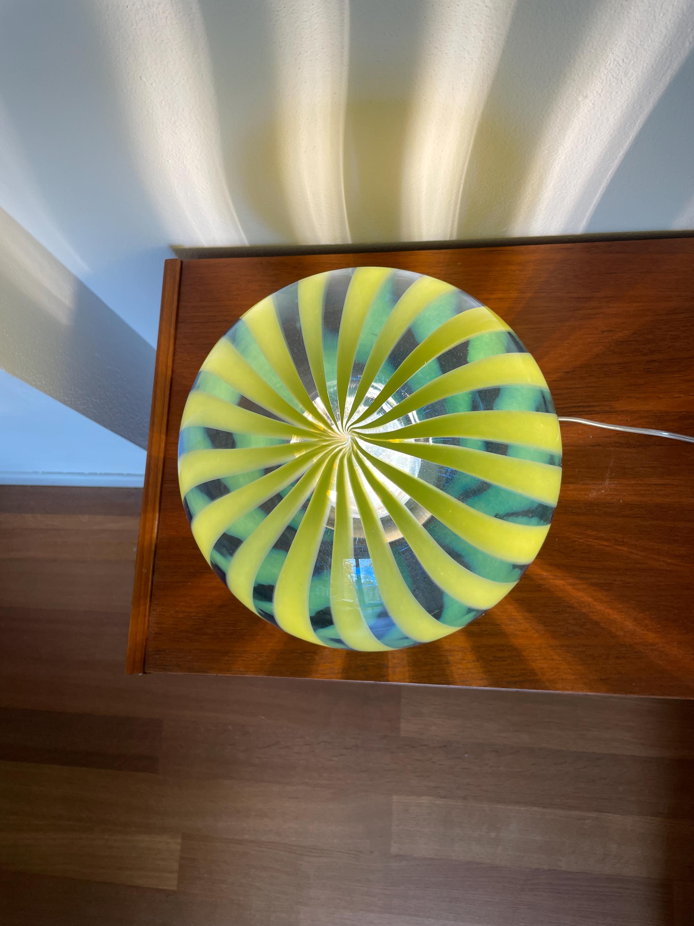 Lamps handcrafted by master glassmakers using the ancient Murano technique of working with colored glass rods. This model is available in a beautiful blue color with lemon yellow rods by Effetre Murano.
