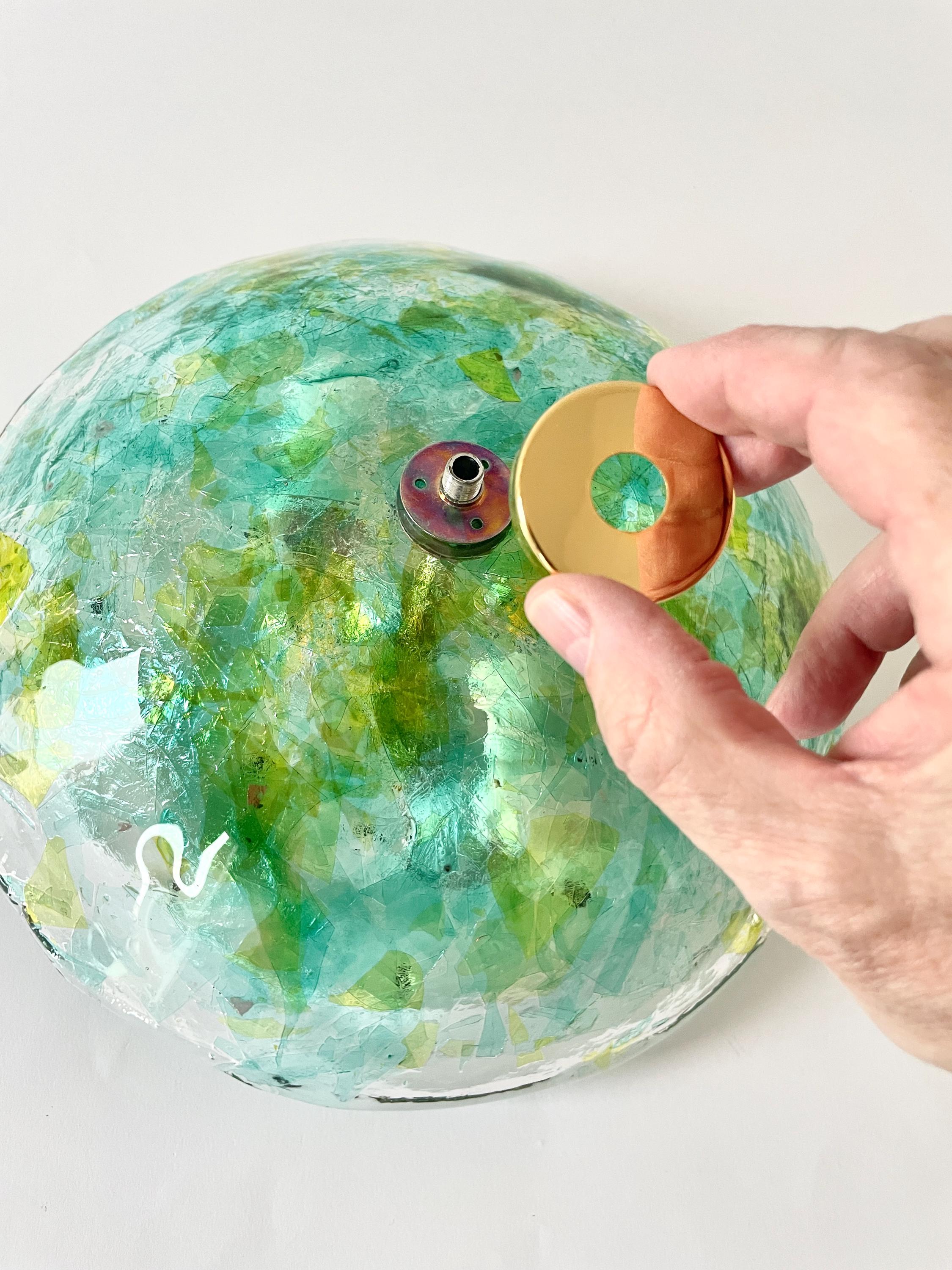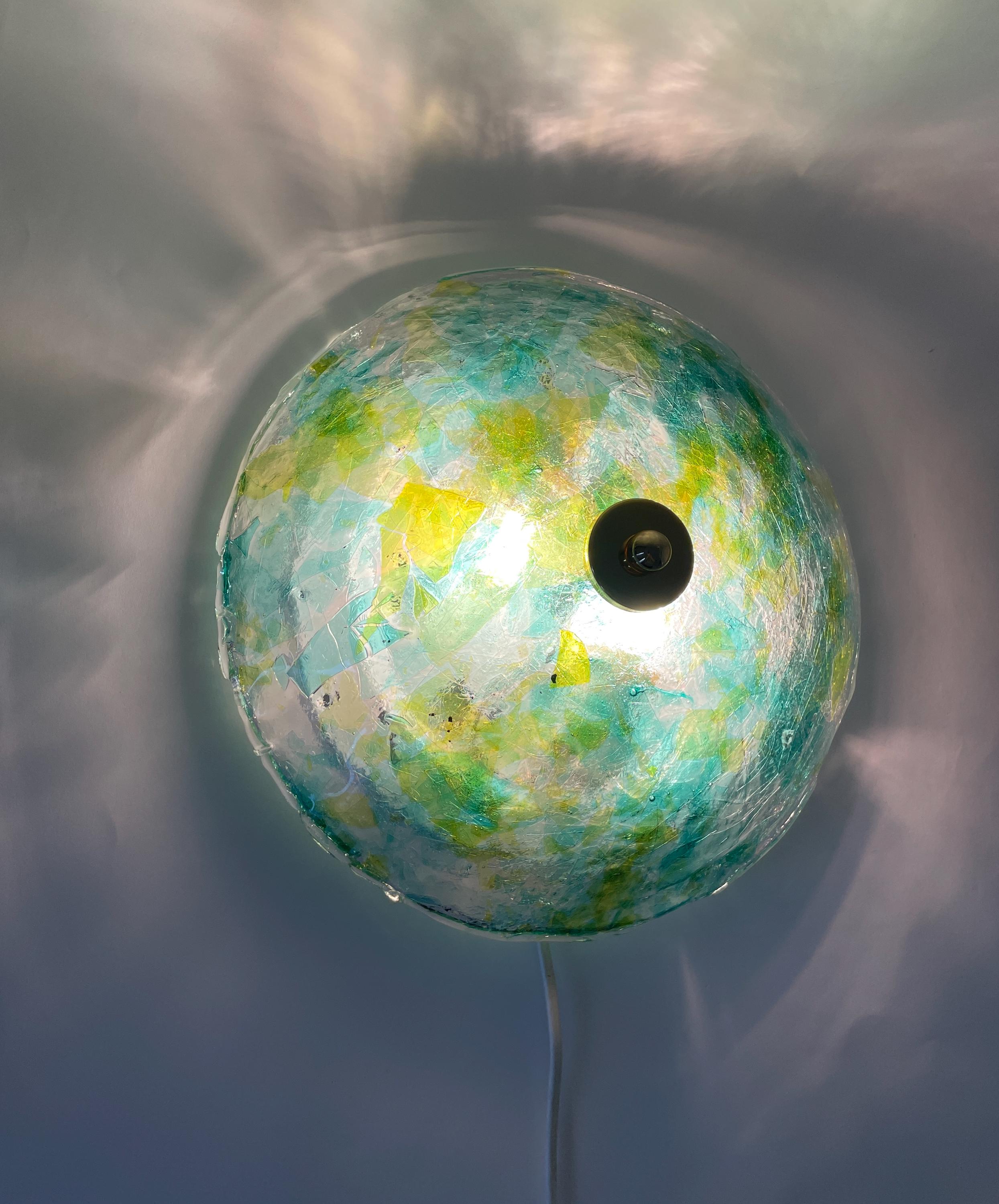 Beautifully crafted glass, all lamps are original and vintage, but new as they have never been used, system compatible with Europe and the USA, designed for 2 E27/E26 bulbs, not included.