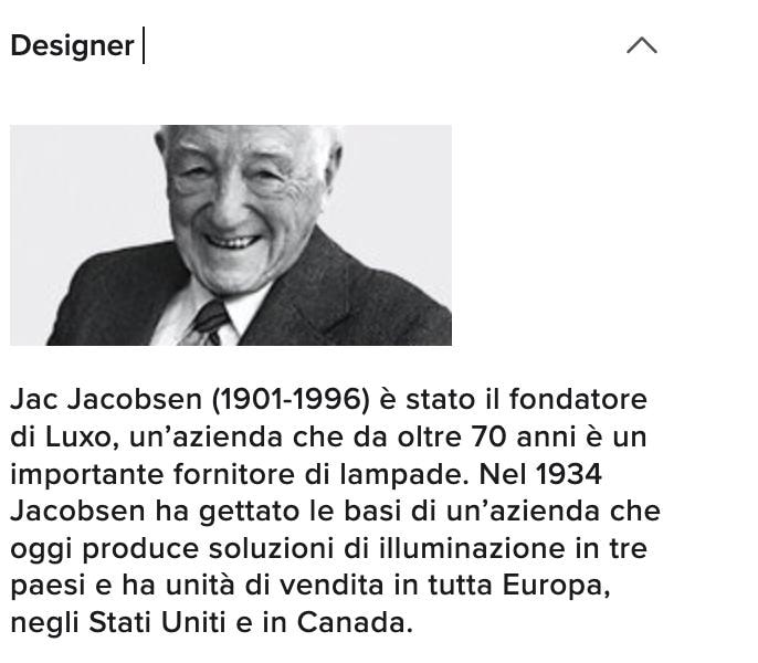 Jac Jacobsen (1901-1996) was the founder of Luxo, a company that has been a major supplier of lamps for over 70 years. In 1934, Jacobsen laid the foundation for a company that today produces lighting solutions in three countries and has sales offices throughout Europe, the United States, and Canada.