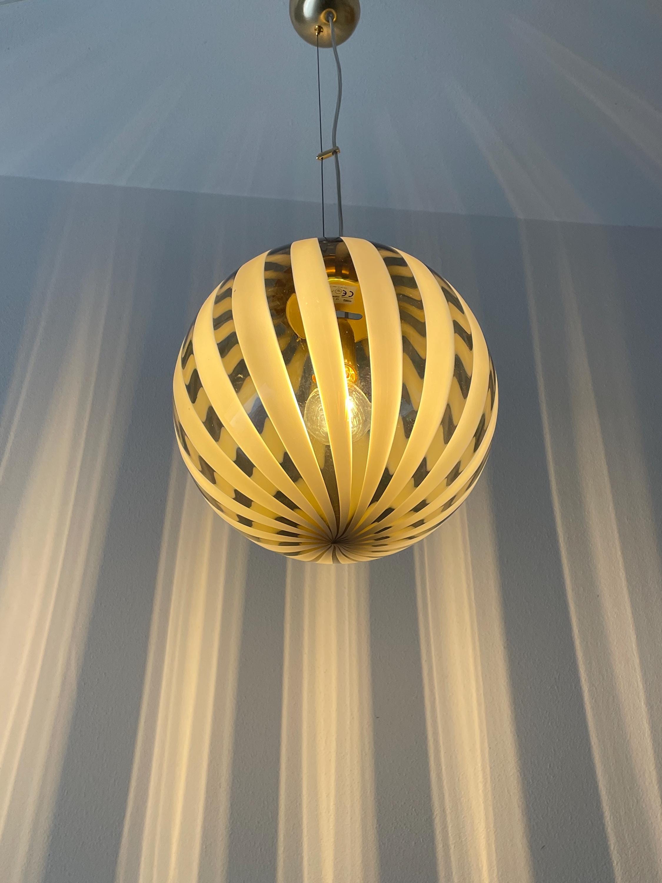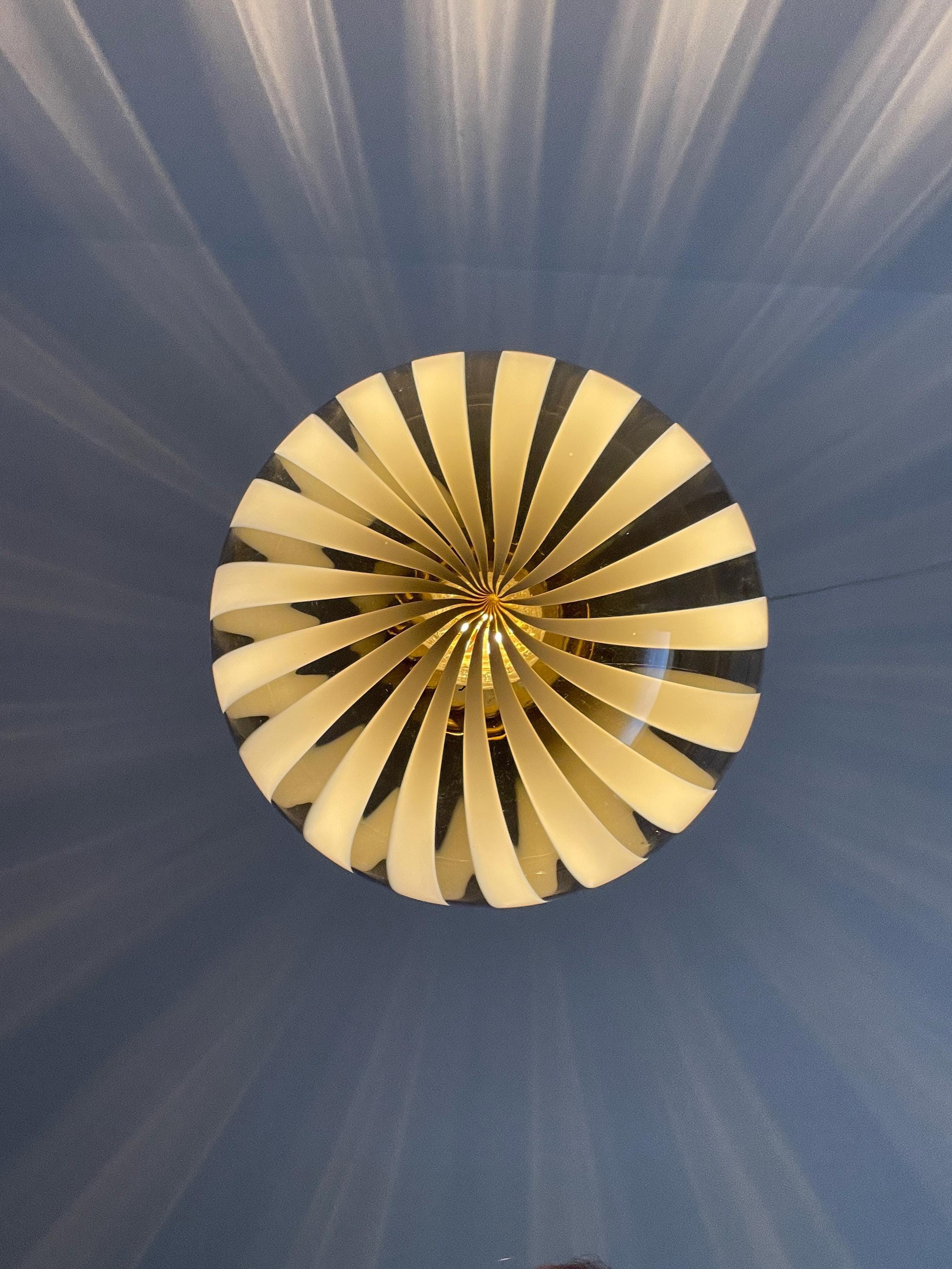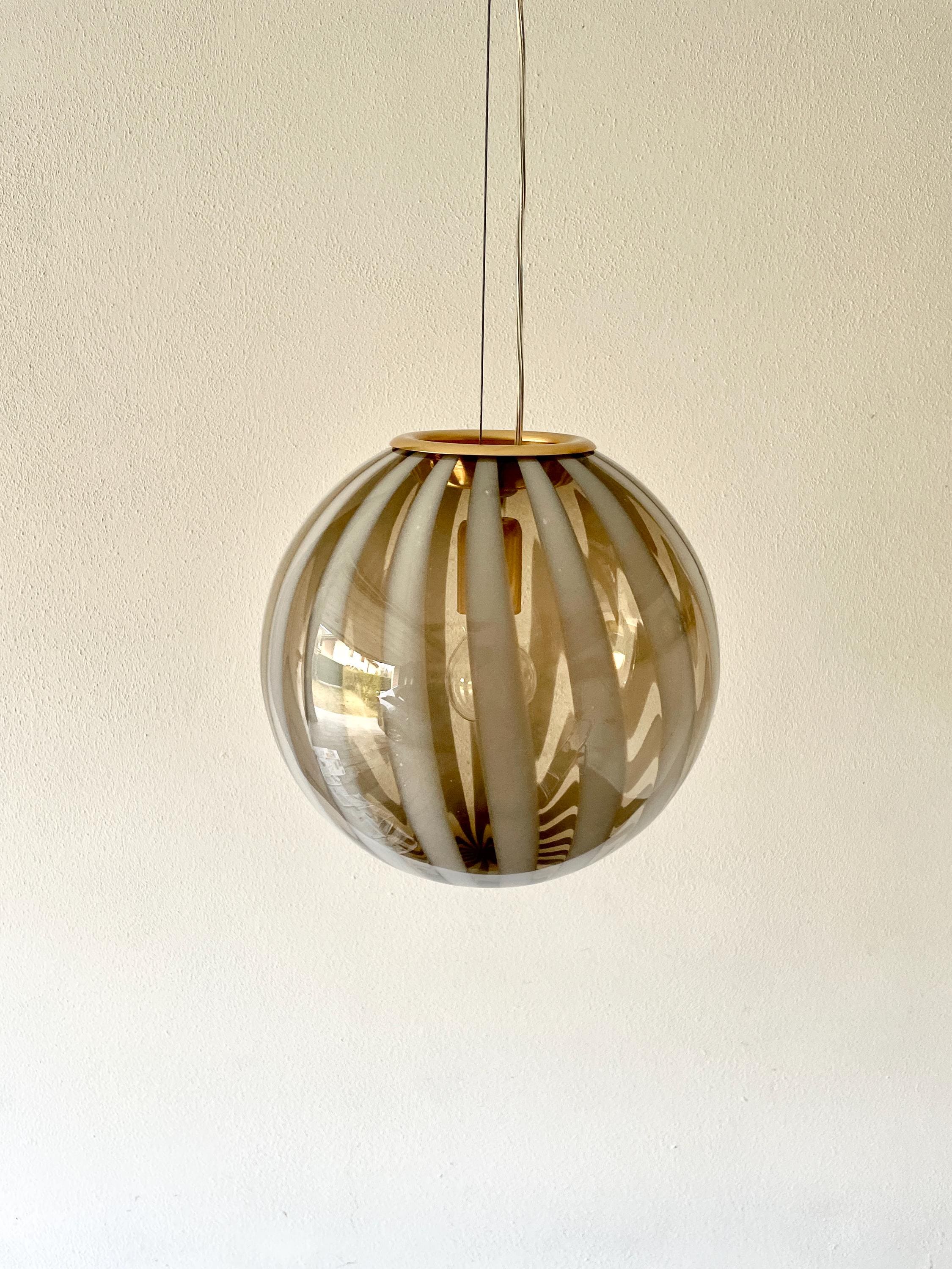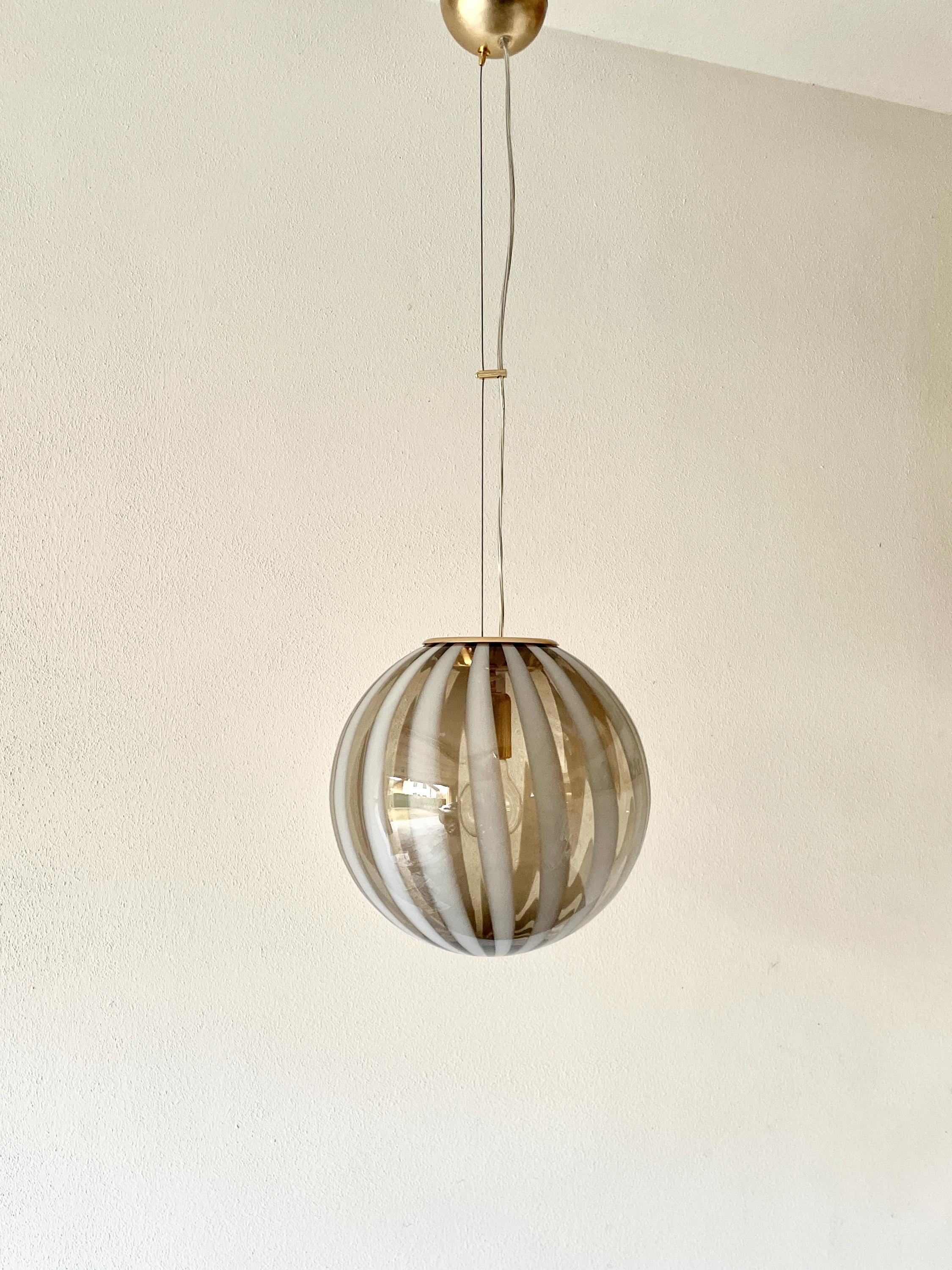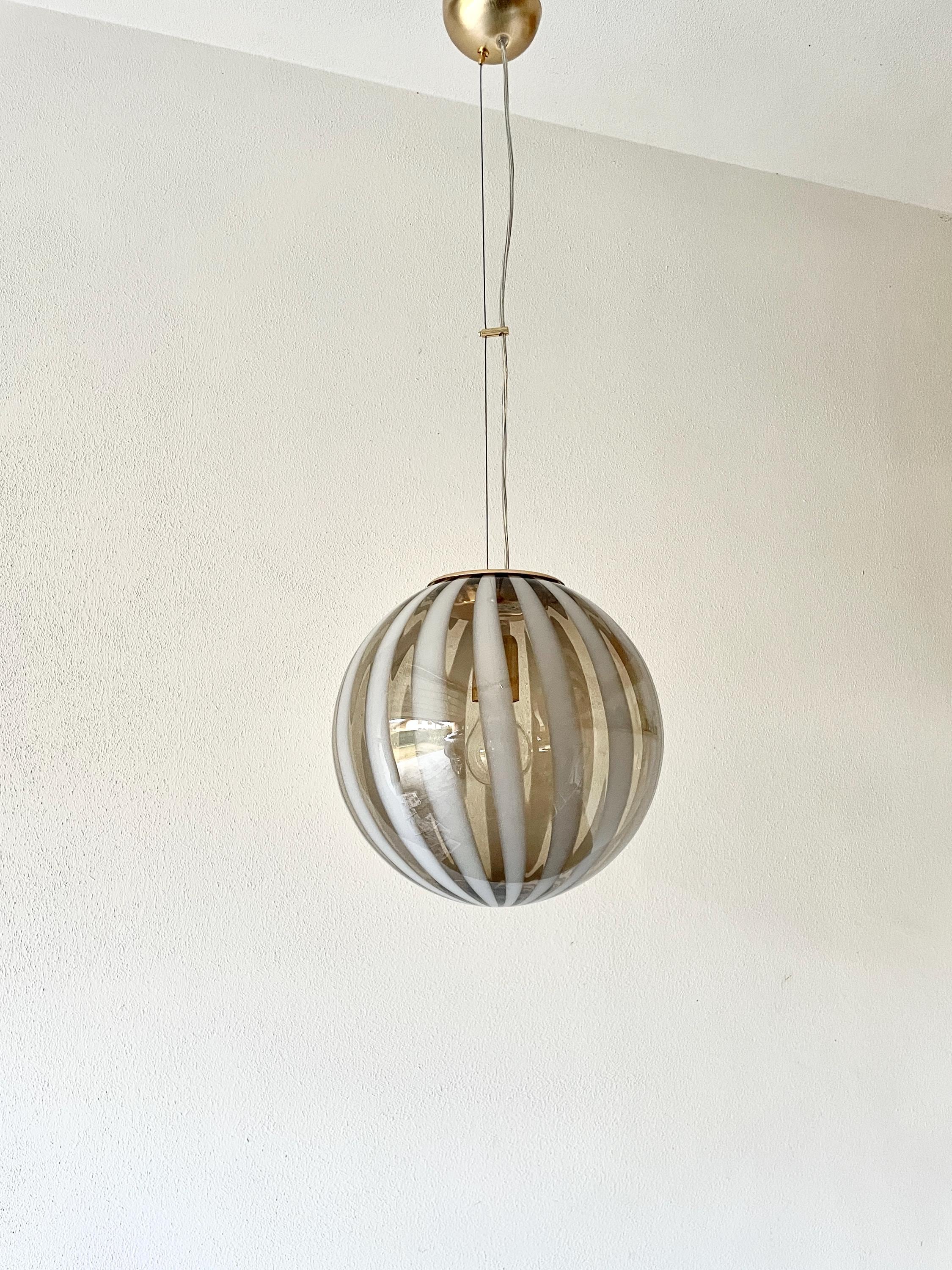 Lamps handcrafted by master glassmakers using the ancient Murano technique of working with colored glass rods. This model is available in a beautiful smoky color with white rods by Effetre Murano.