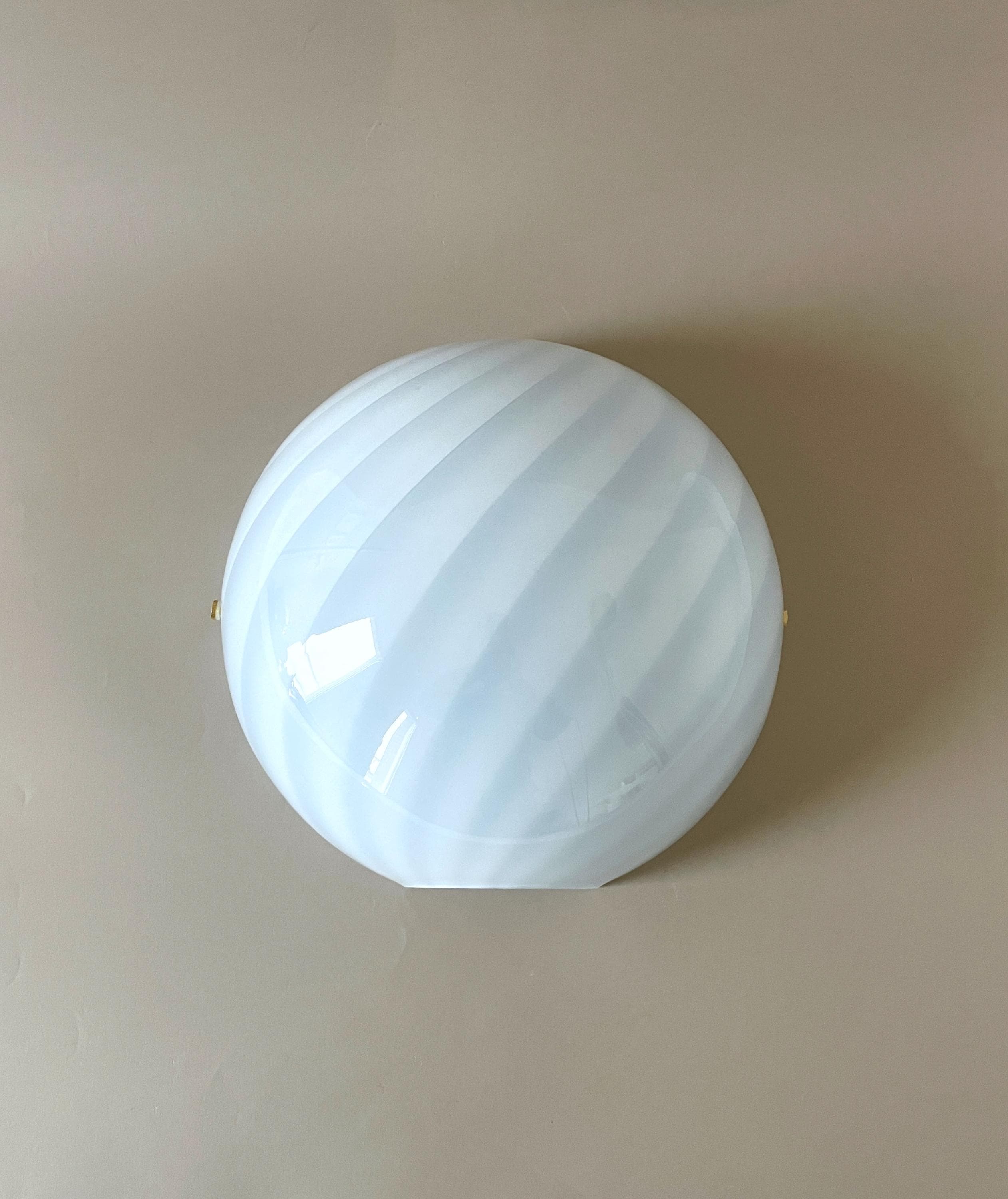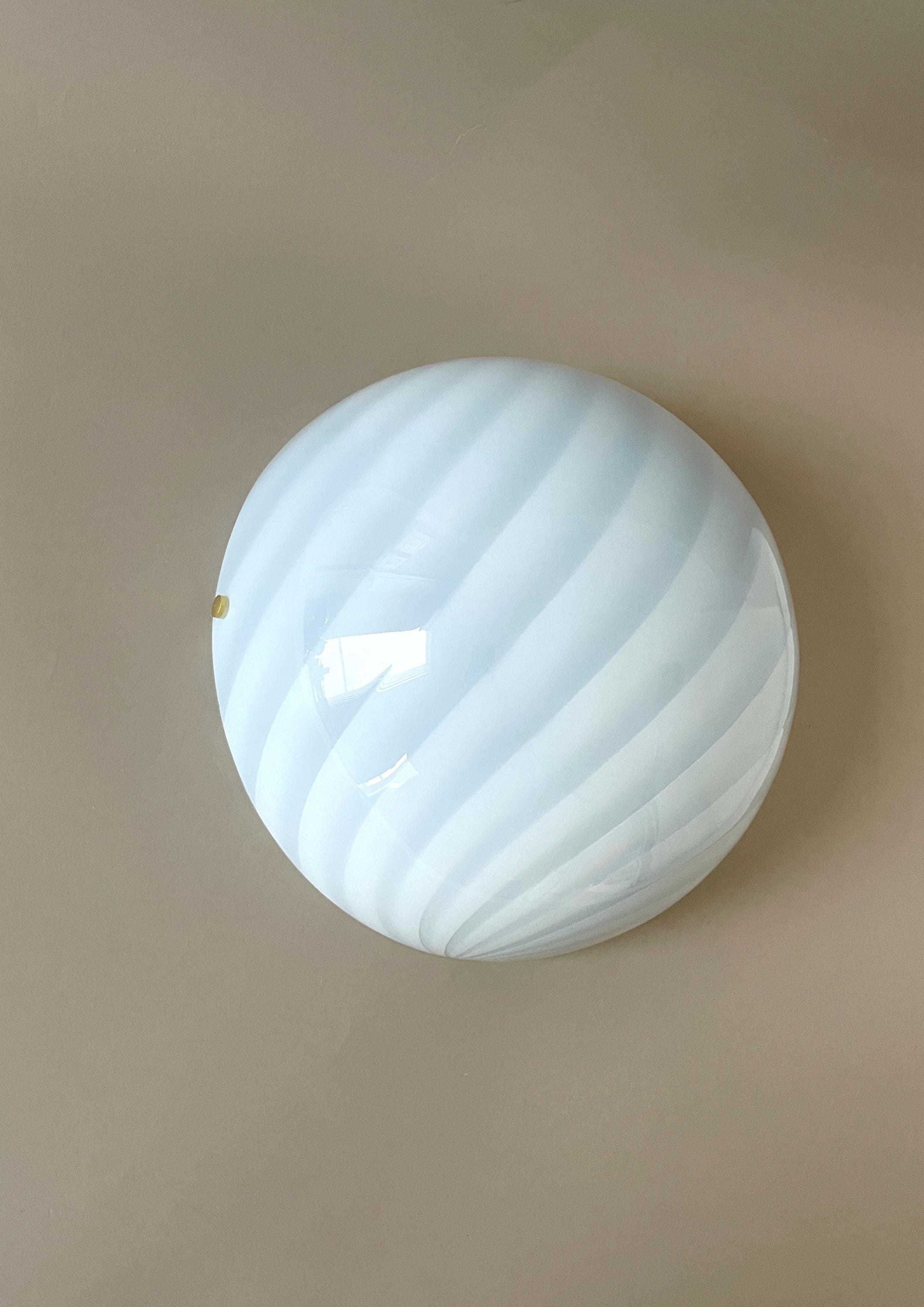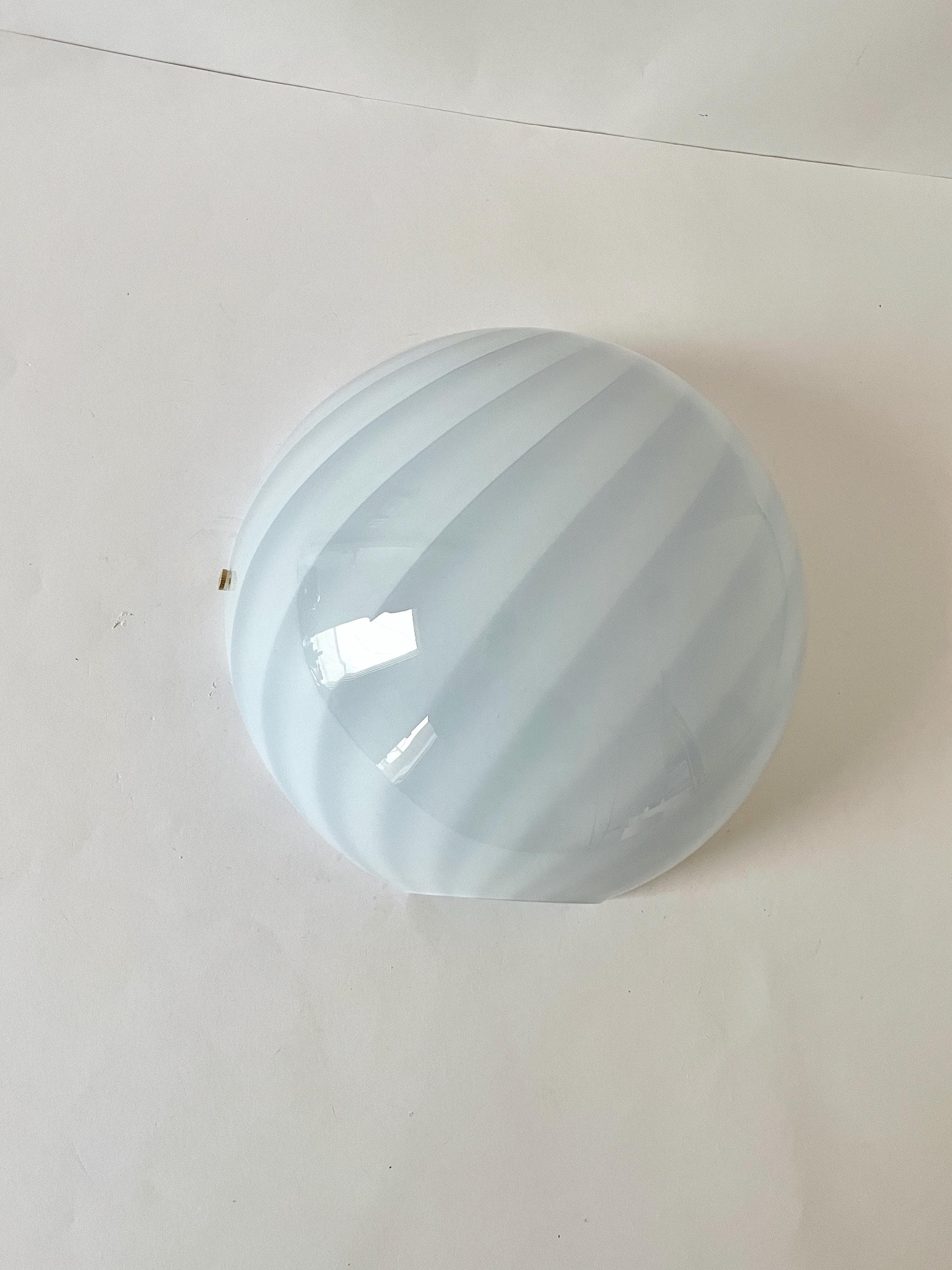Splendid LUNA PIENA wall lamp (Cloud Blue) in mouth-blown Murano glass, using the ancient Murano technique of twisted "rigadin" (spiral), beautiful cased glass, cloud blue on the outside and white on the inside, the frame has a white finish with gold screws.