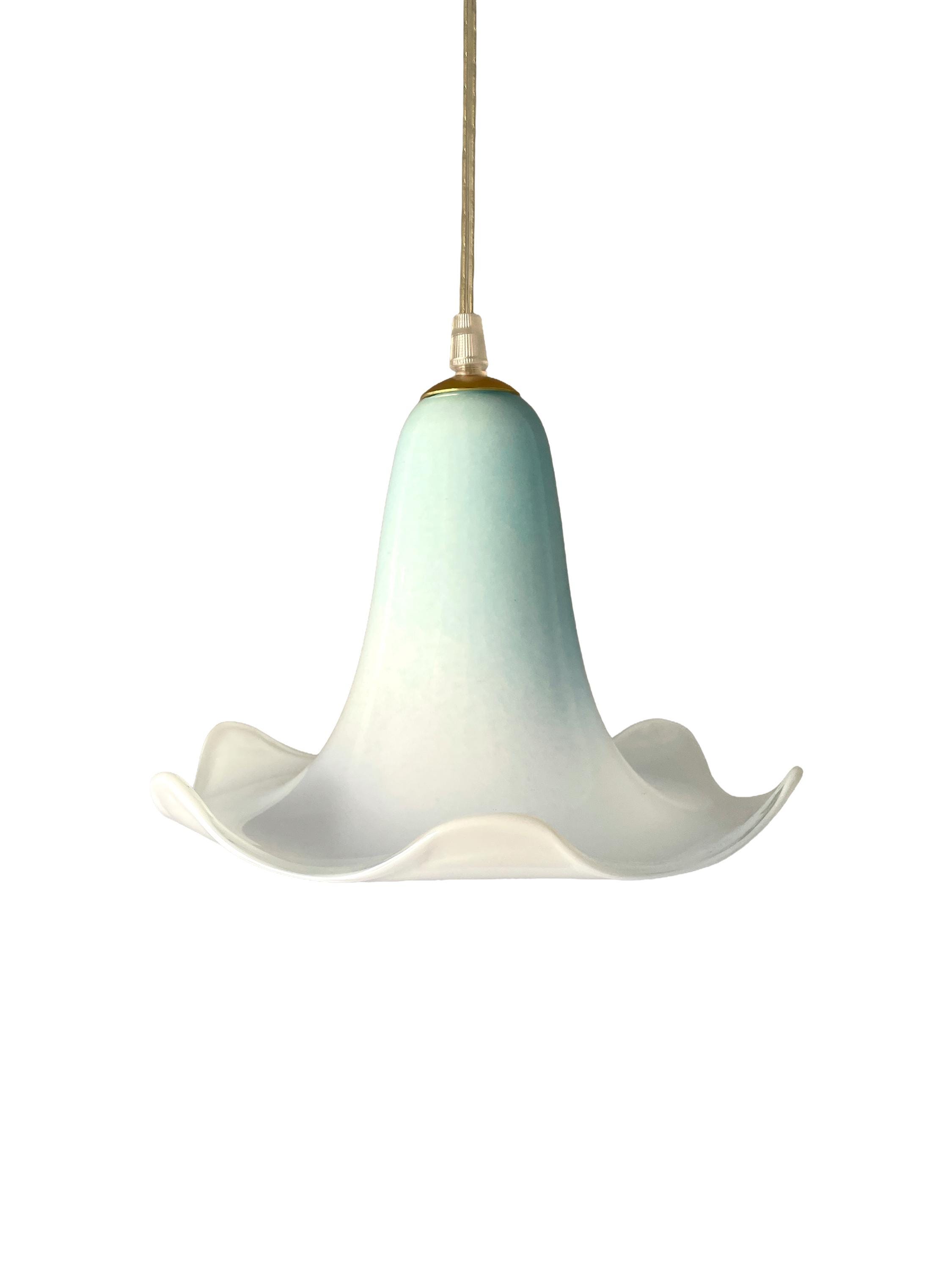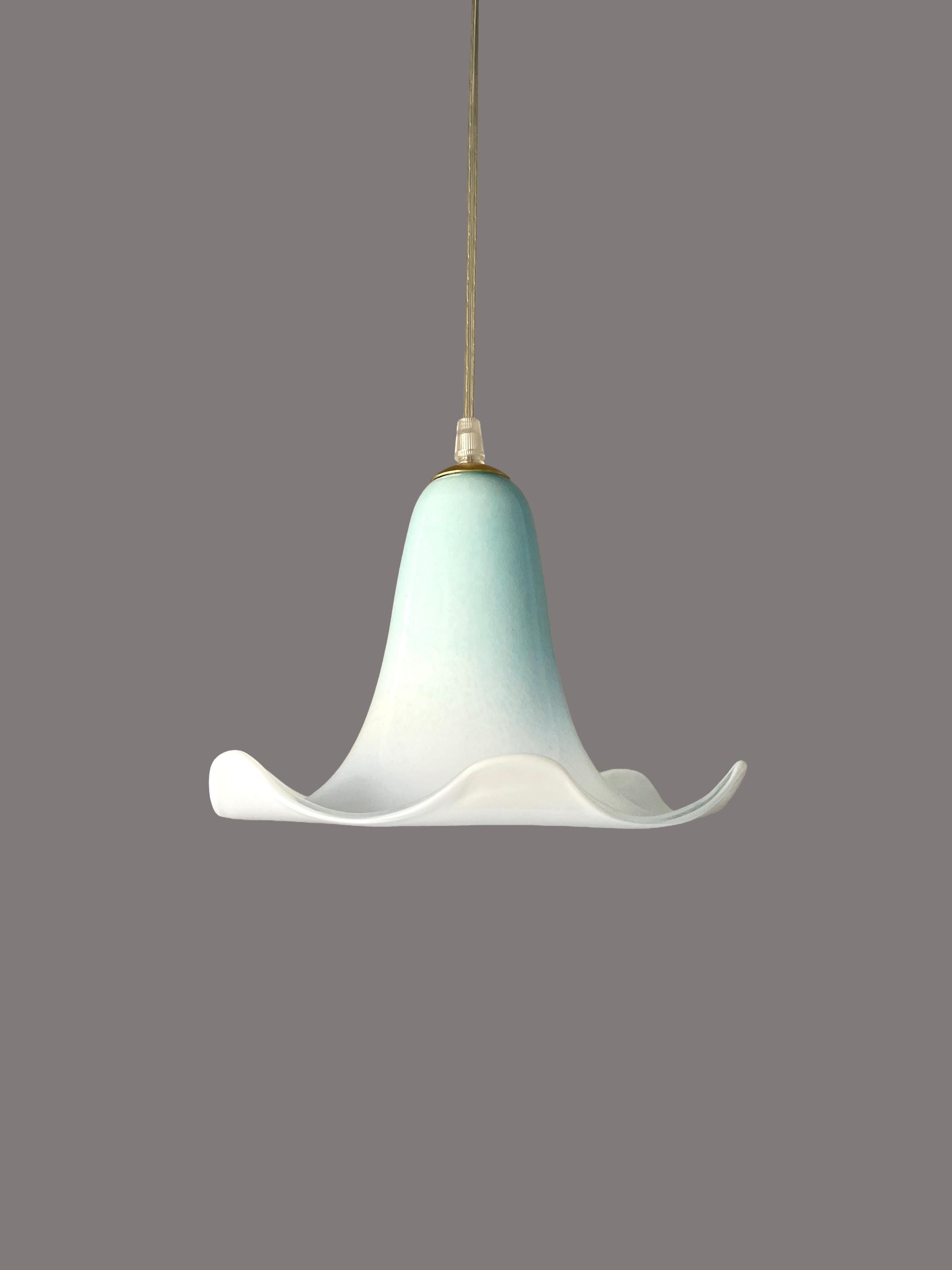 The beautiful Murano glass, shaded from blue to white, expertly mouth-blown by the master glassmaker, has a satin gold metal frame.