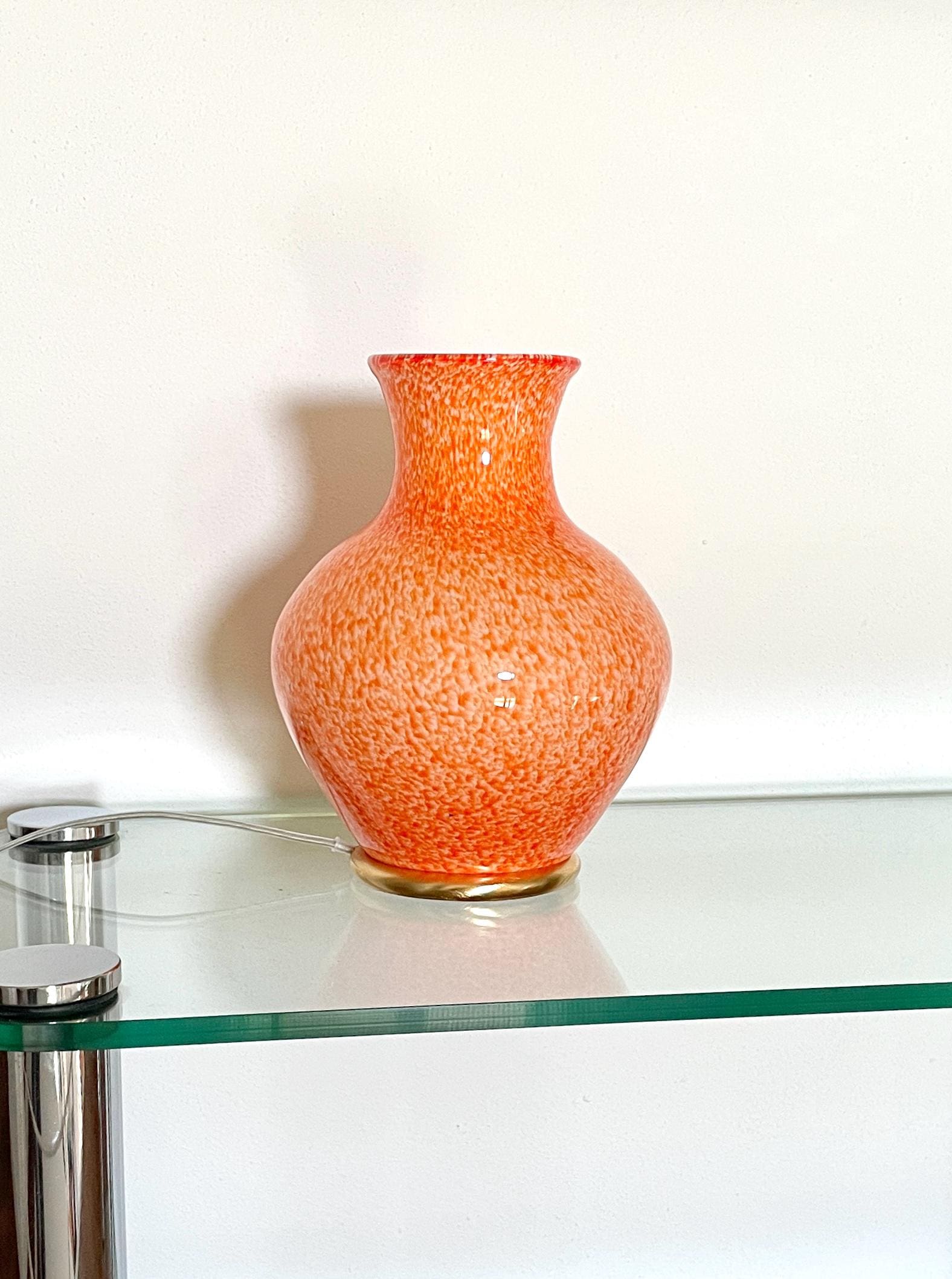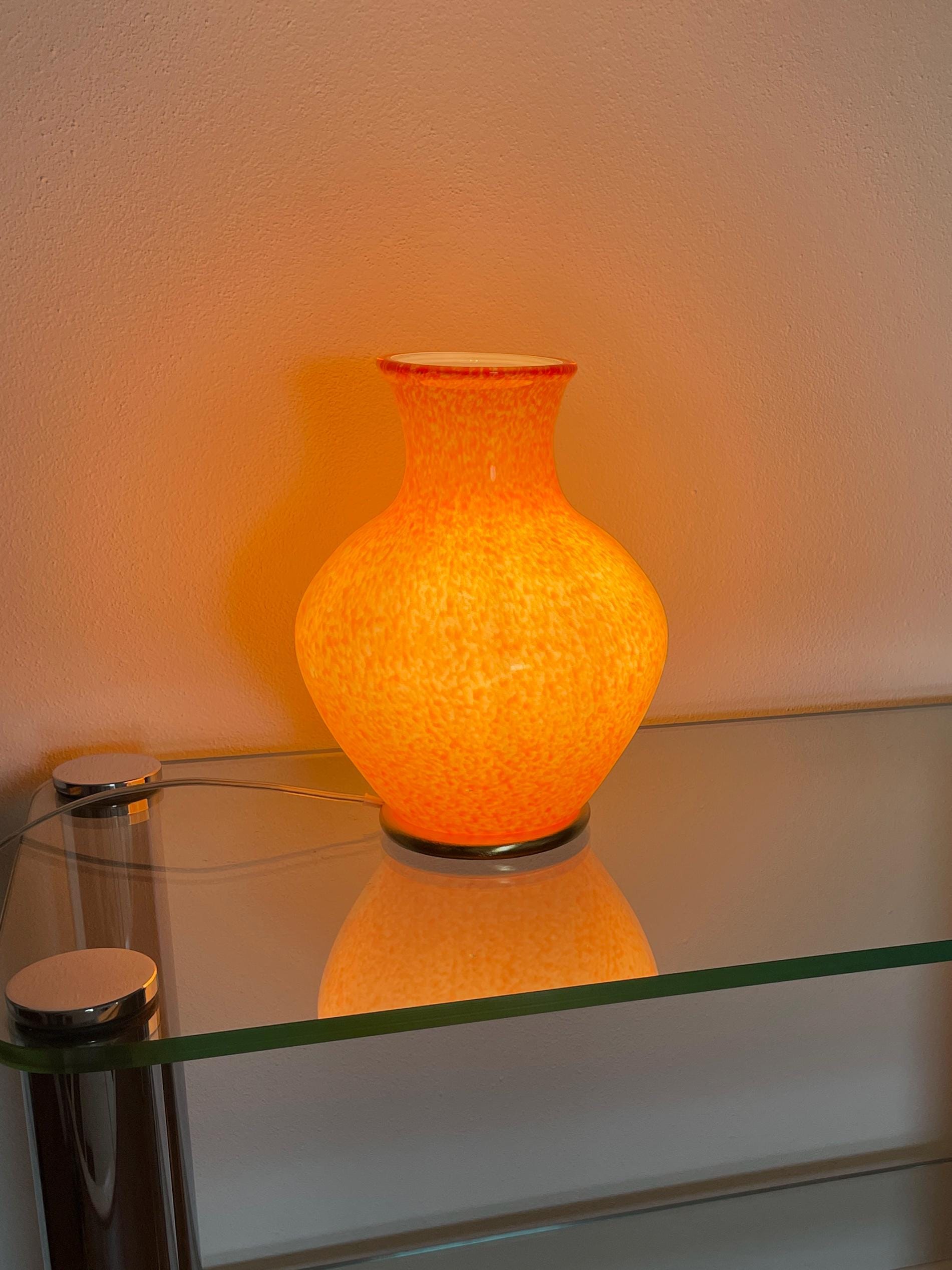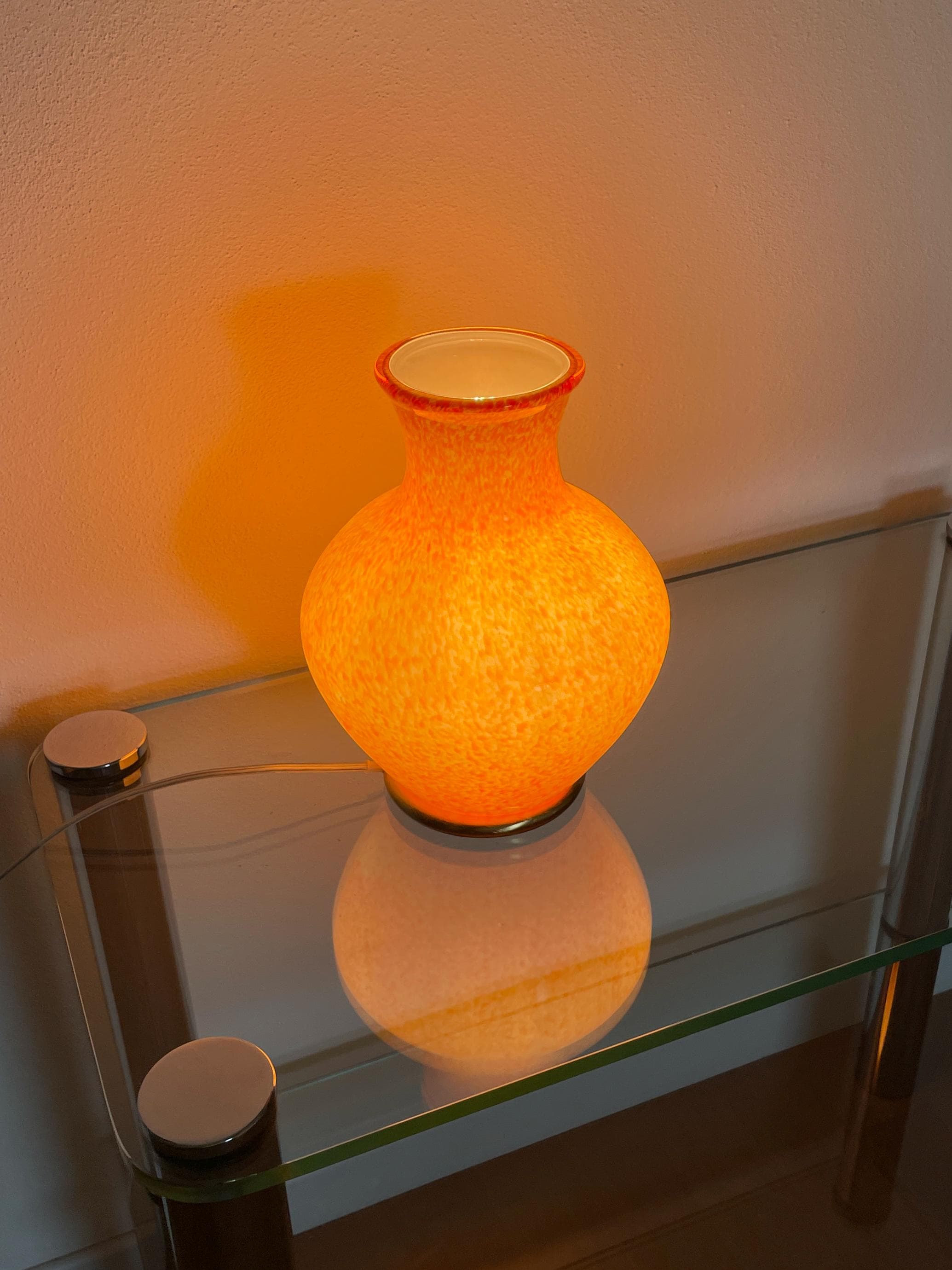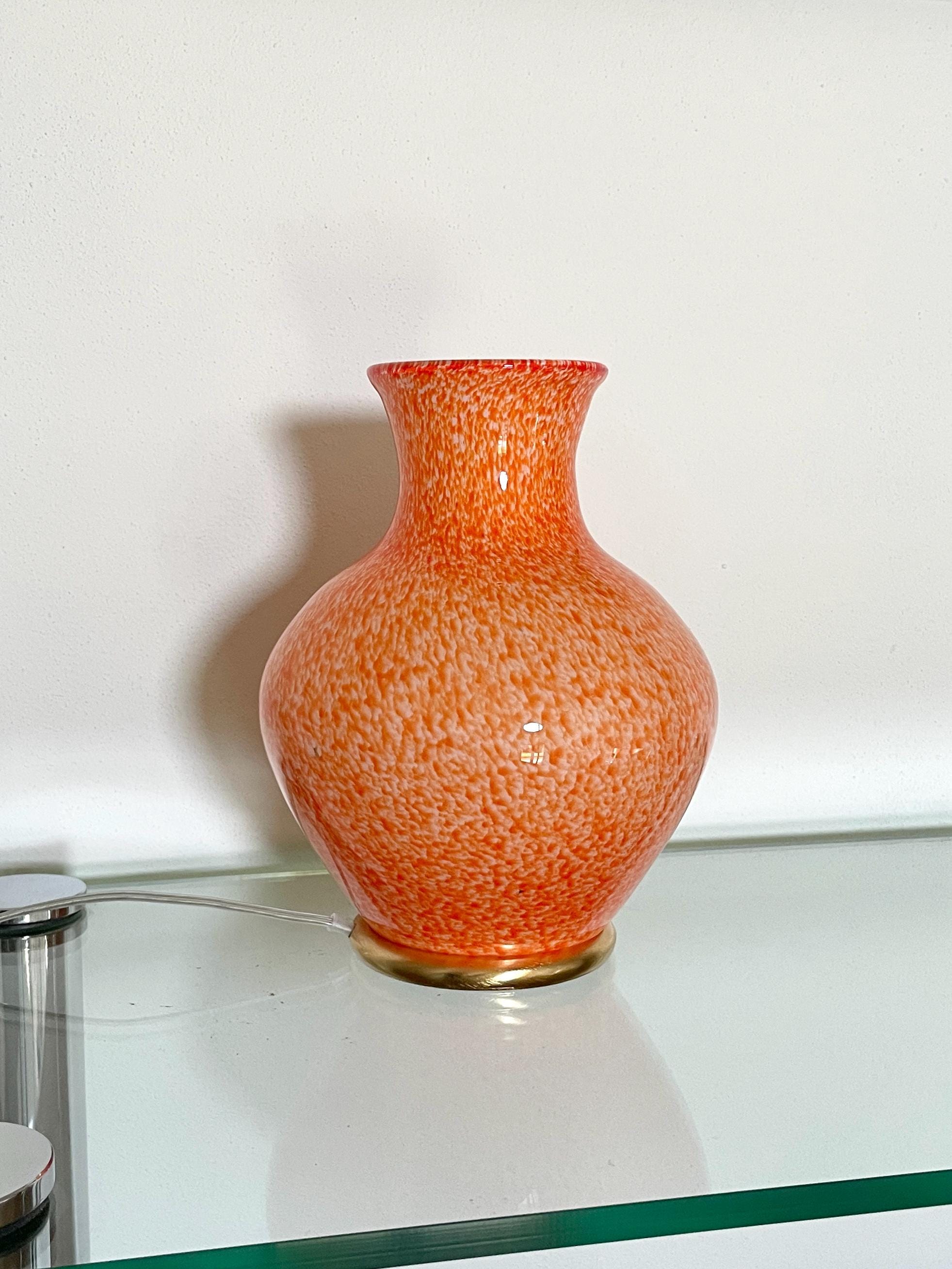 Vintage Murano table lamp with beautiful orange mouth-blown glass.