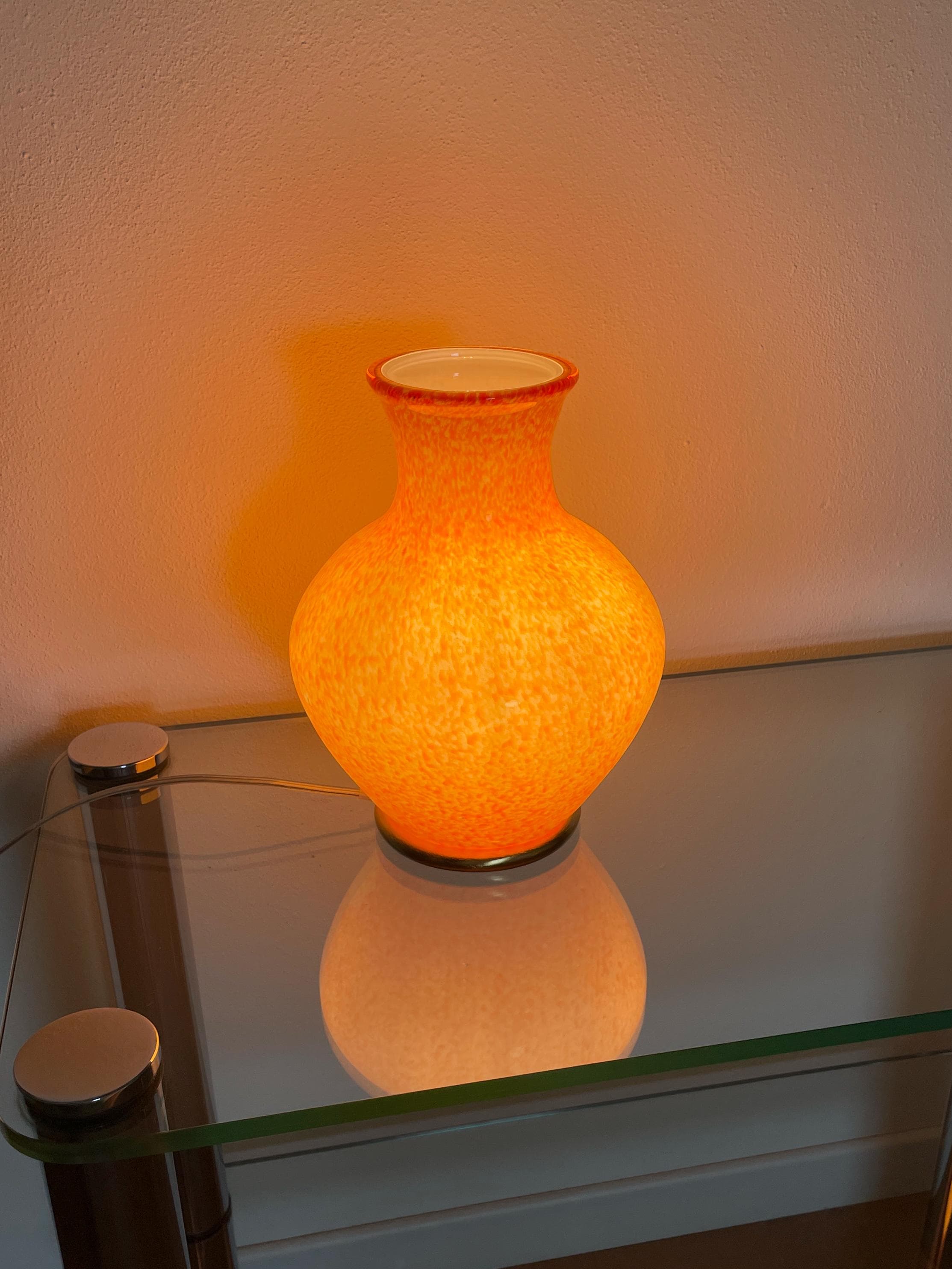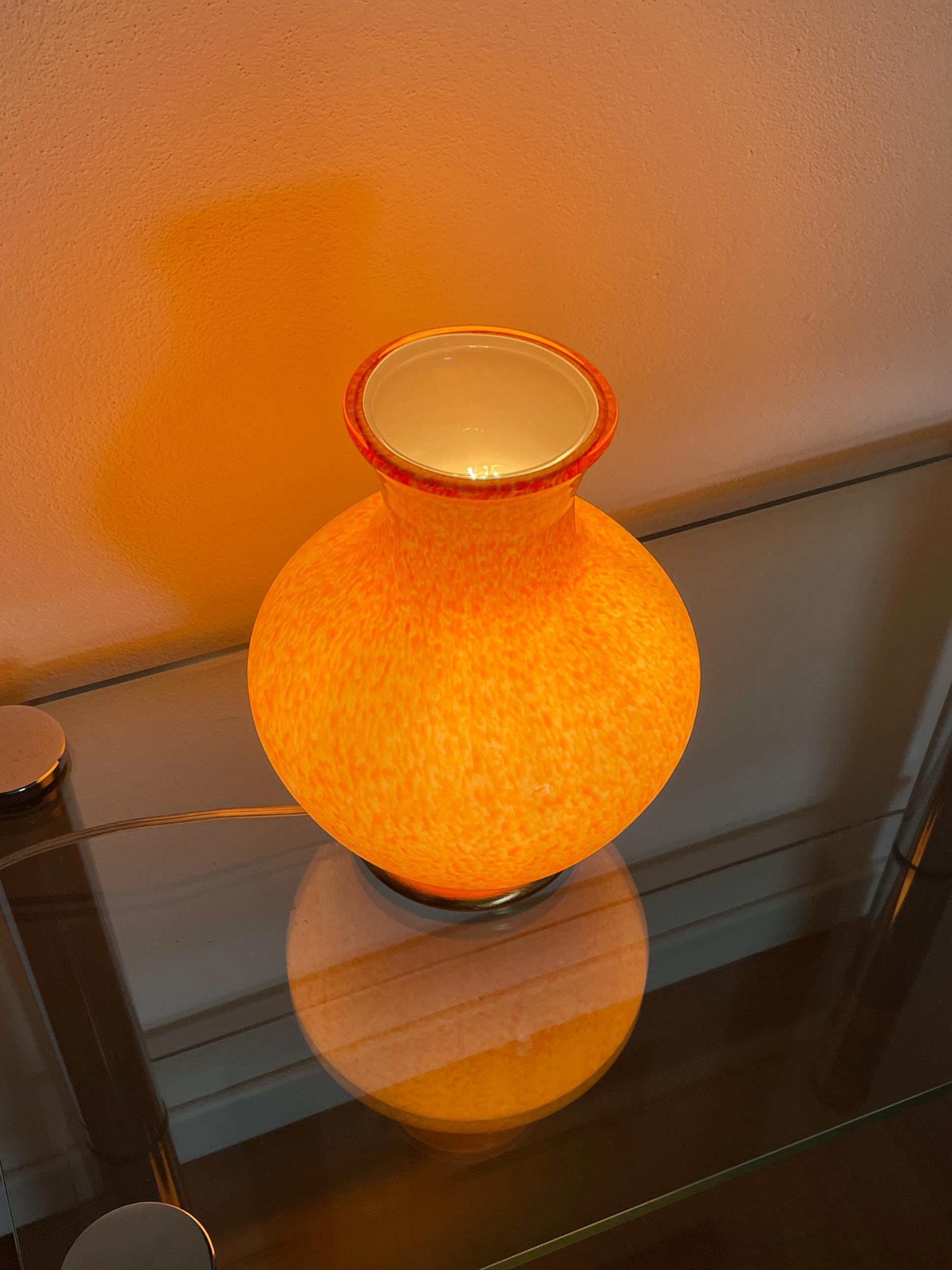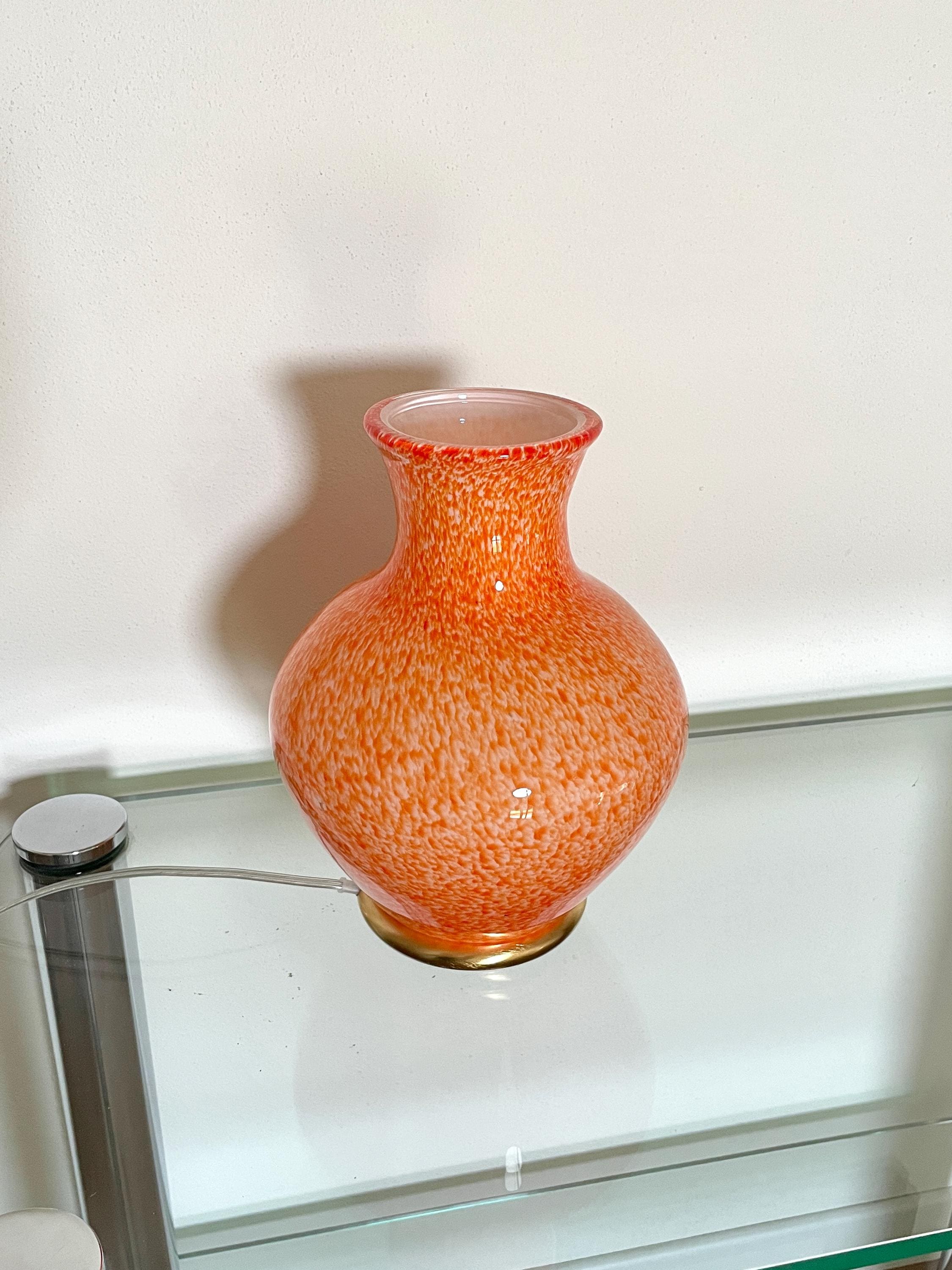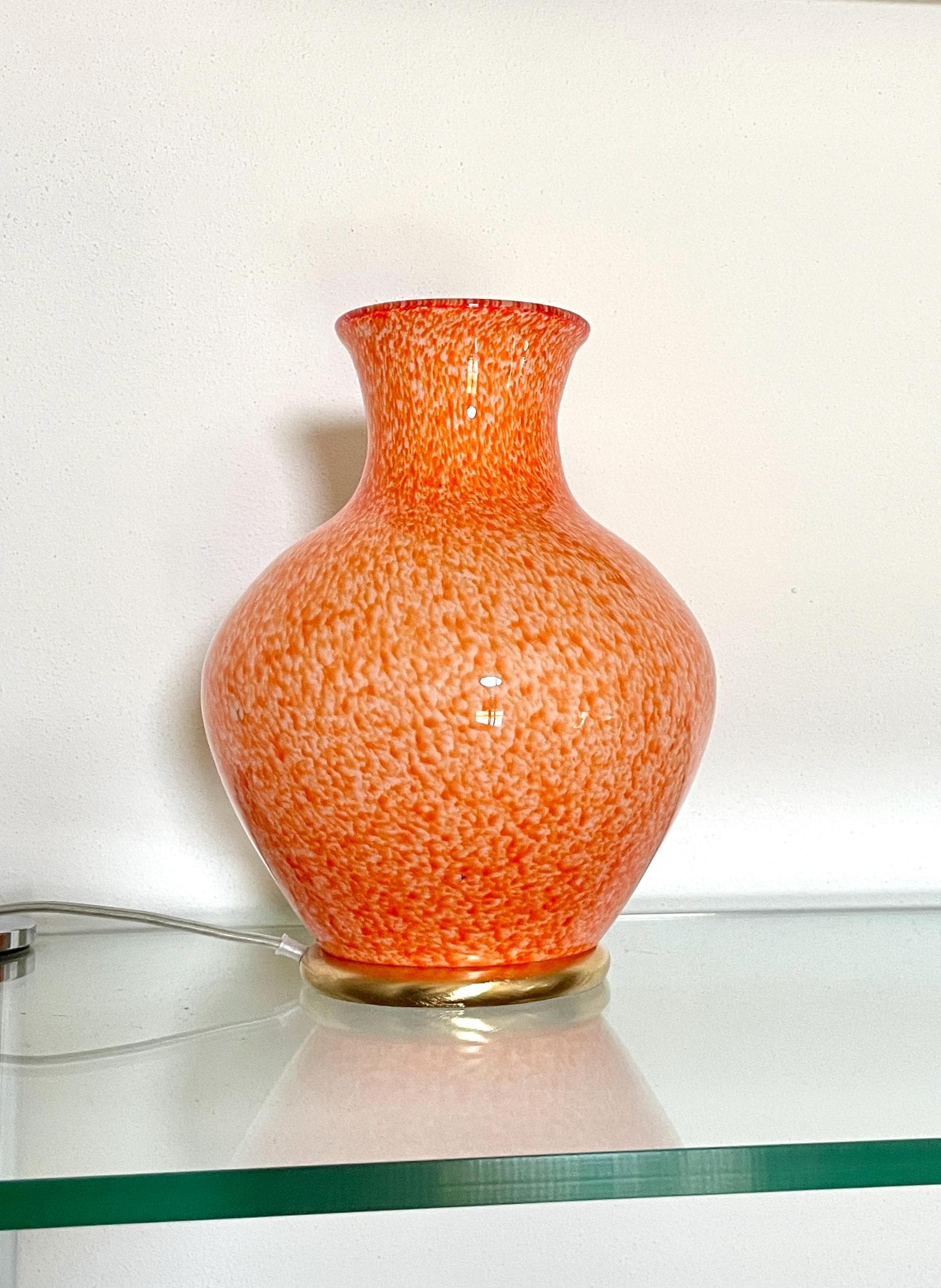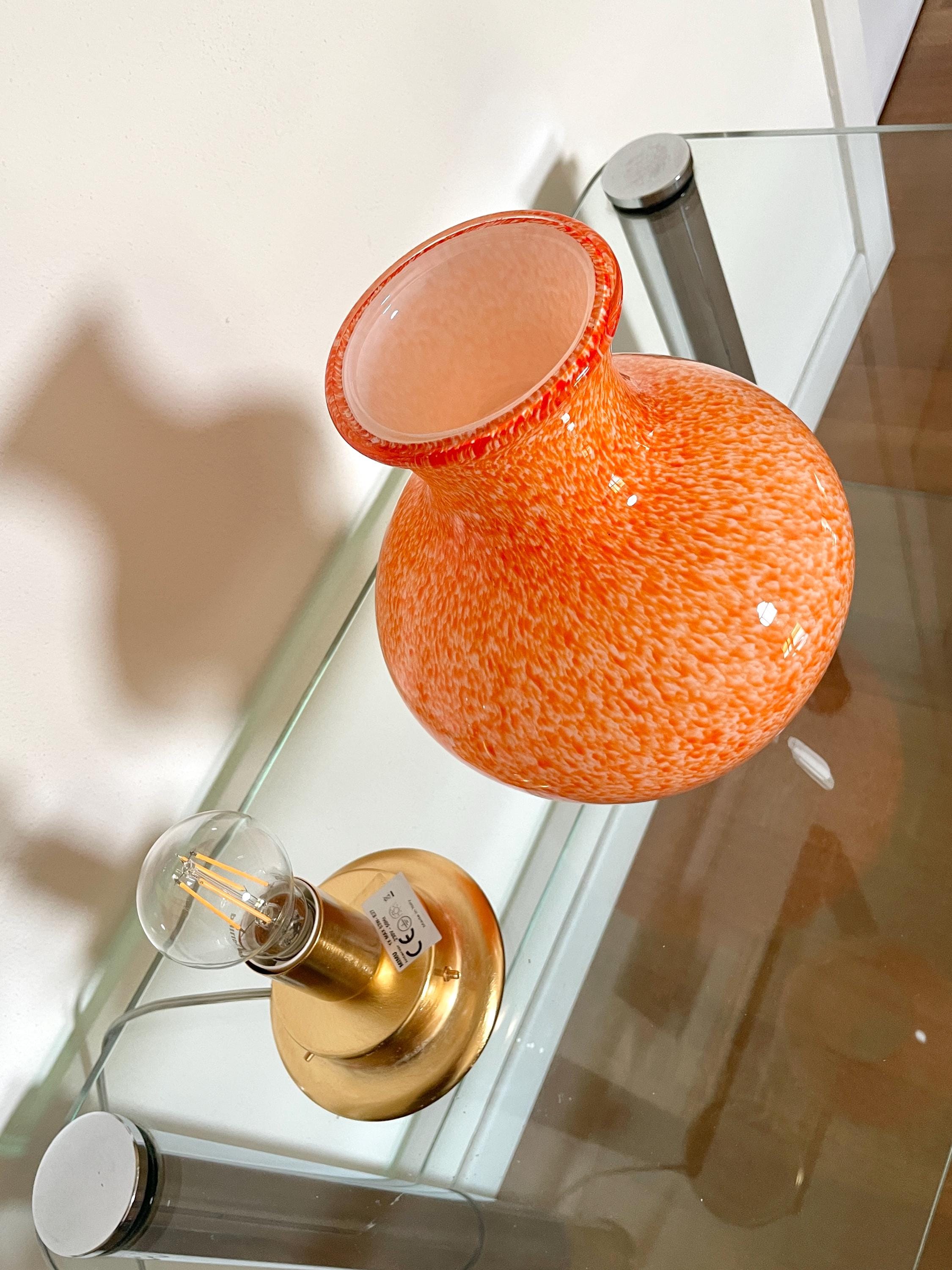 Vintage Murano table lamp with beautiful orange mouth-blown glass.