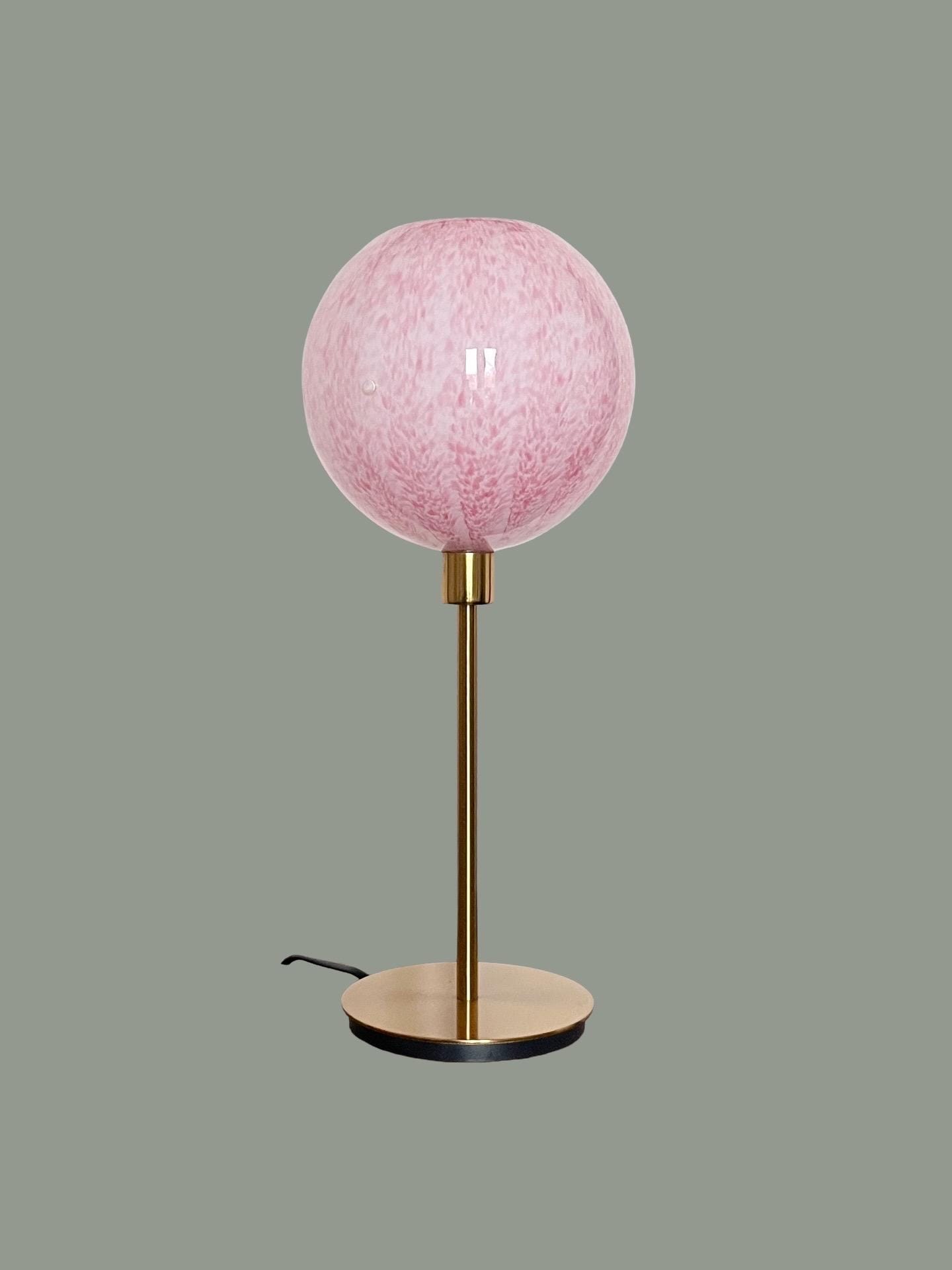 TULIPANO by LA MURRINA is a stunning vintage table lamp from the 1990s, crafted from beautiful Murano glass. Its spherical shape is mouth-blown and handcrafted by master glassmakers in Murano, with a beautiful vertical pink motif. The glass features the La Murrina glass logo.