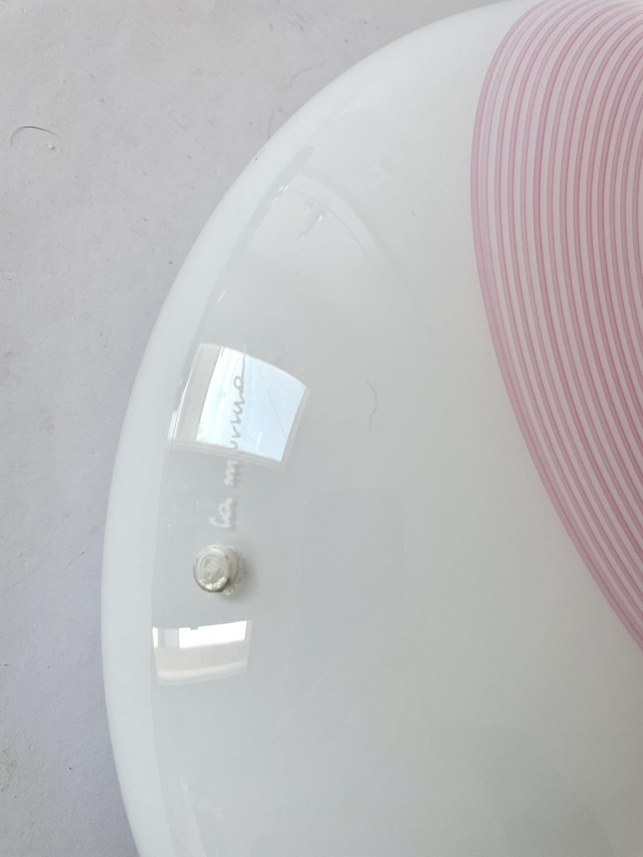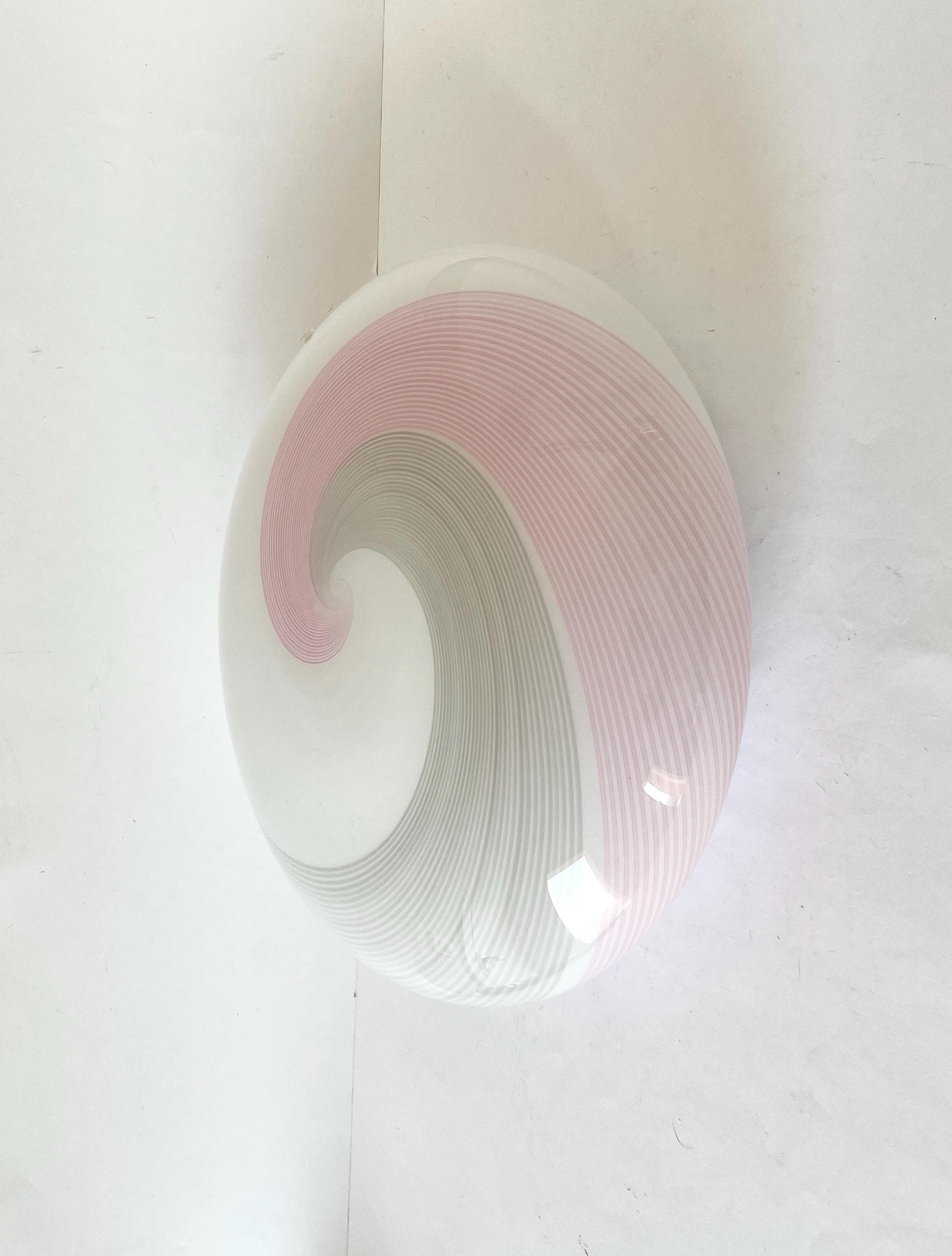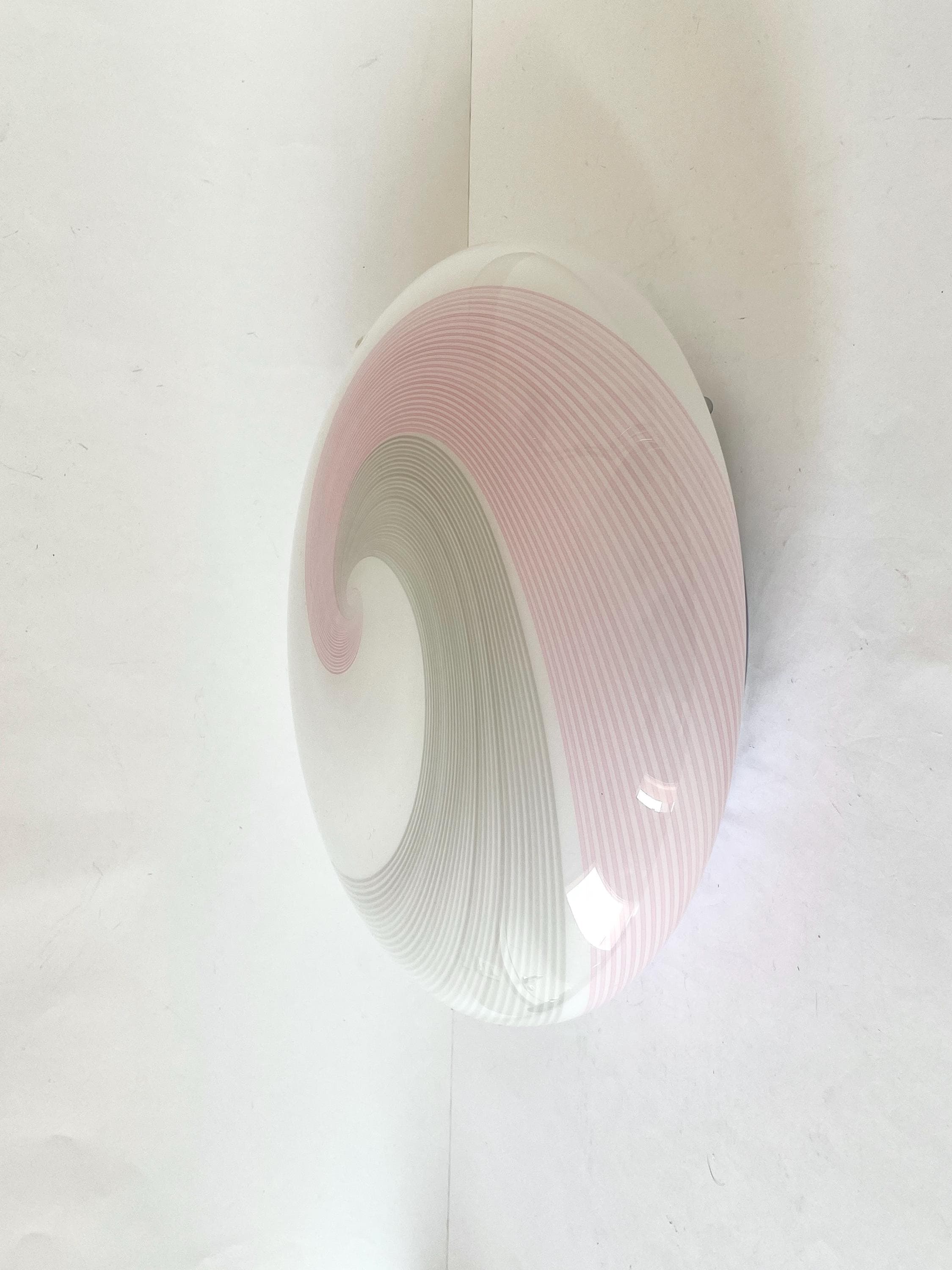 NUVOLA 38 by LA MURRINA is a splendid and large vintage Murano wall or ceiling lamp, with beautiful glass, mouth-blown and hand-crafted by Murano master glassmakers, using the ancient filigree technique, in this case pink and grey.