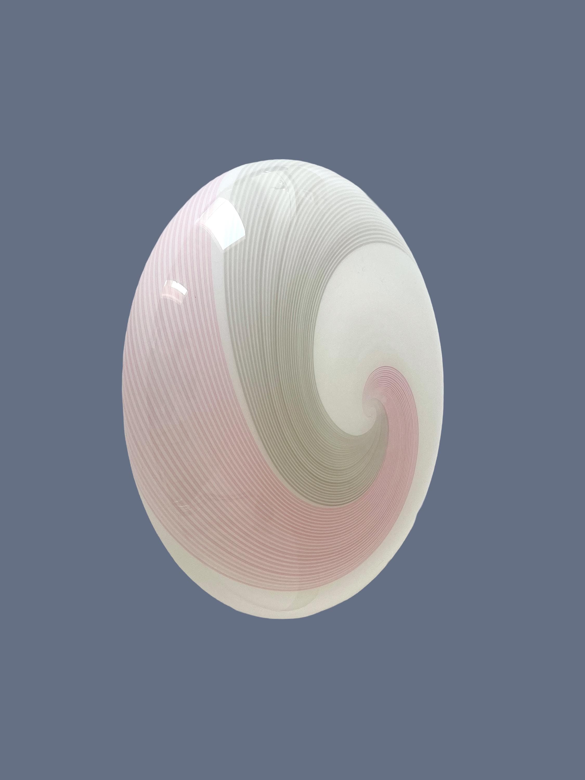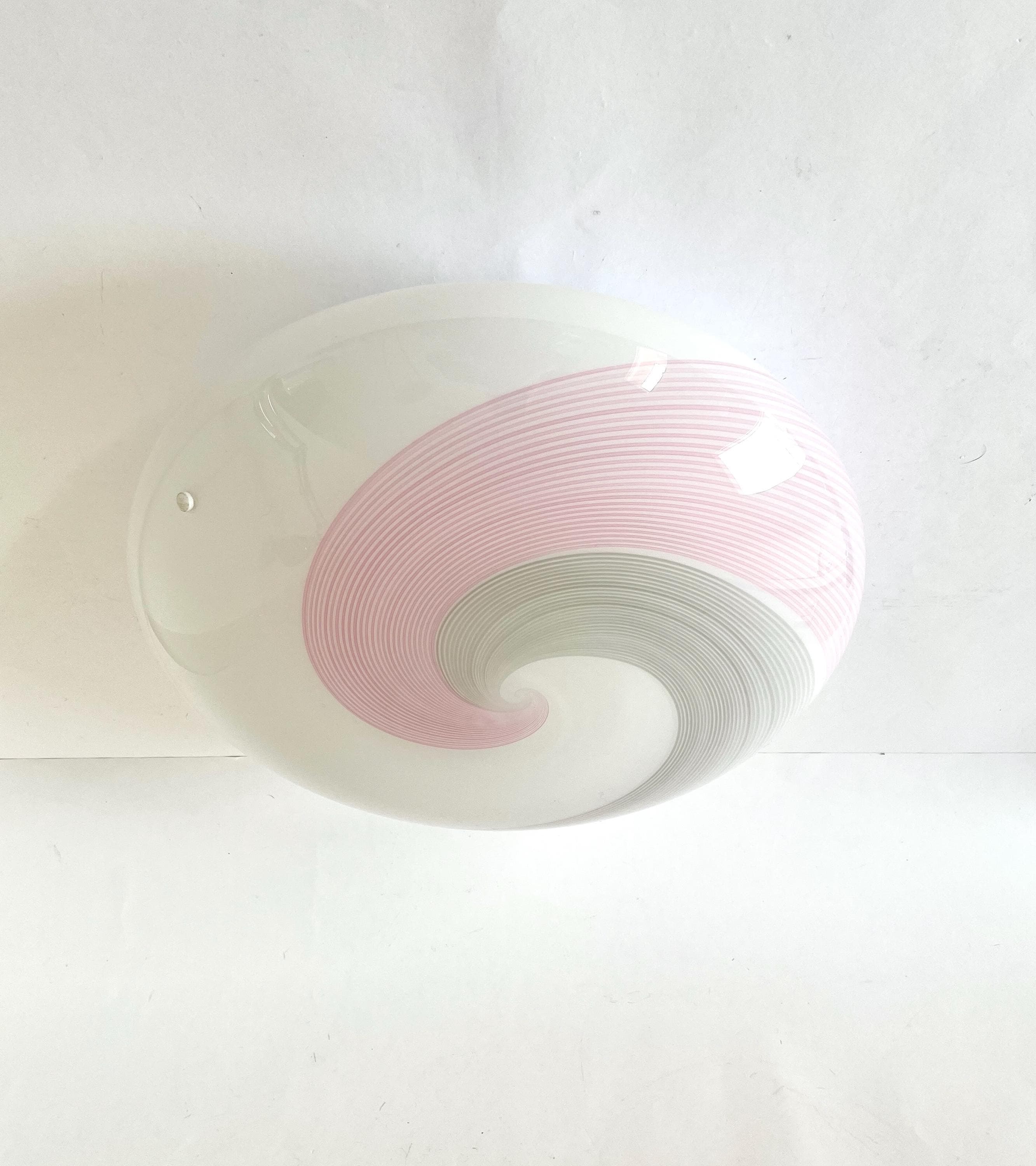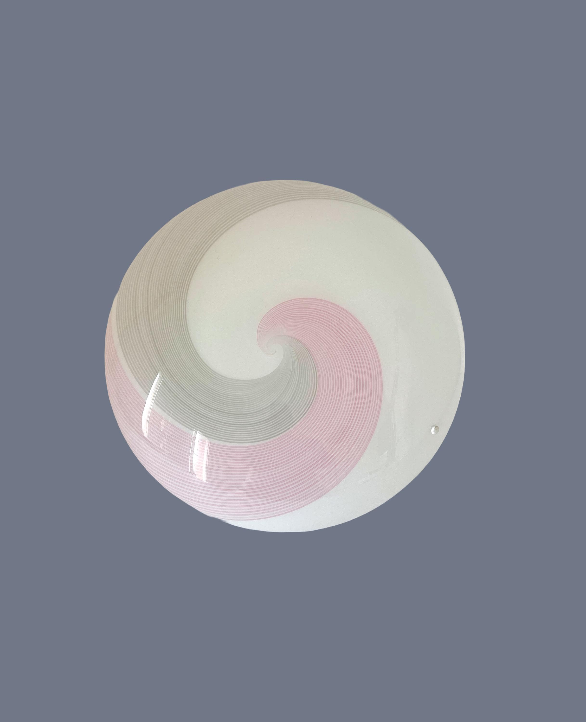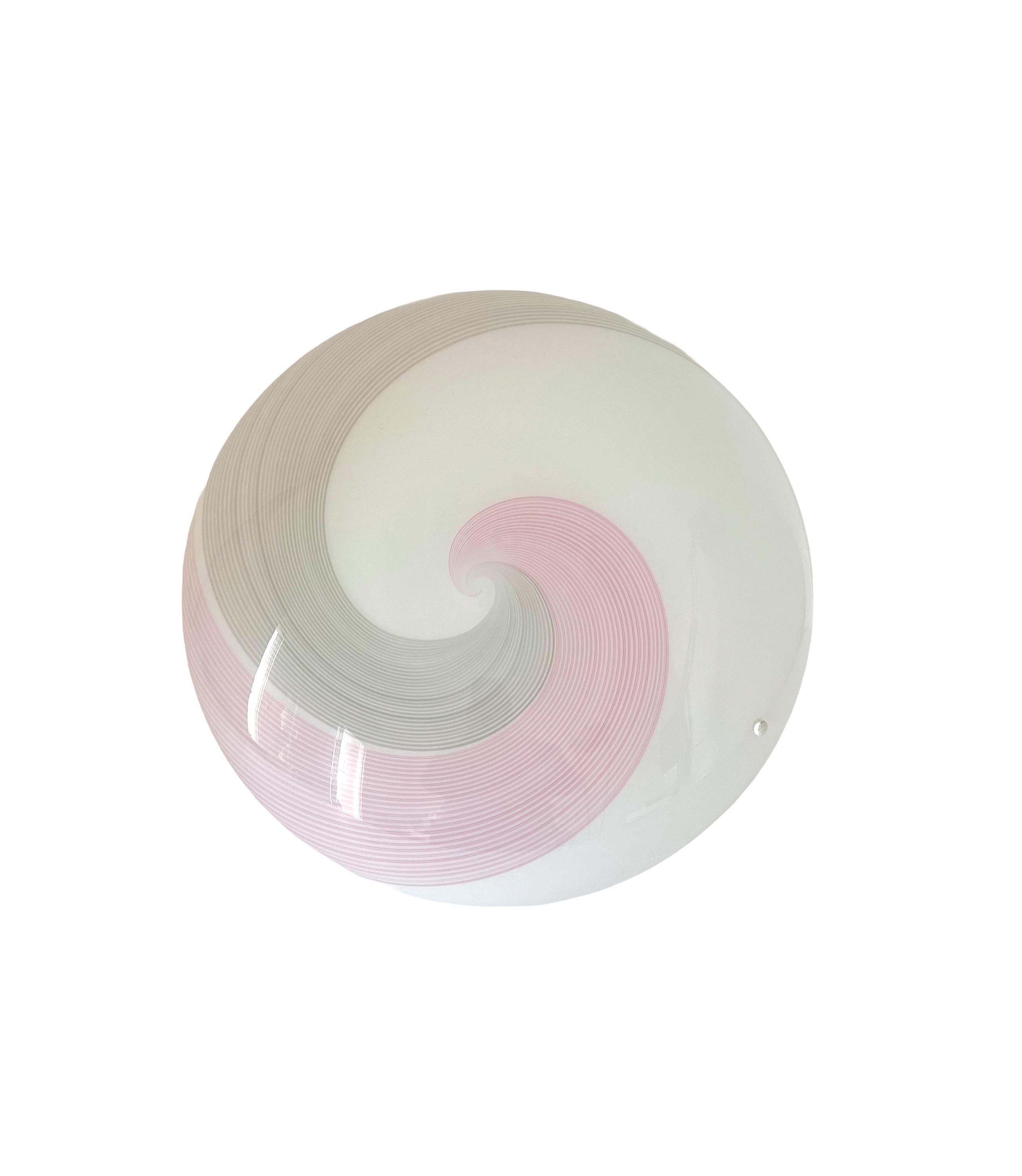NUVOLA 38 by LA MURRINA is a splendid and large vintage Murano wall or ceiling lamp, with beautiful glass, mouth-blown and hand-crafted by Murano master glassmakers, using the ancient filigree technique, in this case pink and grey.