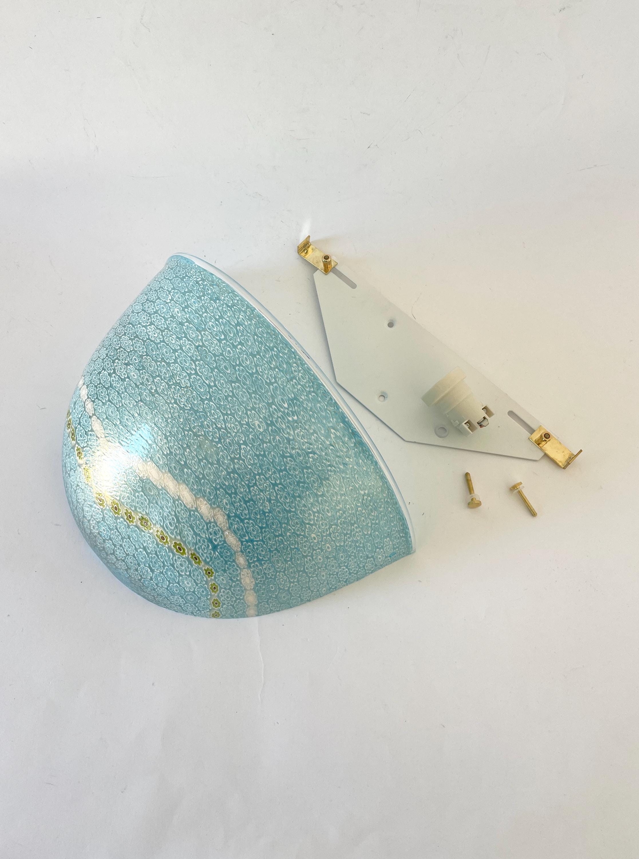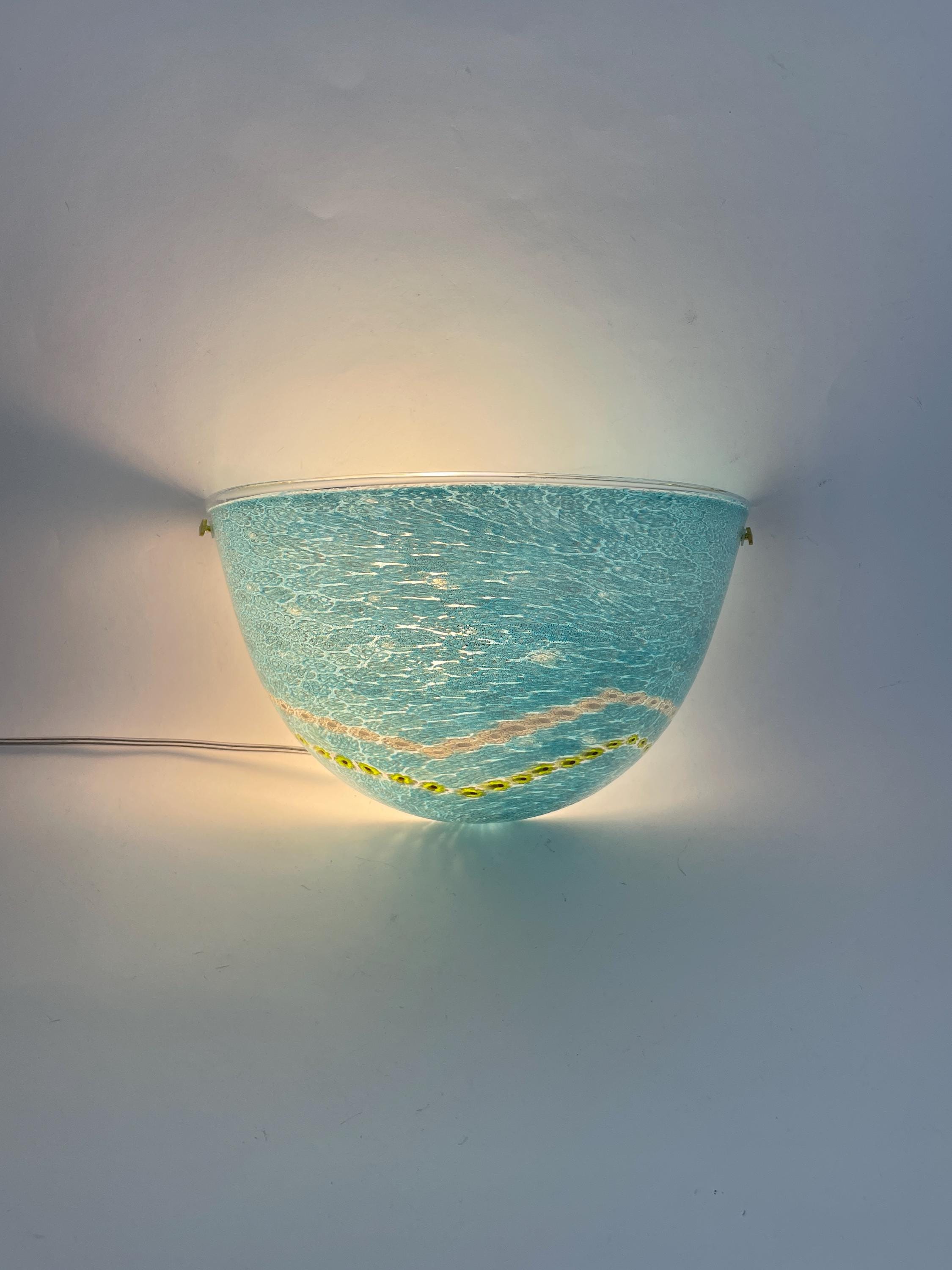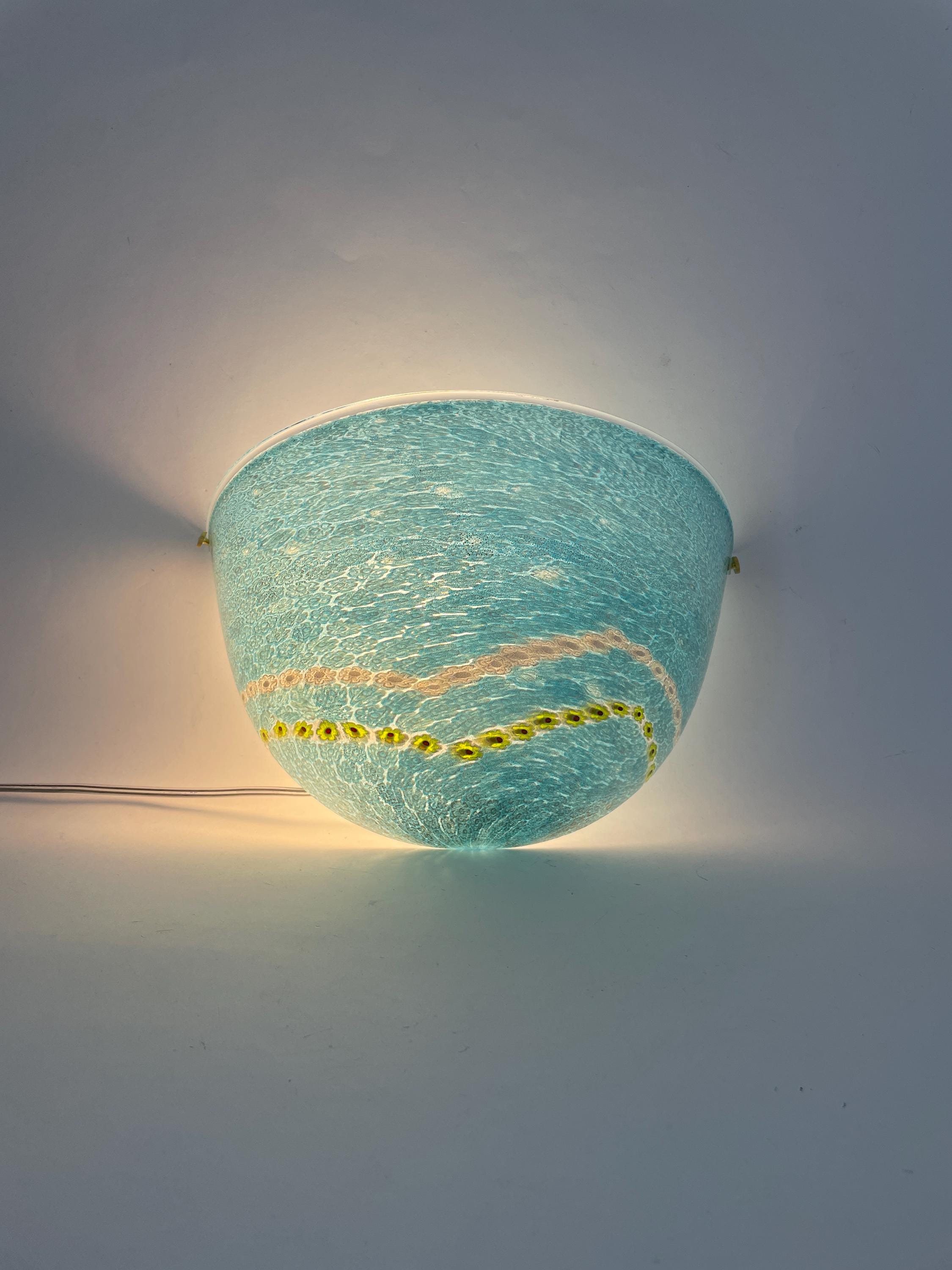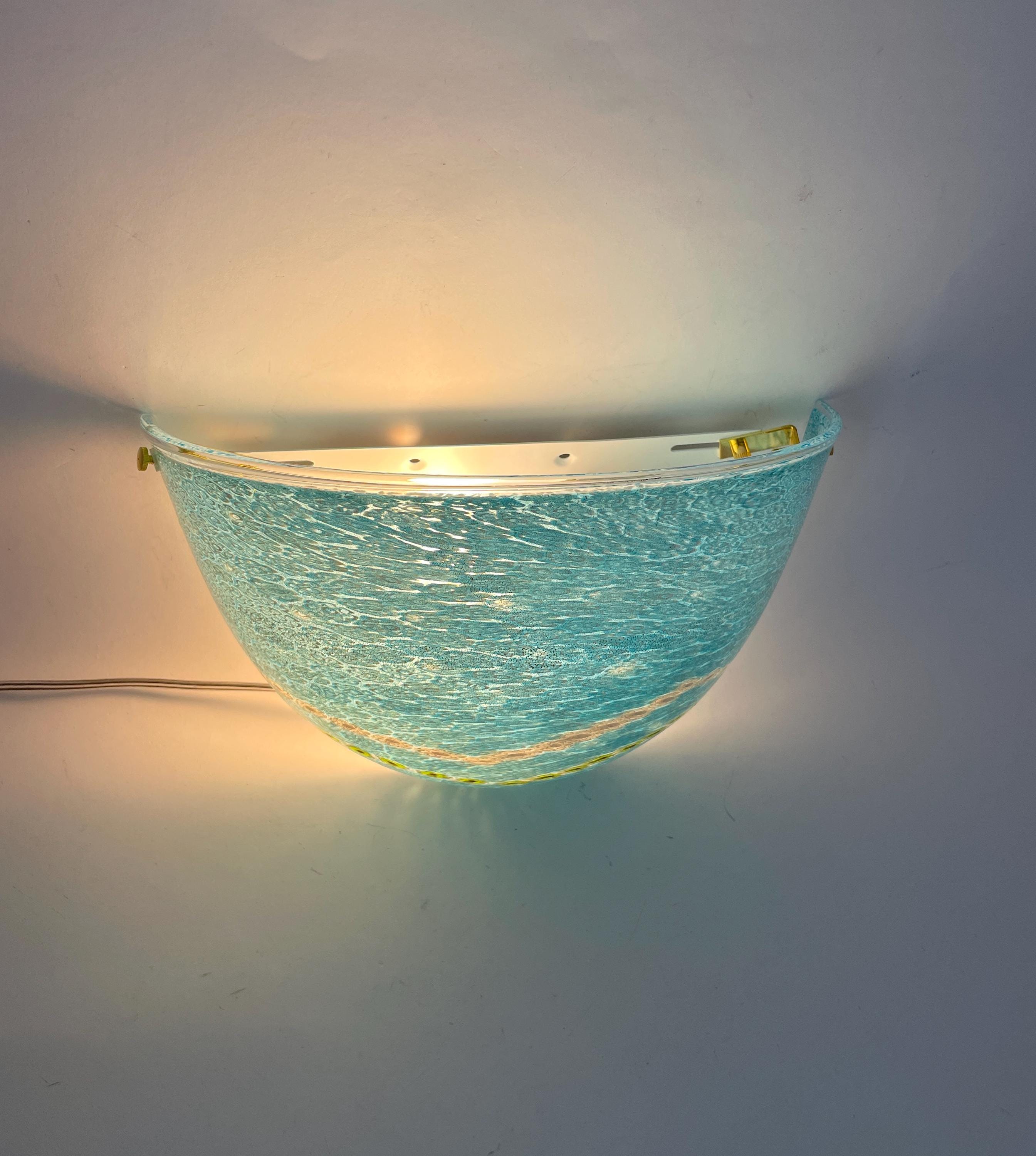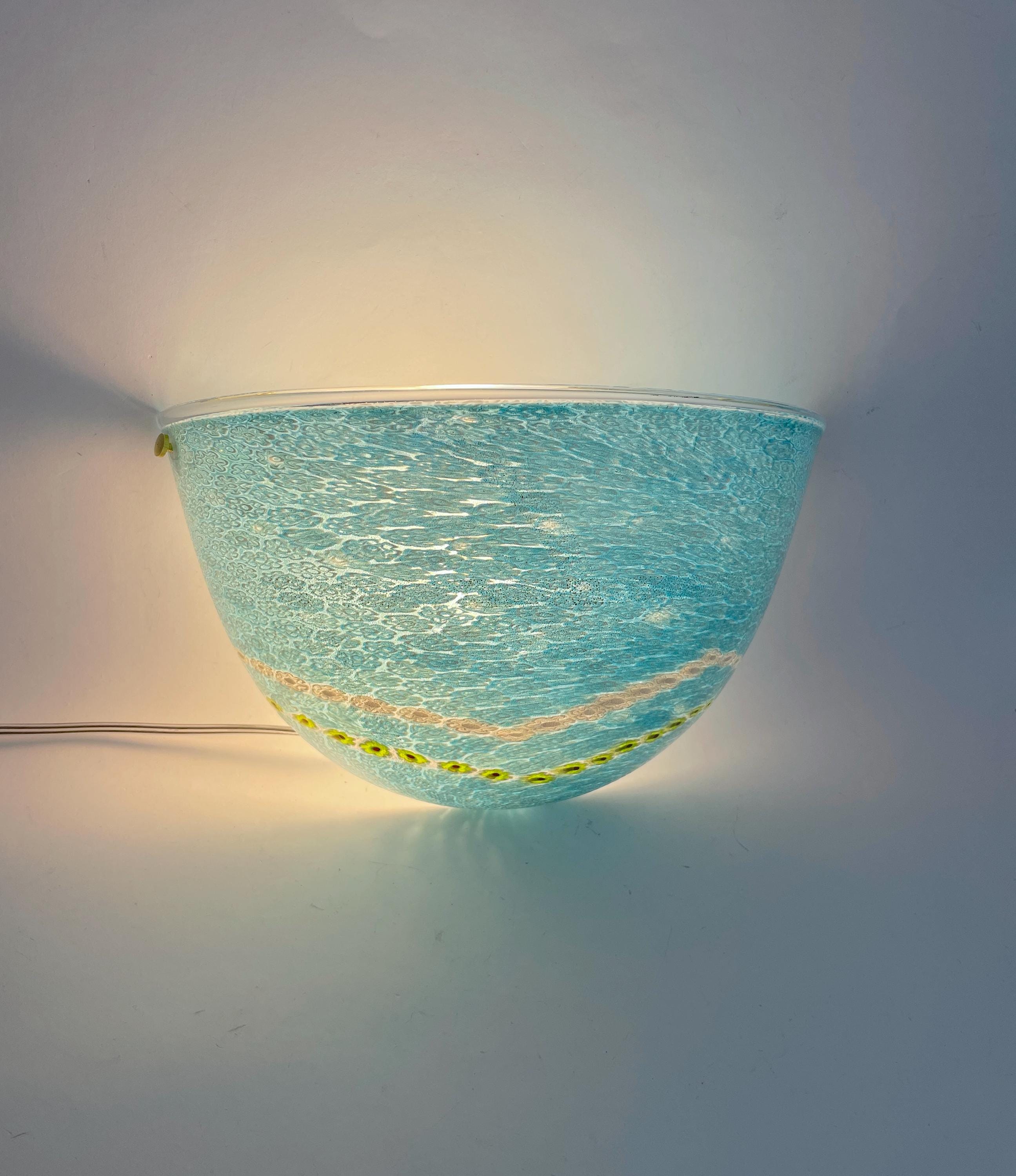 KALIKANTUS by LA MURRINA is a precious and splendid wall lamp, vintage from the 90s, unused, with beautiful Murano glass, mouth-blown and hand-crafted by master glassmakers of Murano, using the ancient murrine technique. In this case, they were created specifically by Murrina, and the workmanship is particularly laborious and difficult.