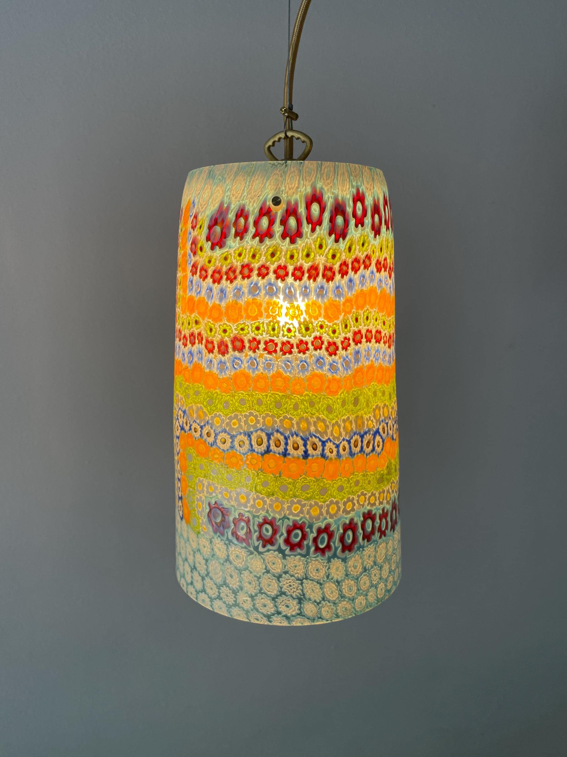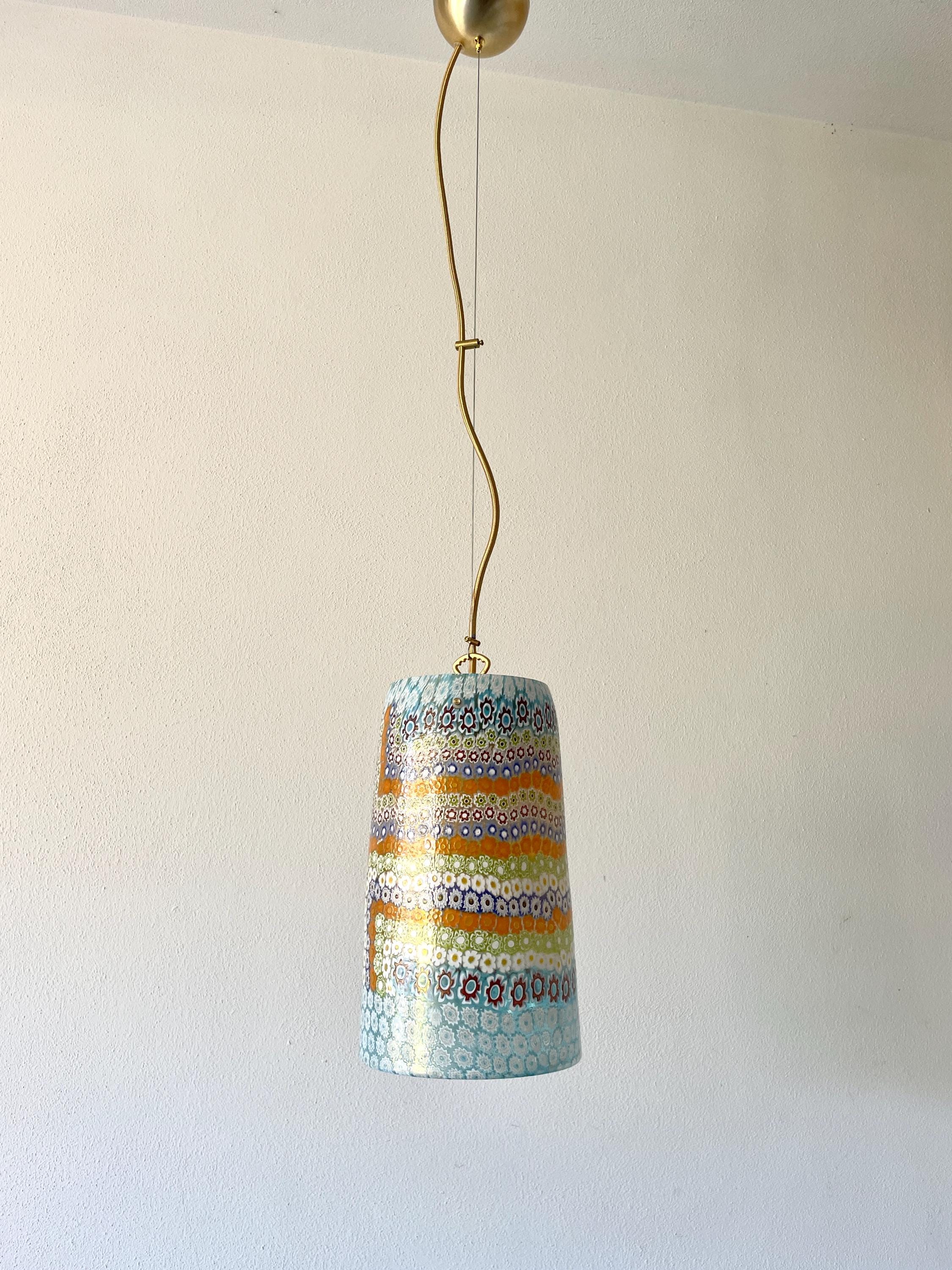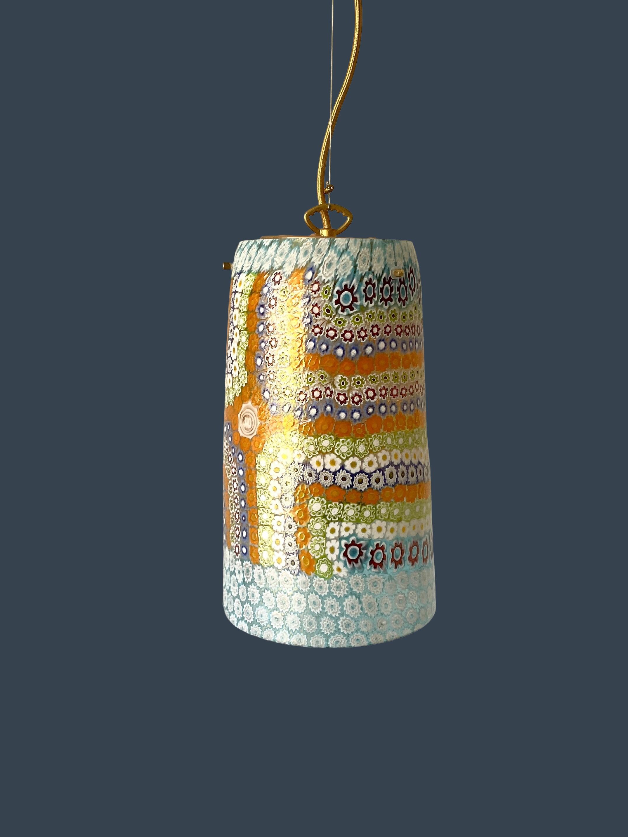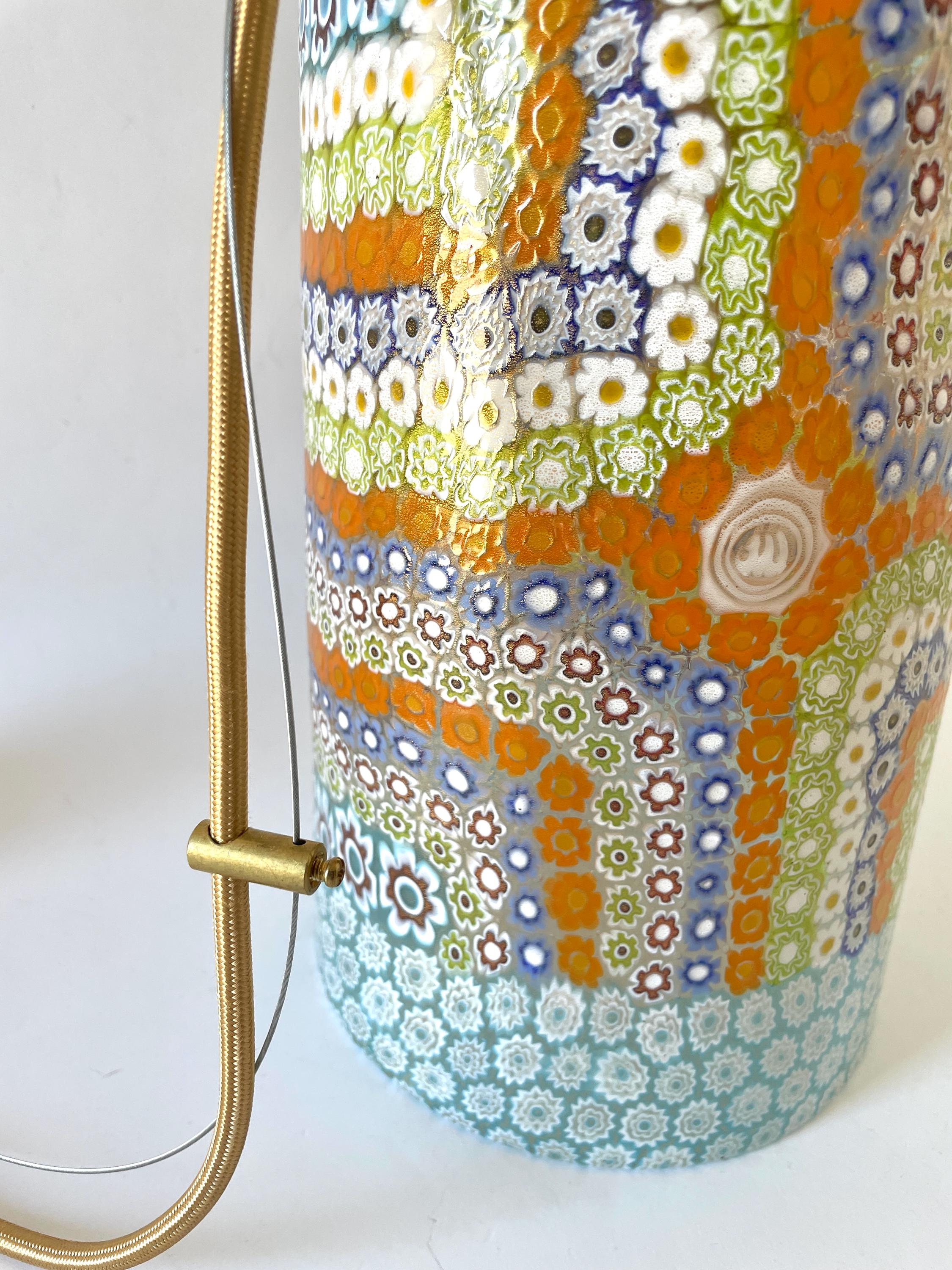Questo prezioso lampadario è stato prodotto solo in pochissimi esemplari, ogni lampadario è unico, per realizzarlo sono state create, appositamente, esclusive murrine in diversi splendidi colori e motivi che sono state posate una ad una per creare uno magnifico motivo.