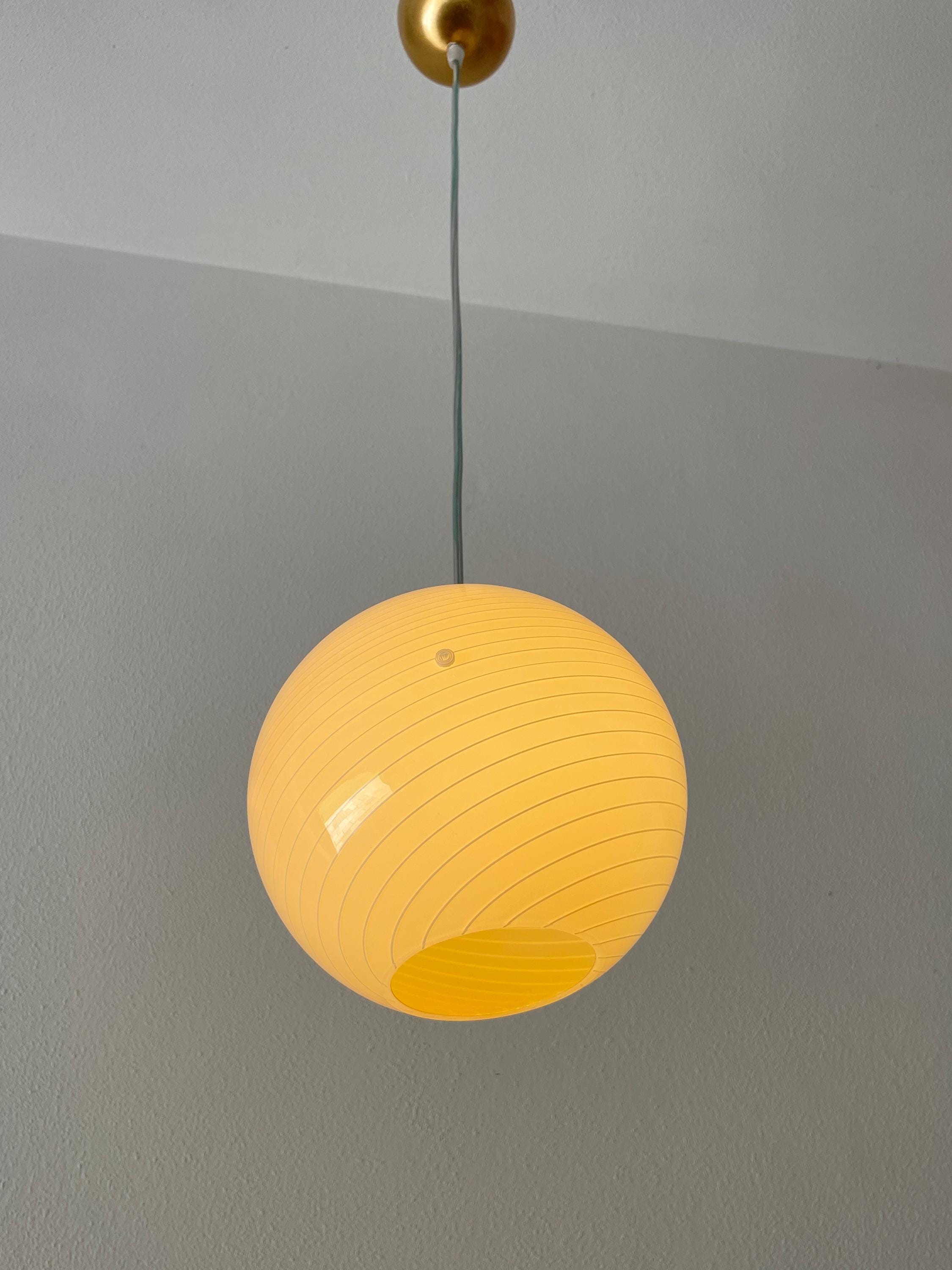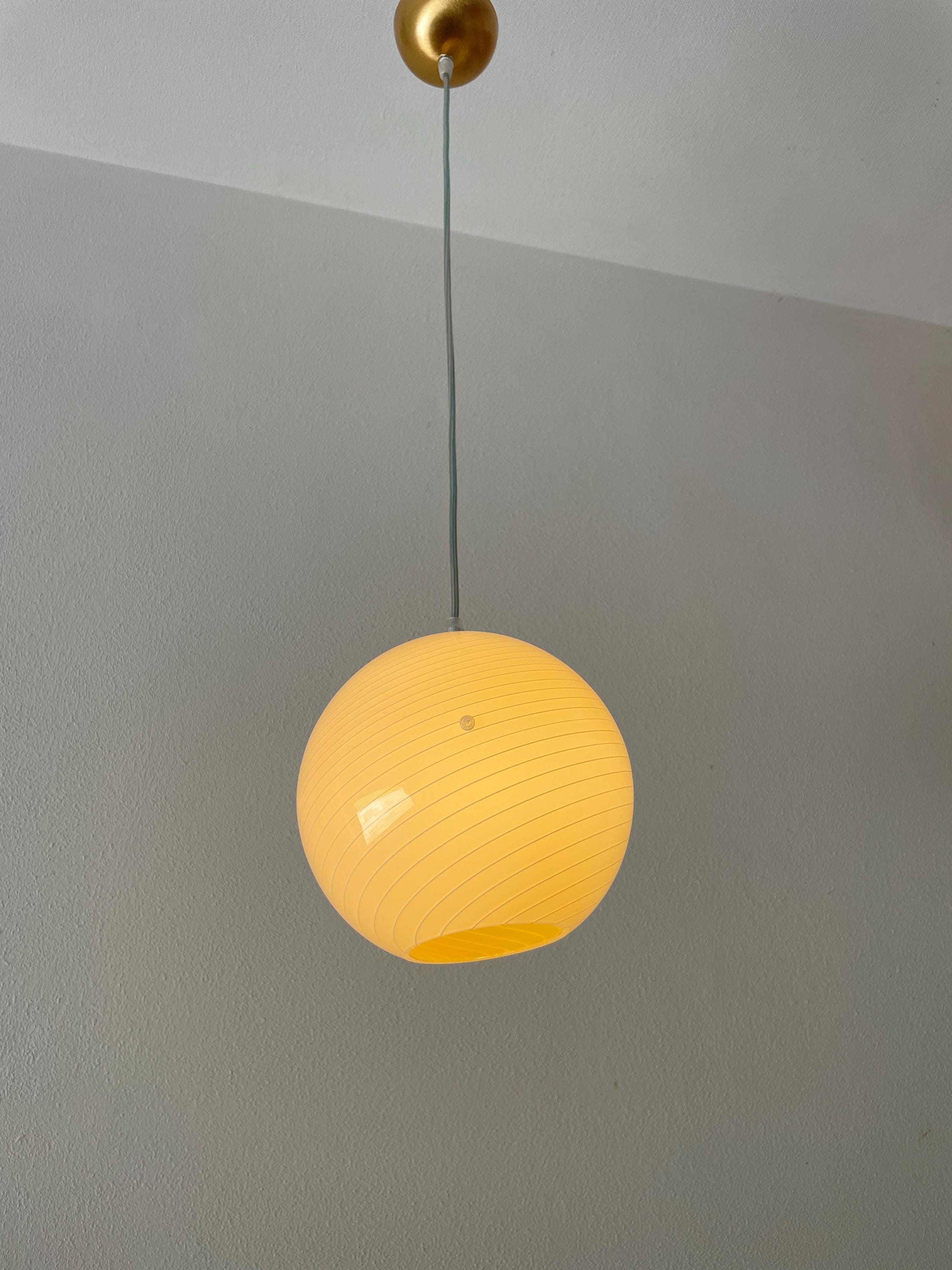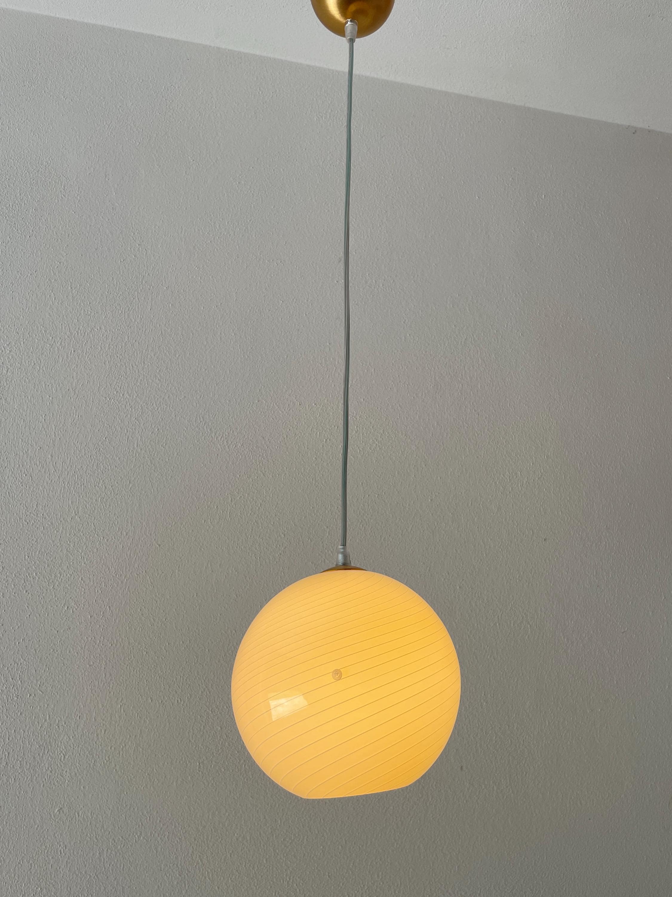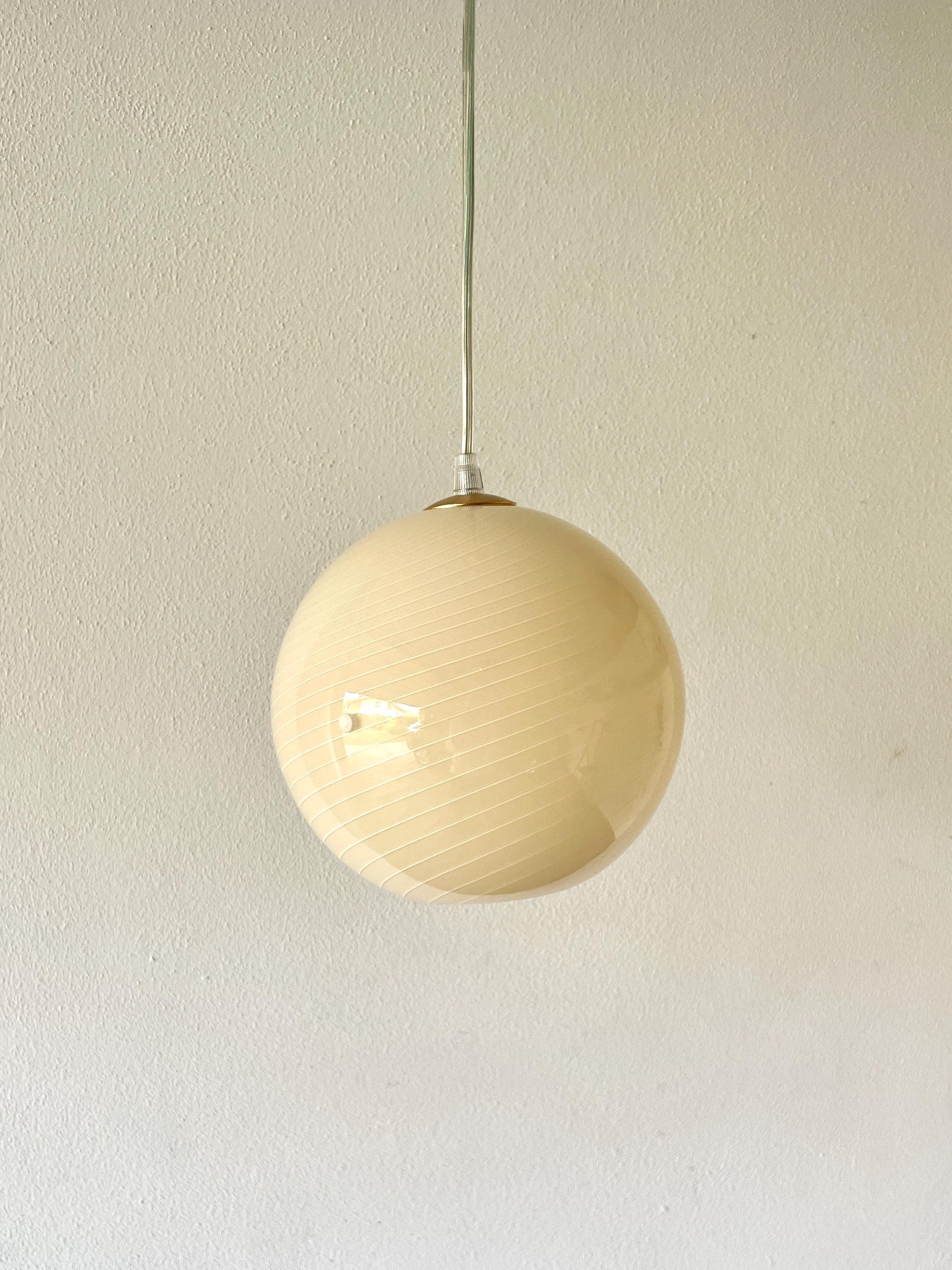 Original vintage lamp from the 90s, but never used, in perfect condition, the dimensions are: Diameter 20 cm, H 20 cm, adjustable cable maximum length 110 cm.