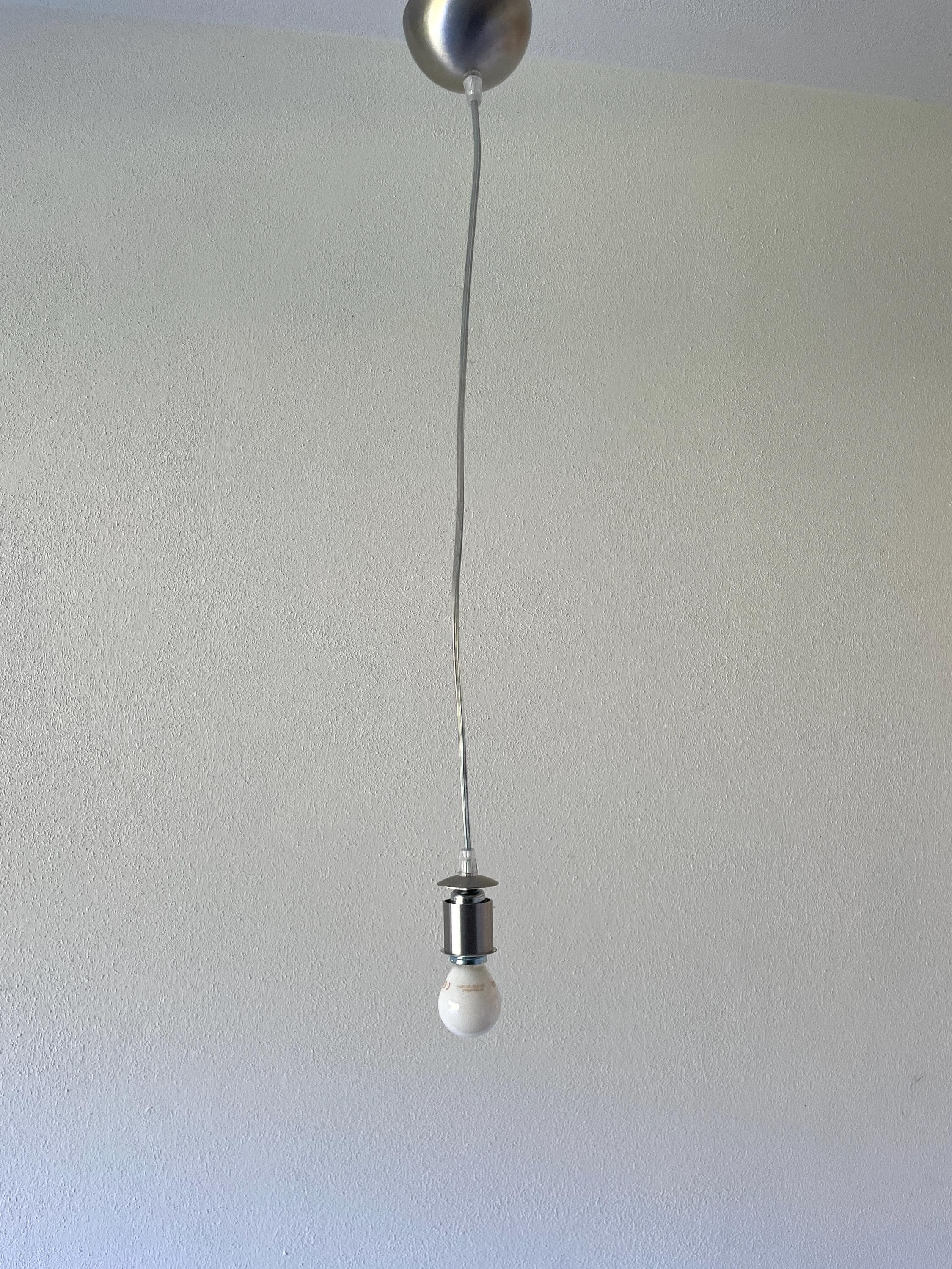 Lampada originale vintage degli anni '90, ma mai usata, il vetro è perfetto, le dimensioni sono: Diametro 20 cm, H 20 cm, cavo regolabile in lunghezza massimo 110 cm.